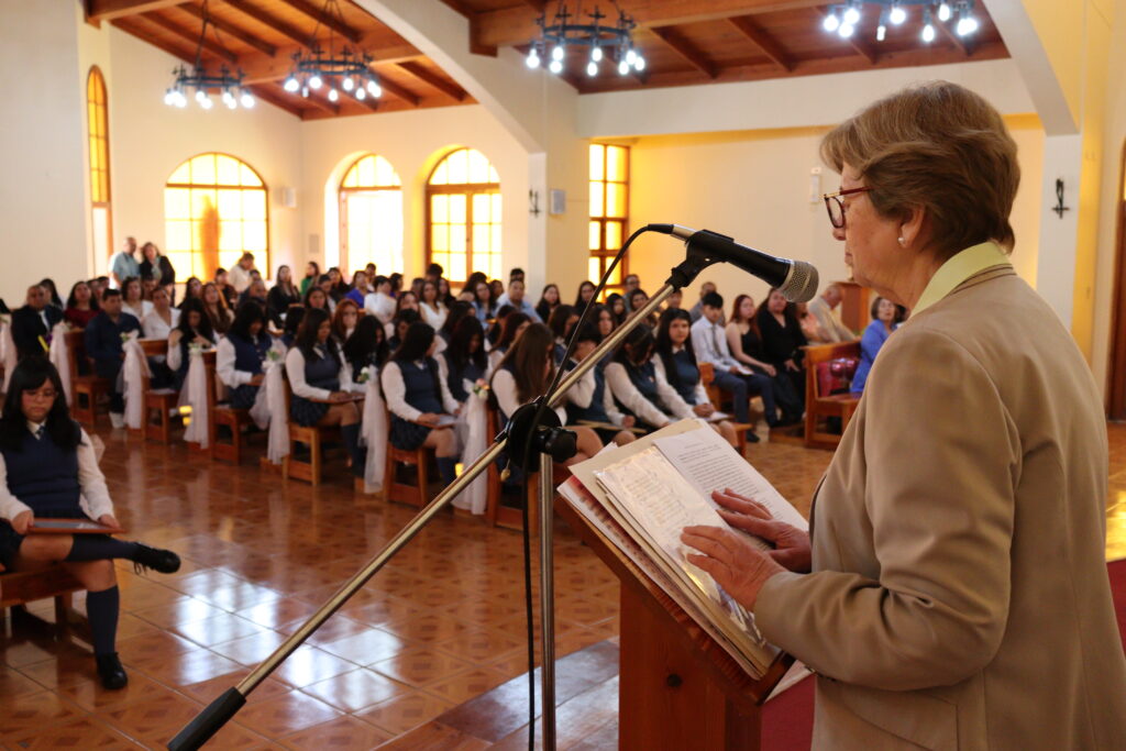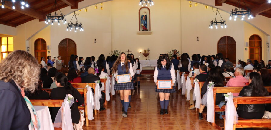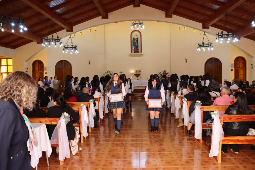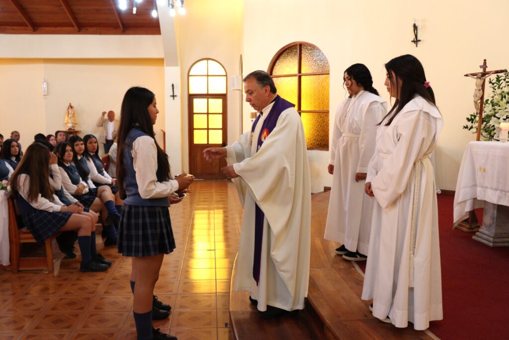 El pasado viernes, nuestra comunidad educativa vivió un momento lleno de emoción y significado con la ceremonia de paso del curso 8°A a la enseñanza media. La jornada comenzó con una Eucaristía presidida por el Padre Jorge Arancibia, quien destacó la importancia de la familia en la crianza y acompañamiento de las estudiantes, especialmente en esta etapa de crecimiento donde el apoyo y guía de los padres resulta fundamental para tomar buenas decisiones.