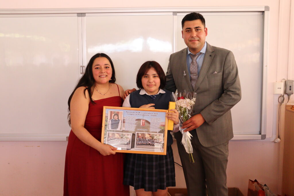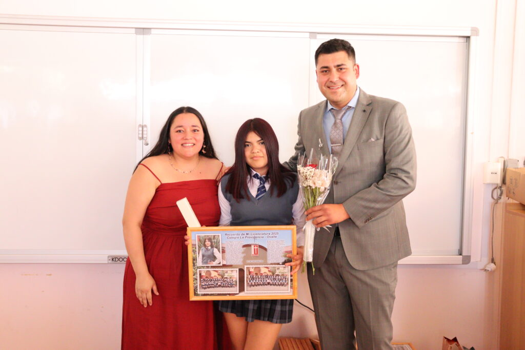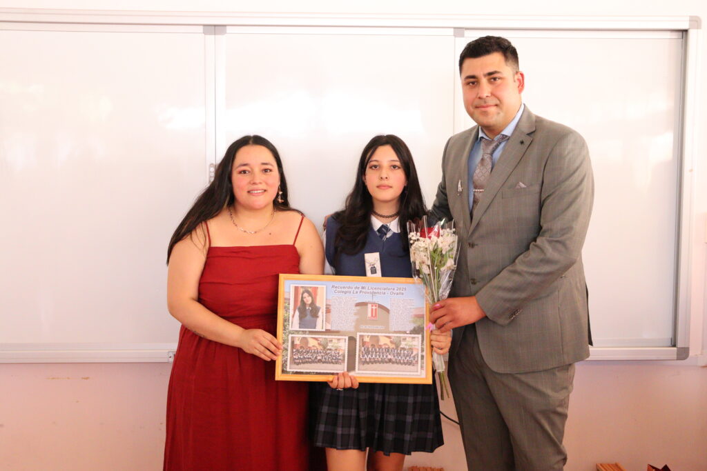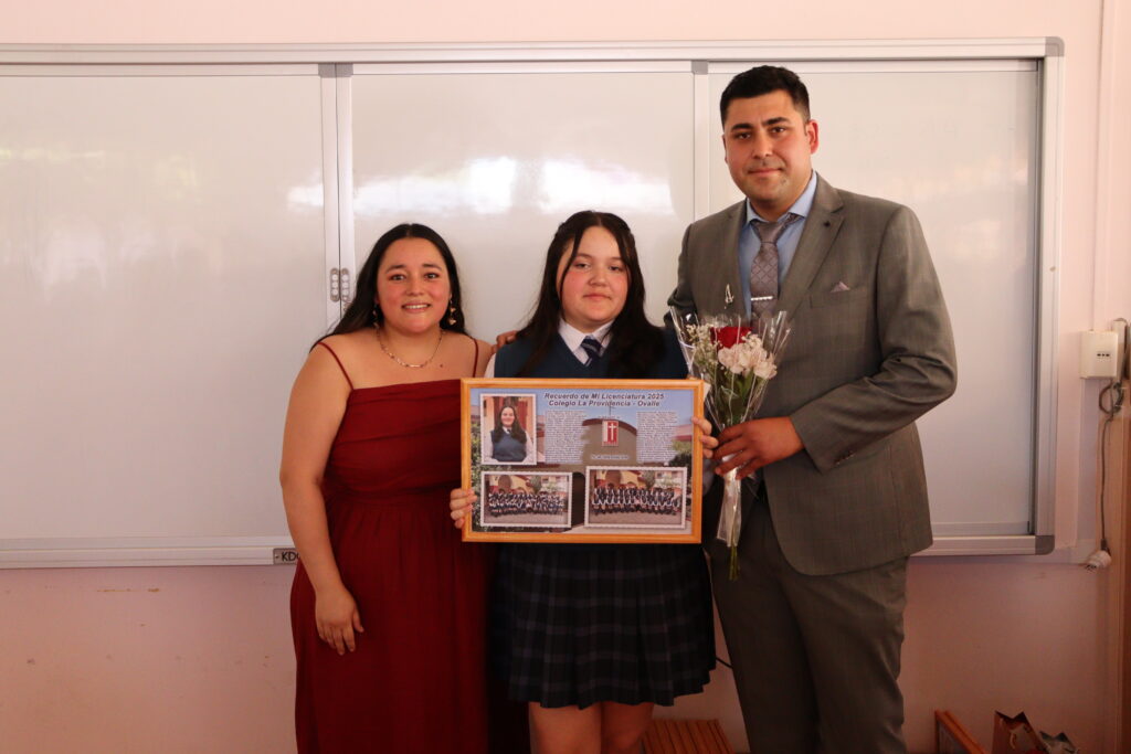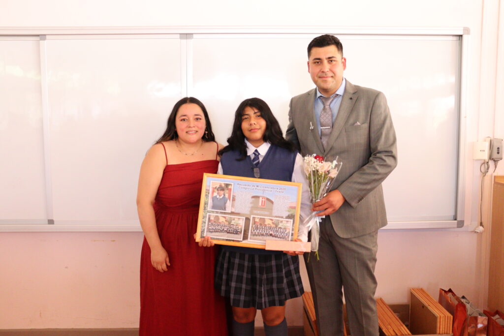 Posteriormente, las estudiantes recibieron sus diplomas en grupos, acompañadas por su profesor jefe suplente Ángelo Álvarez, quien asumió con compromiso el liderazgo del curso durante el post natal de la profesora jefe Fátima González. A pesar de encontrarse en este período, la profesora Fátima González estuvo presente para acompañar a sus estudiantes en tan importante paso, gesto que reflejó su vocación y cariño.