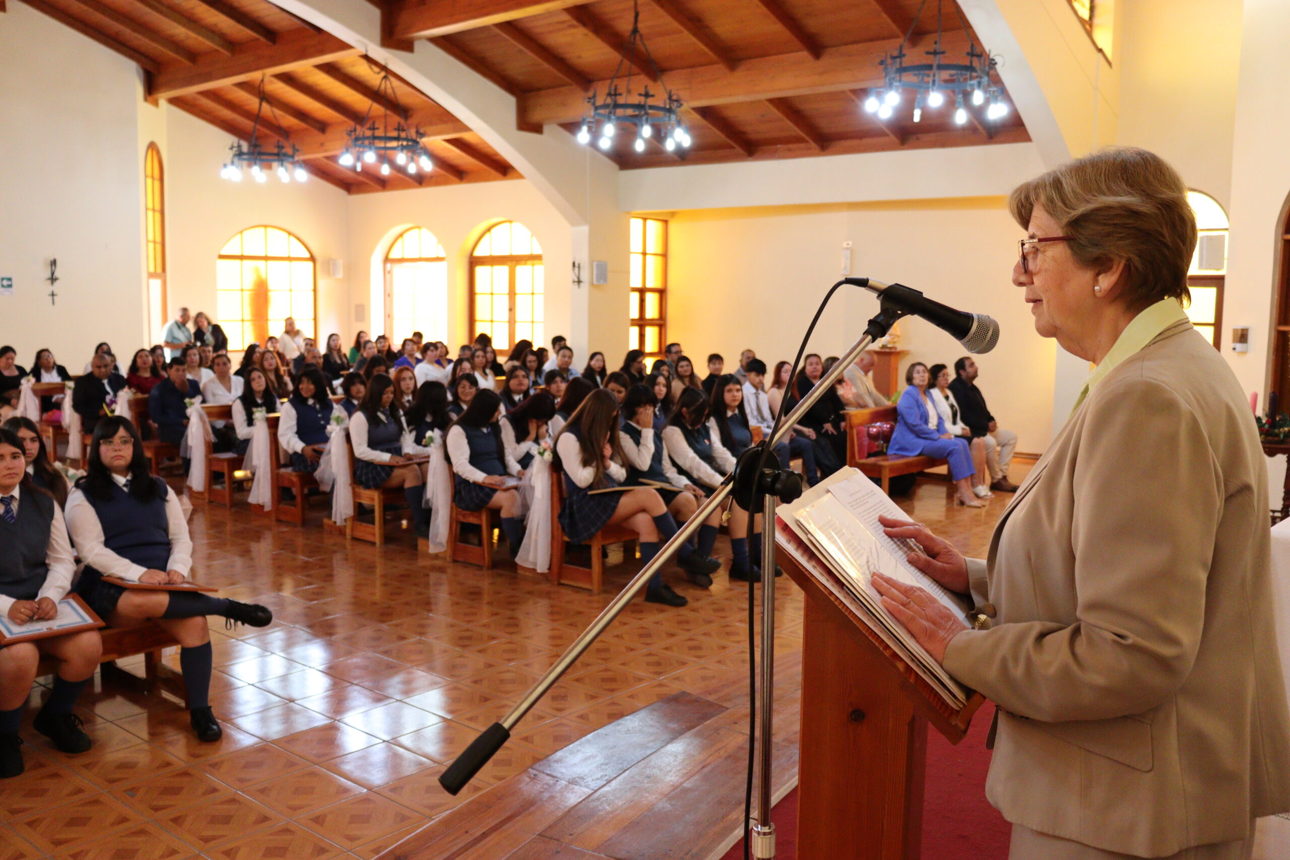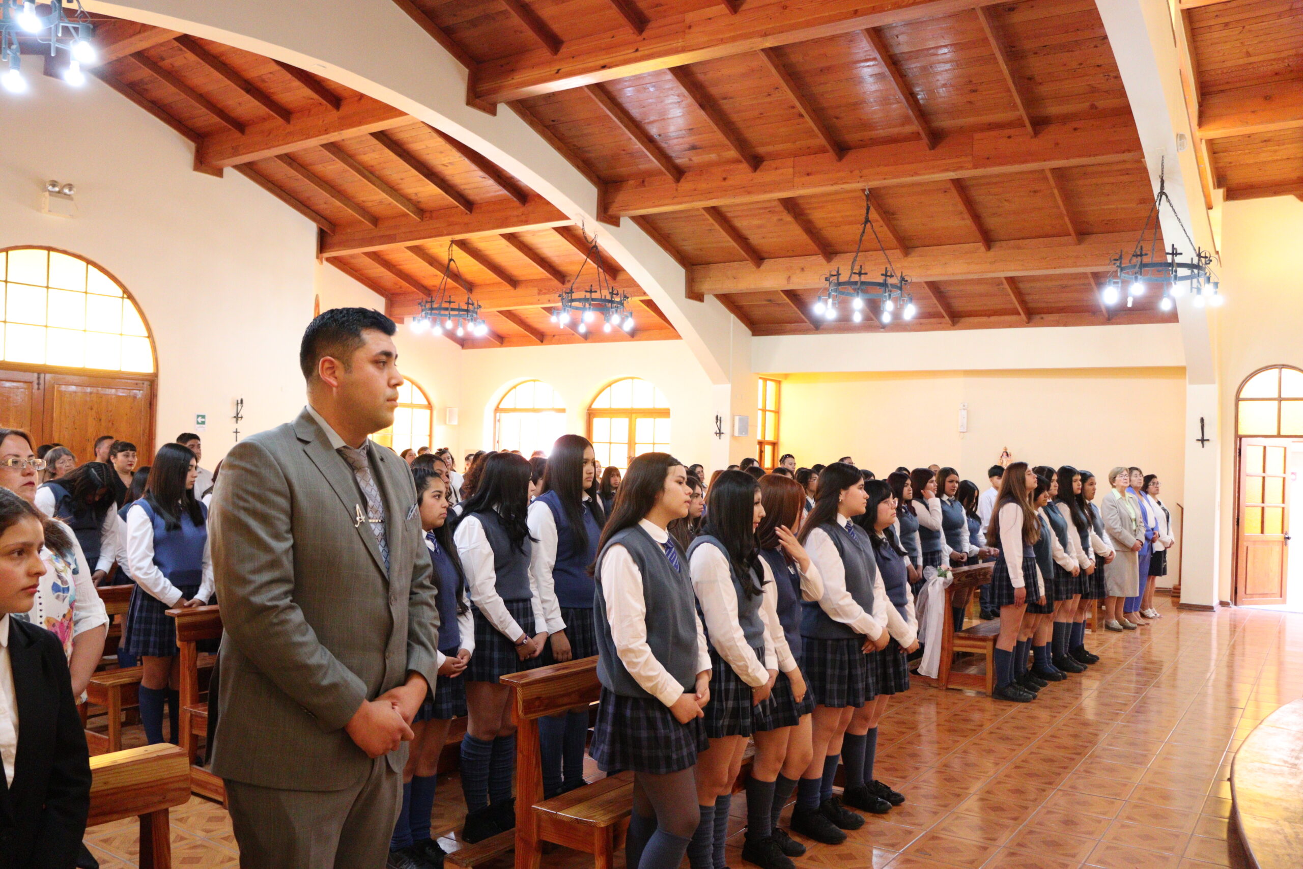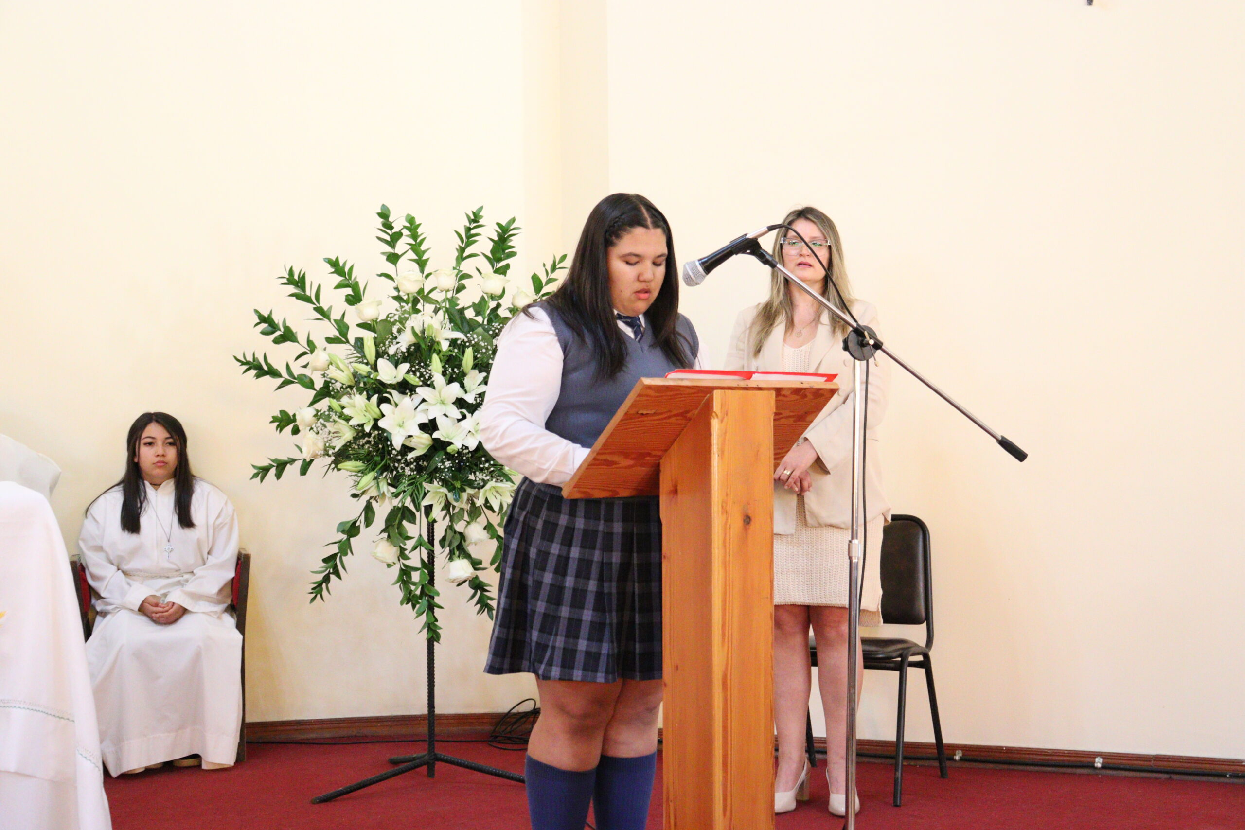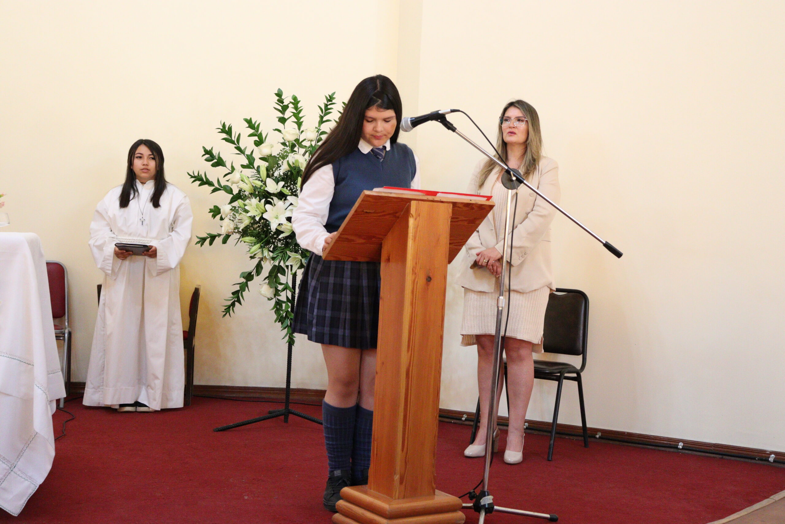 El pasado viernes, nuestra comunidad educativa vivió un momento lleno de emoción y significado con la ceremonia de paso del curso 8°A a la enseñanza media. La jornada comenzó con una Eucaristía presidida por el Padre Jorge Arancibia, quien destacó la importancia de la familia en la crianza y acompañamiento de las estudiantes, especialmente en esta etapa de crecimiento donde el apoyo y guía de los padres resulta fundamental para tomar buenas decisiones.