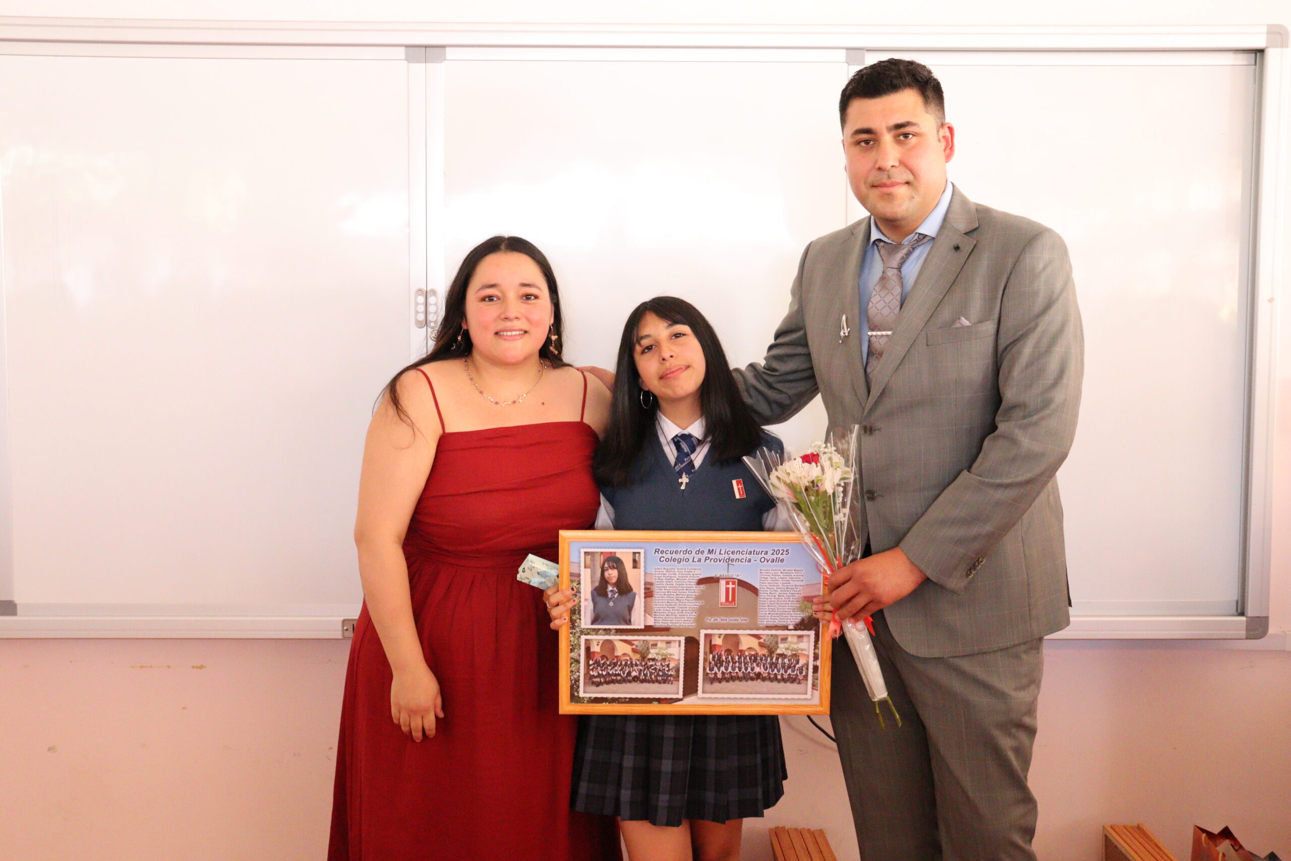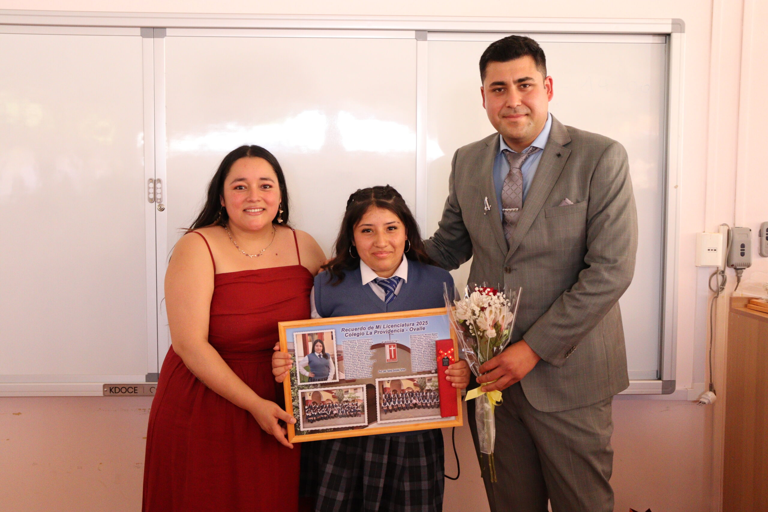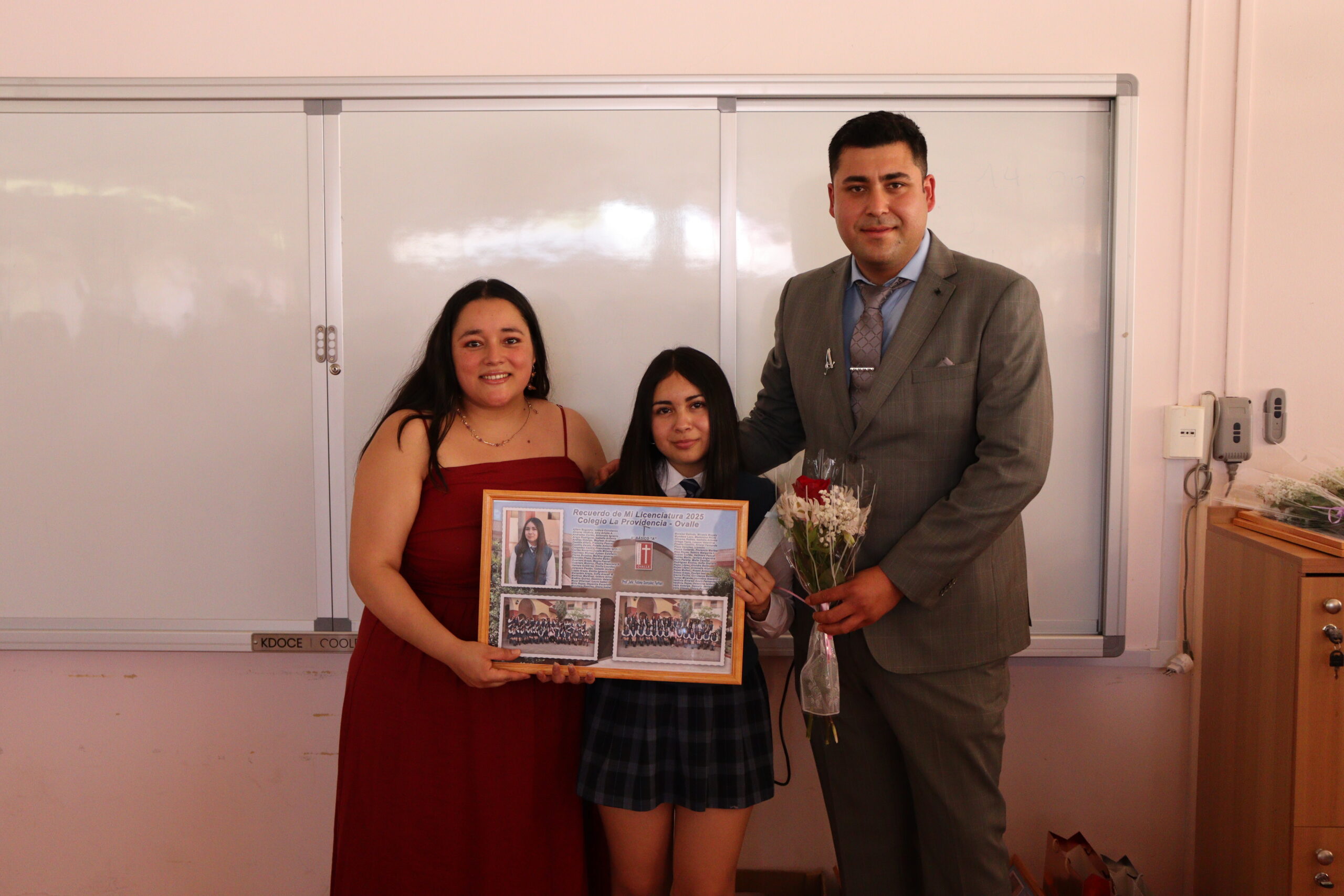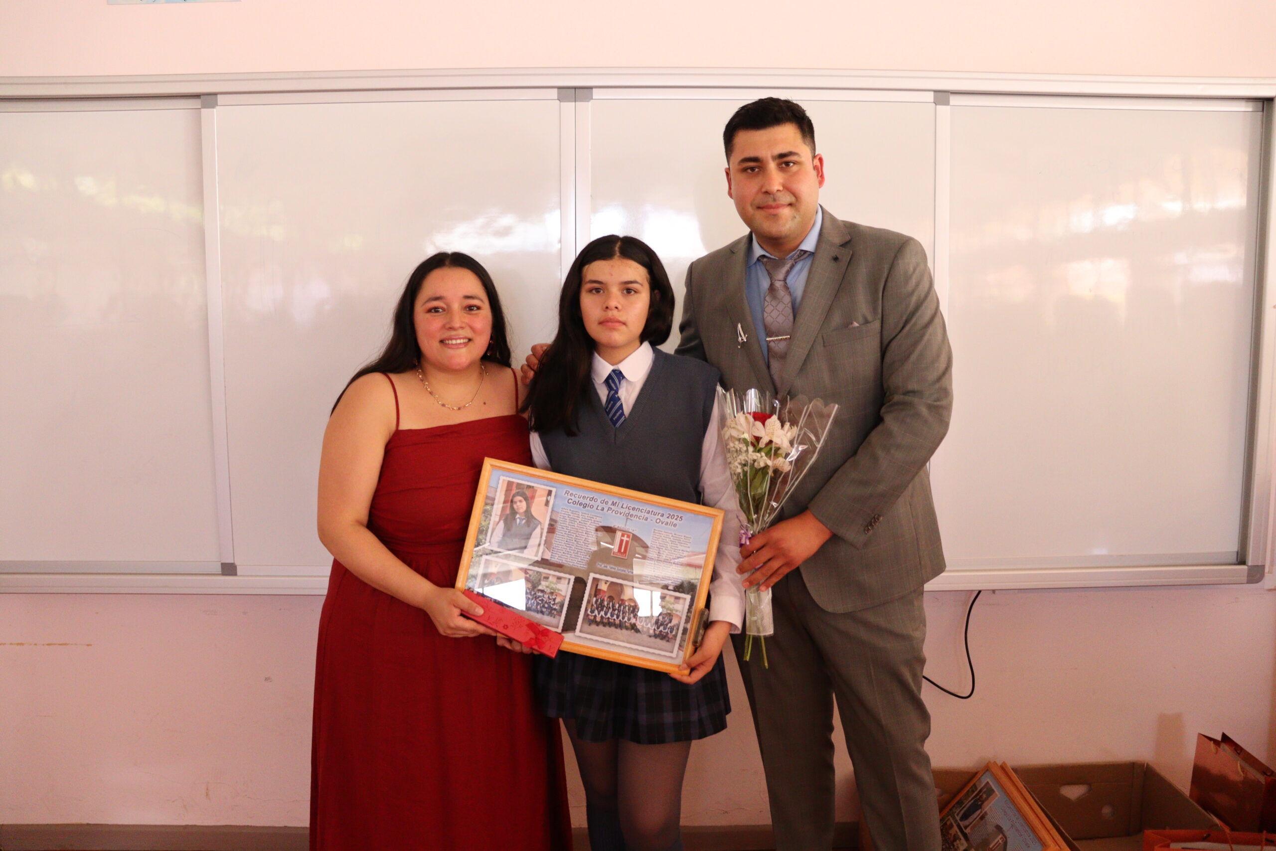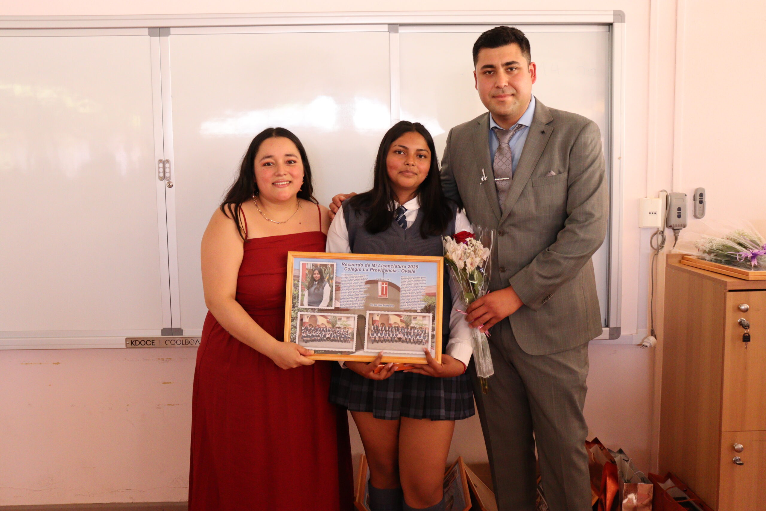 Posteriormente, las estudiantes recibieron sus diplomas en grupos, acompañadas por su profesor jefe suplente Ángelo Álvarez, quien asumió con compromiso el liderazgo del curso durante el post natal de la profesora jefe Fátima González. A pesar de encontrarse en este período, la profesora Fátima González estuvo presente para acompañar a sus estudiantes en tan importante paso, gesto que reflejó su vocación y cariño.