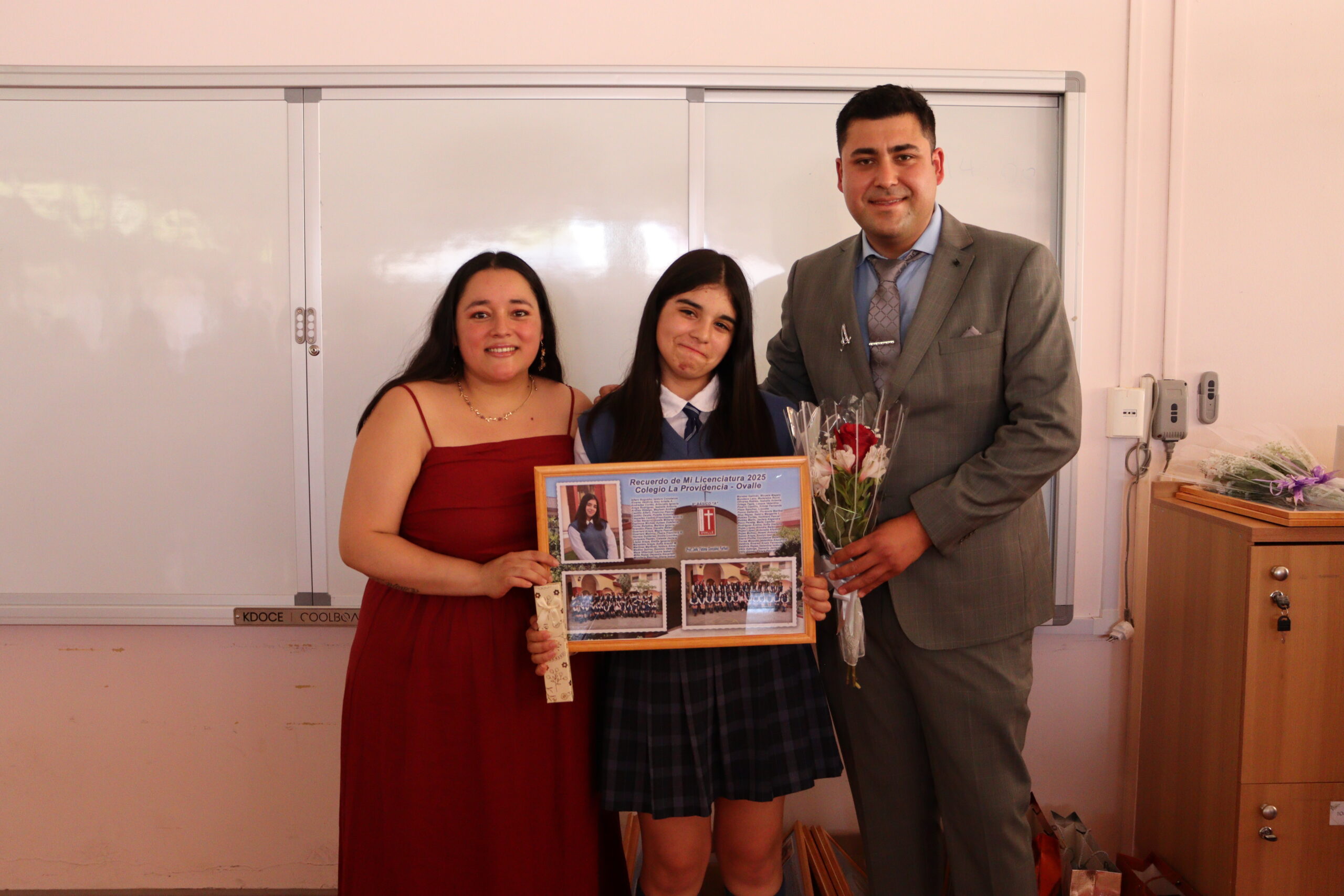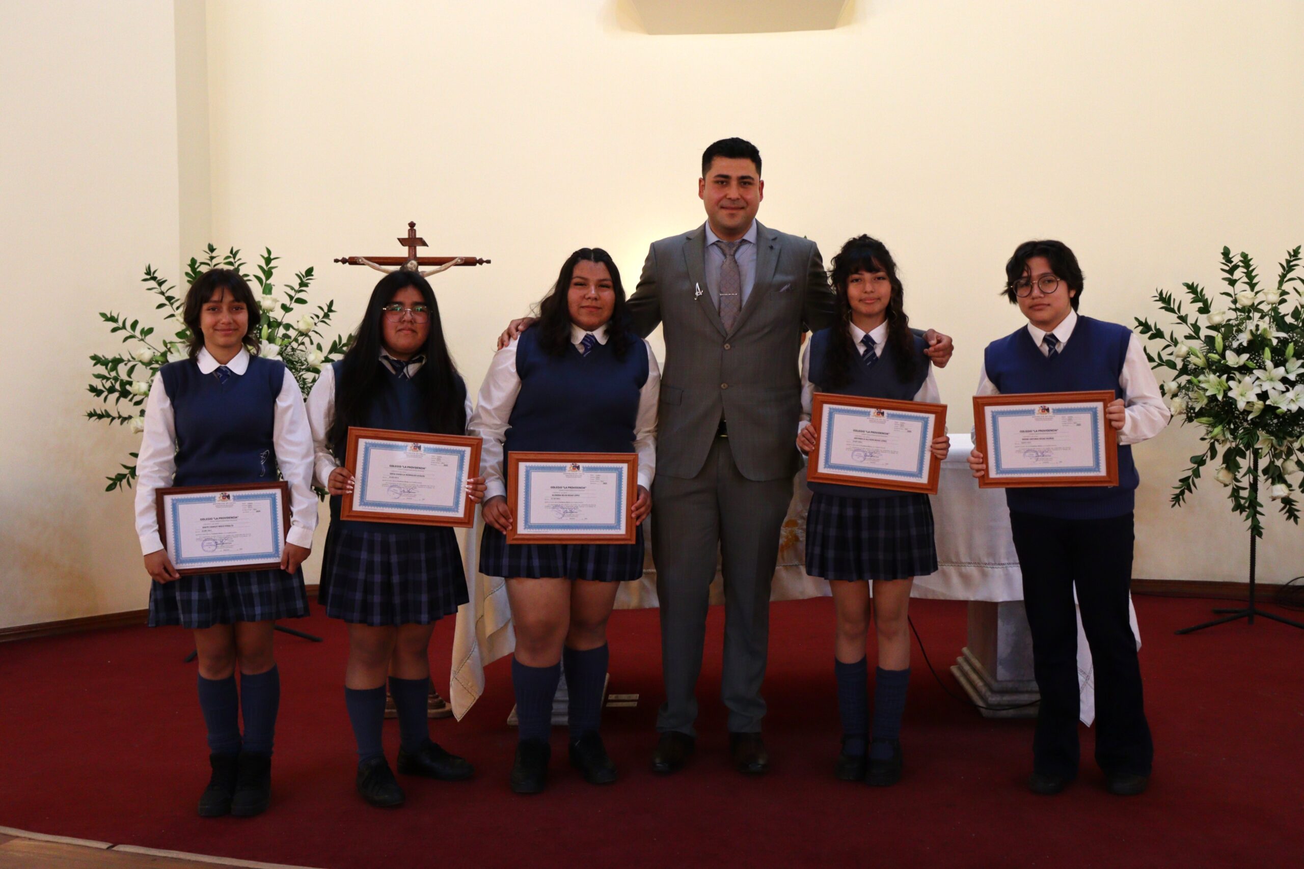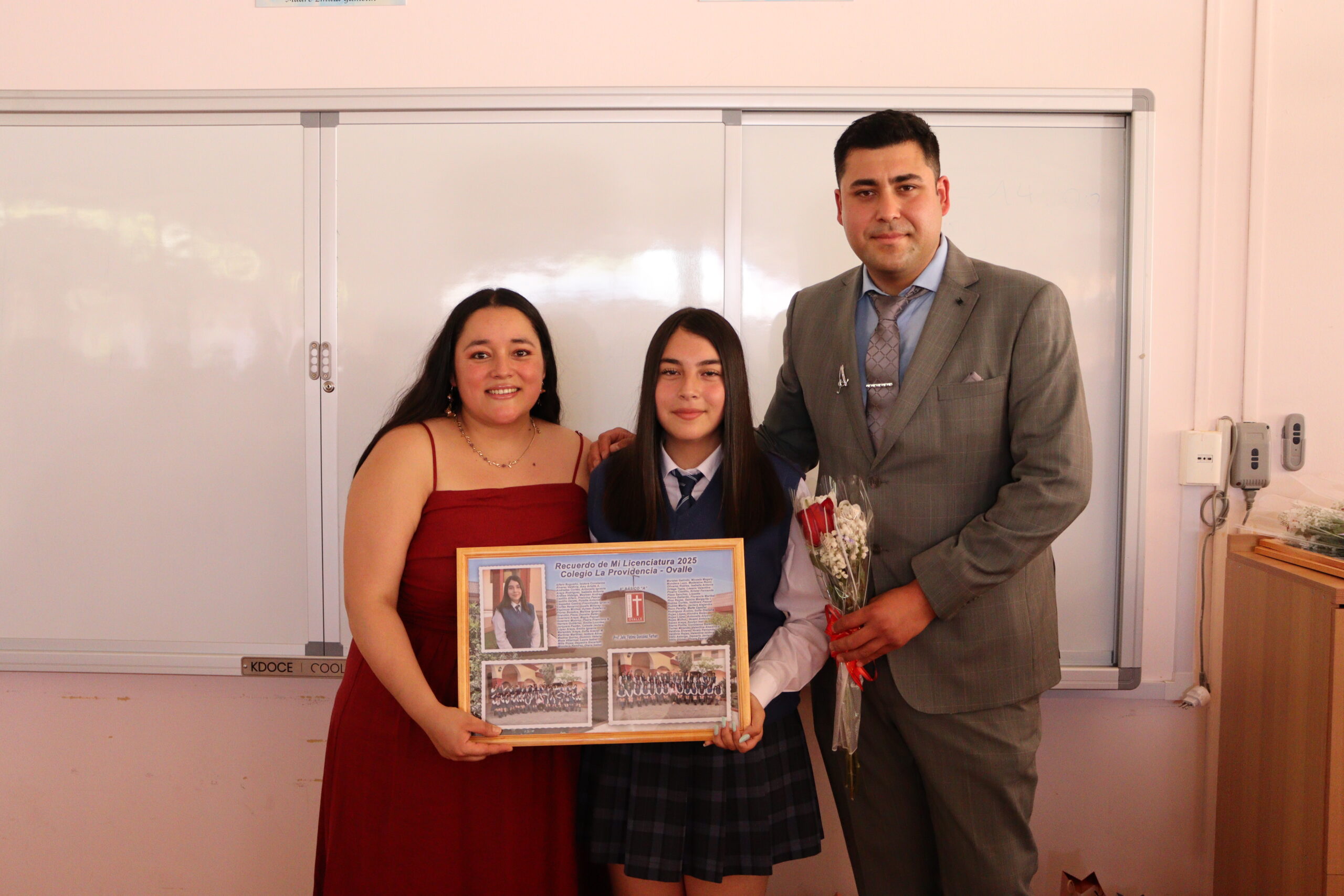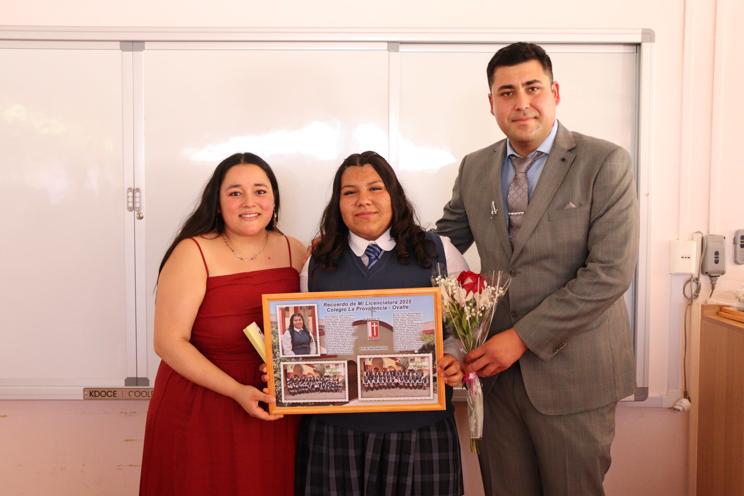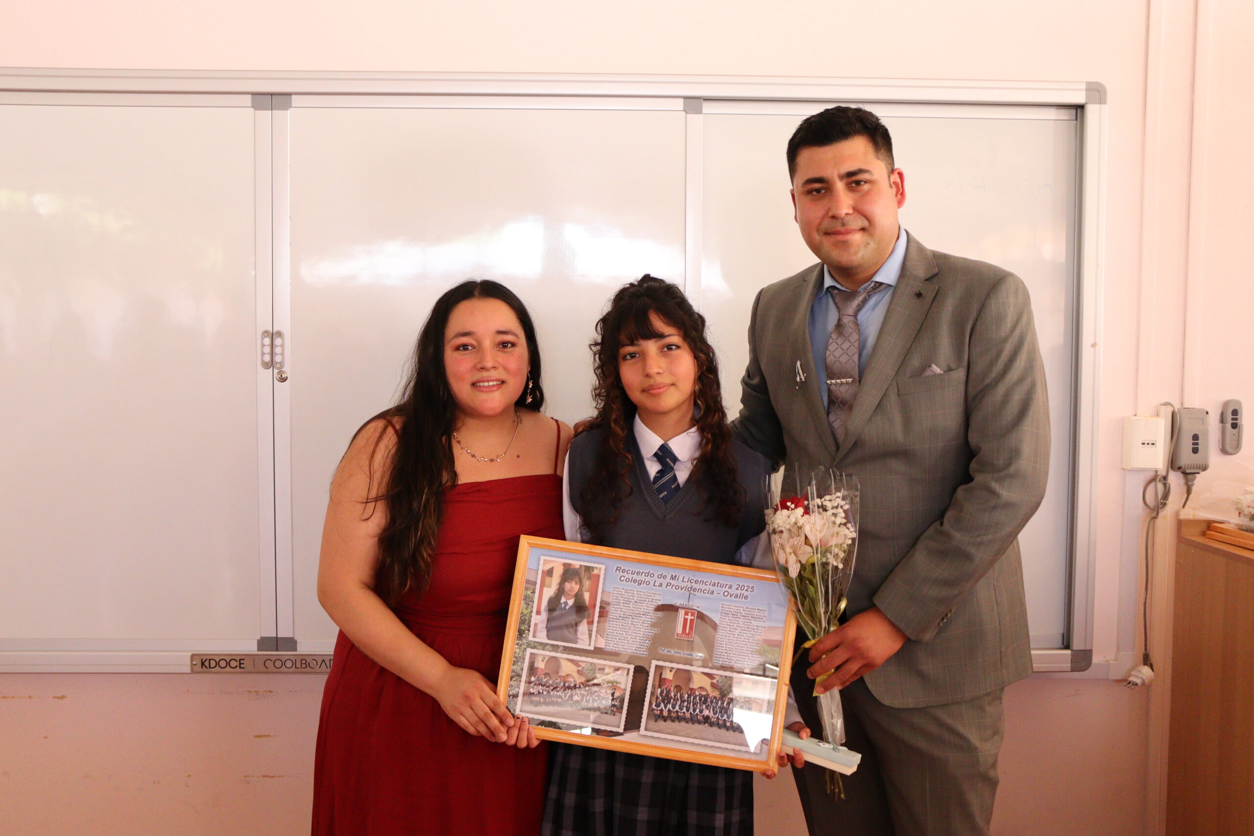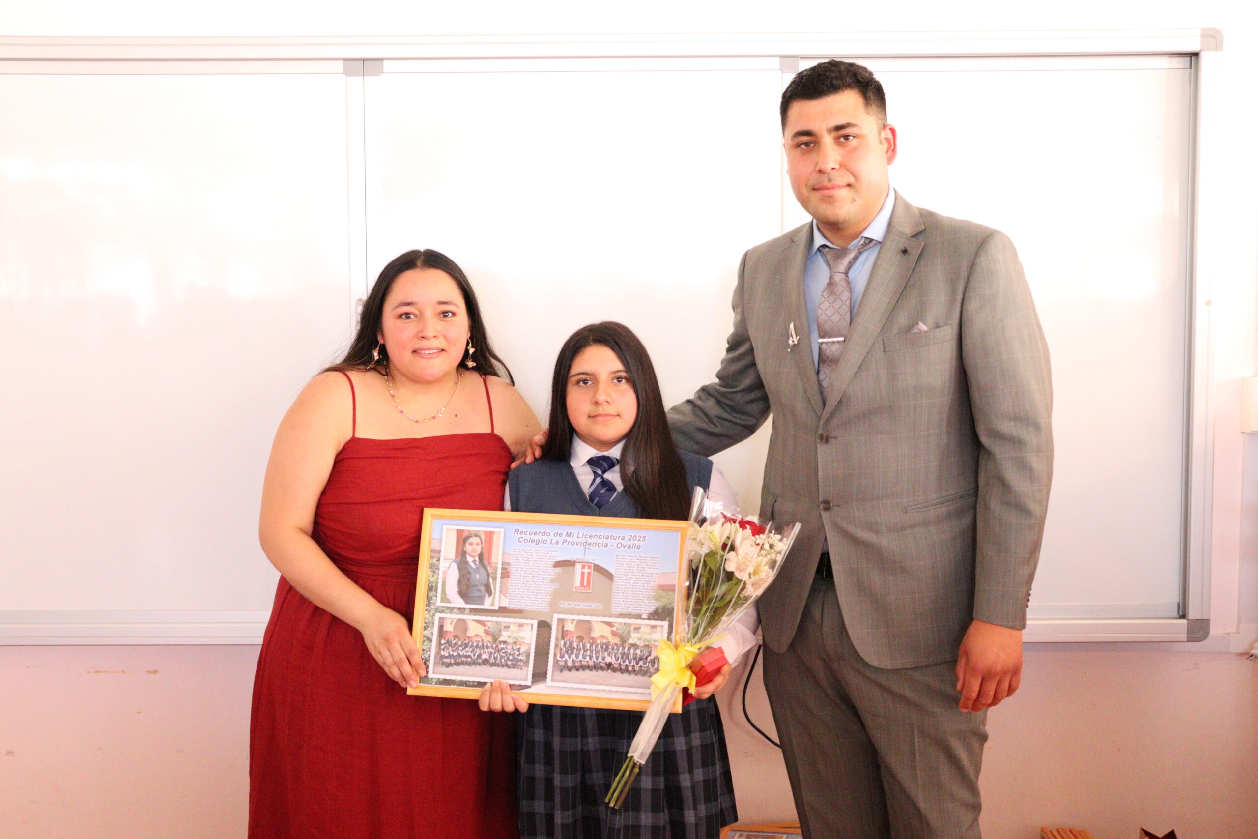 Posteriormente, las estudiantes recibieron sus diplomas en grupos, acompañadas por su profesor jefe suplente Ángelo Álvarez, quien asumió con compromiso el liderazgo del curso durante el post natal de la profesora jefe Fátima González. A pesar de encontrarse en este período, la profesora Fátima González estuvo presente para acompañar a sus estudiantes en tan importante paso, gesto que reflejó su vocación y cariño.