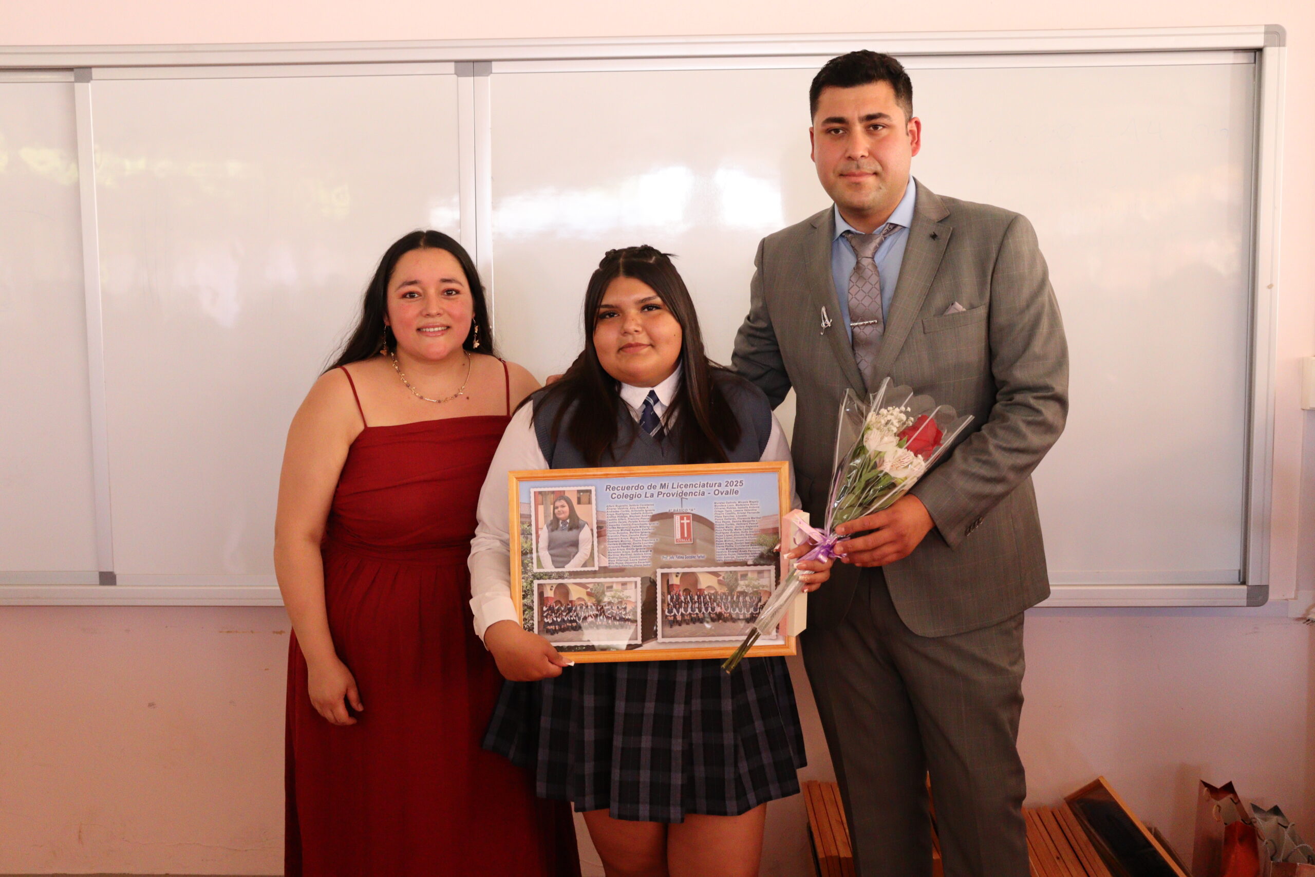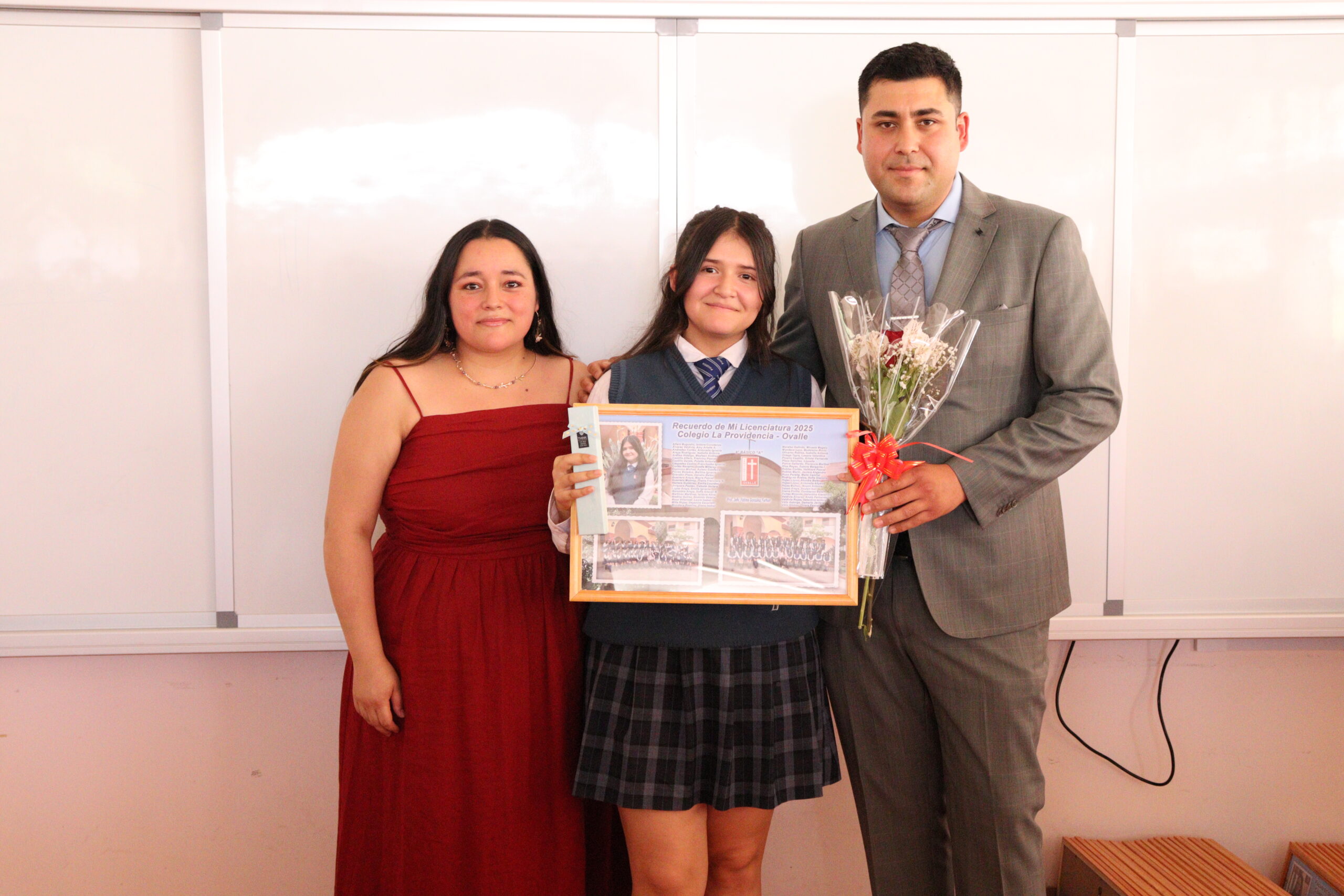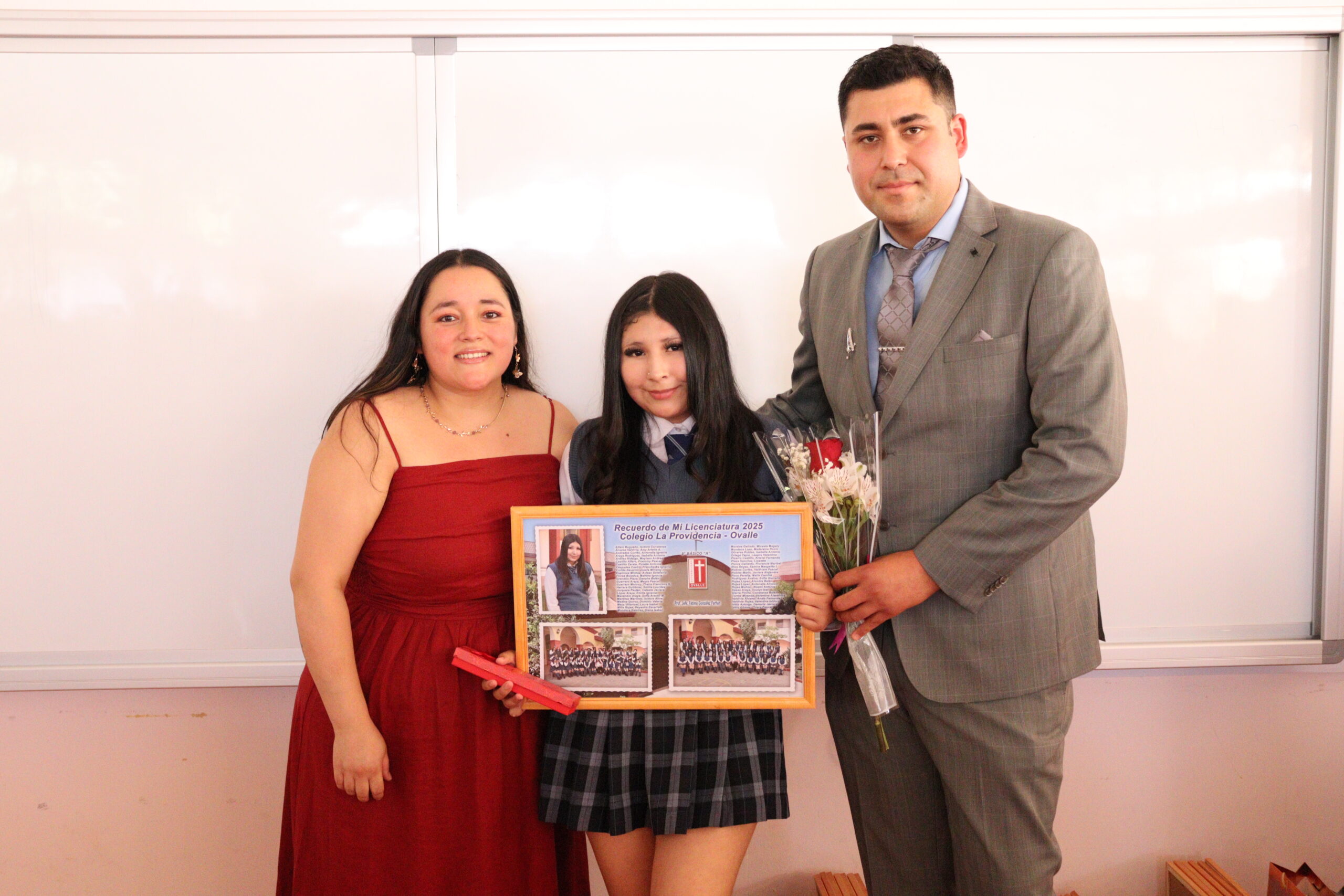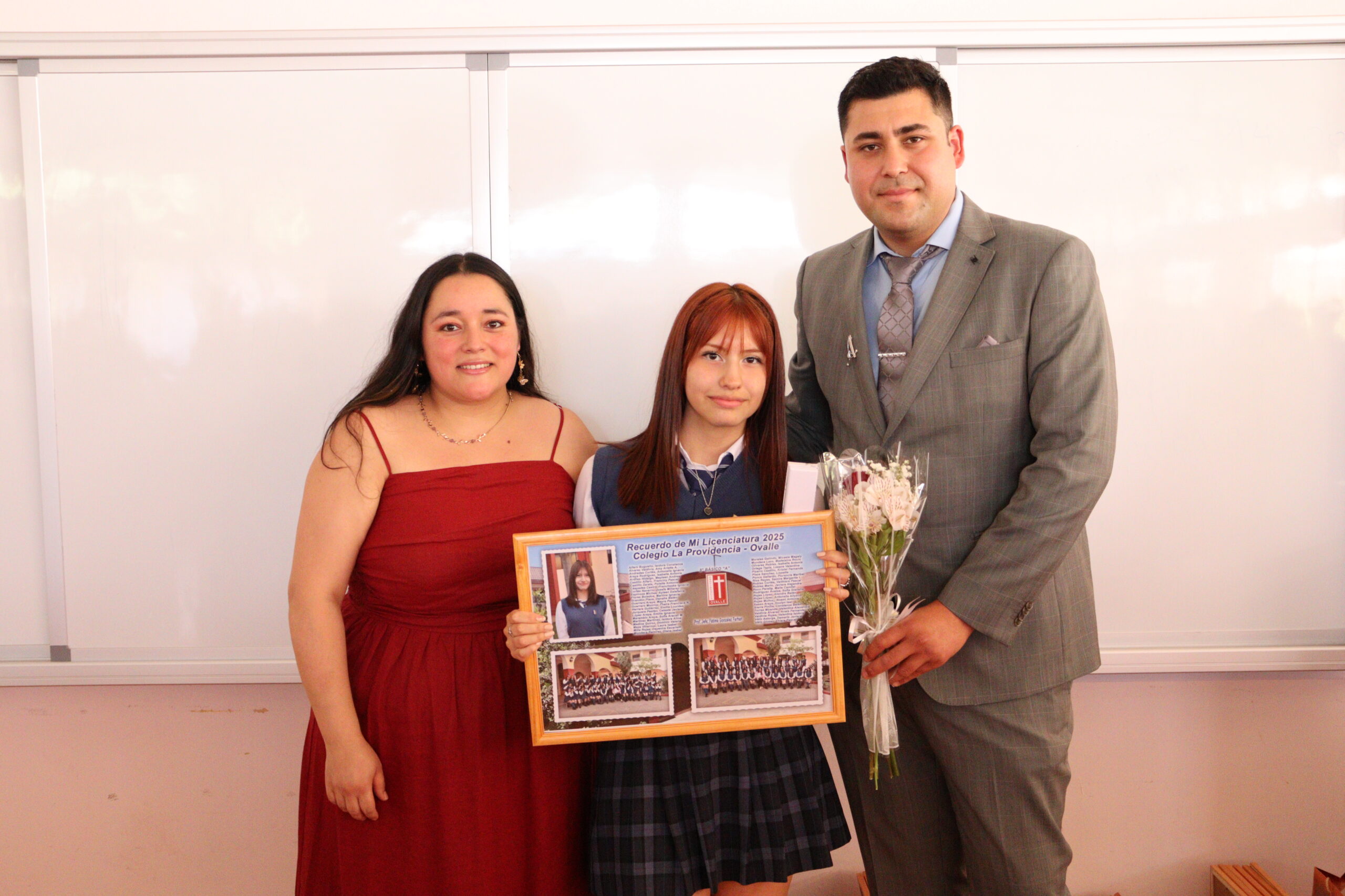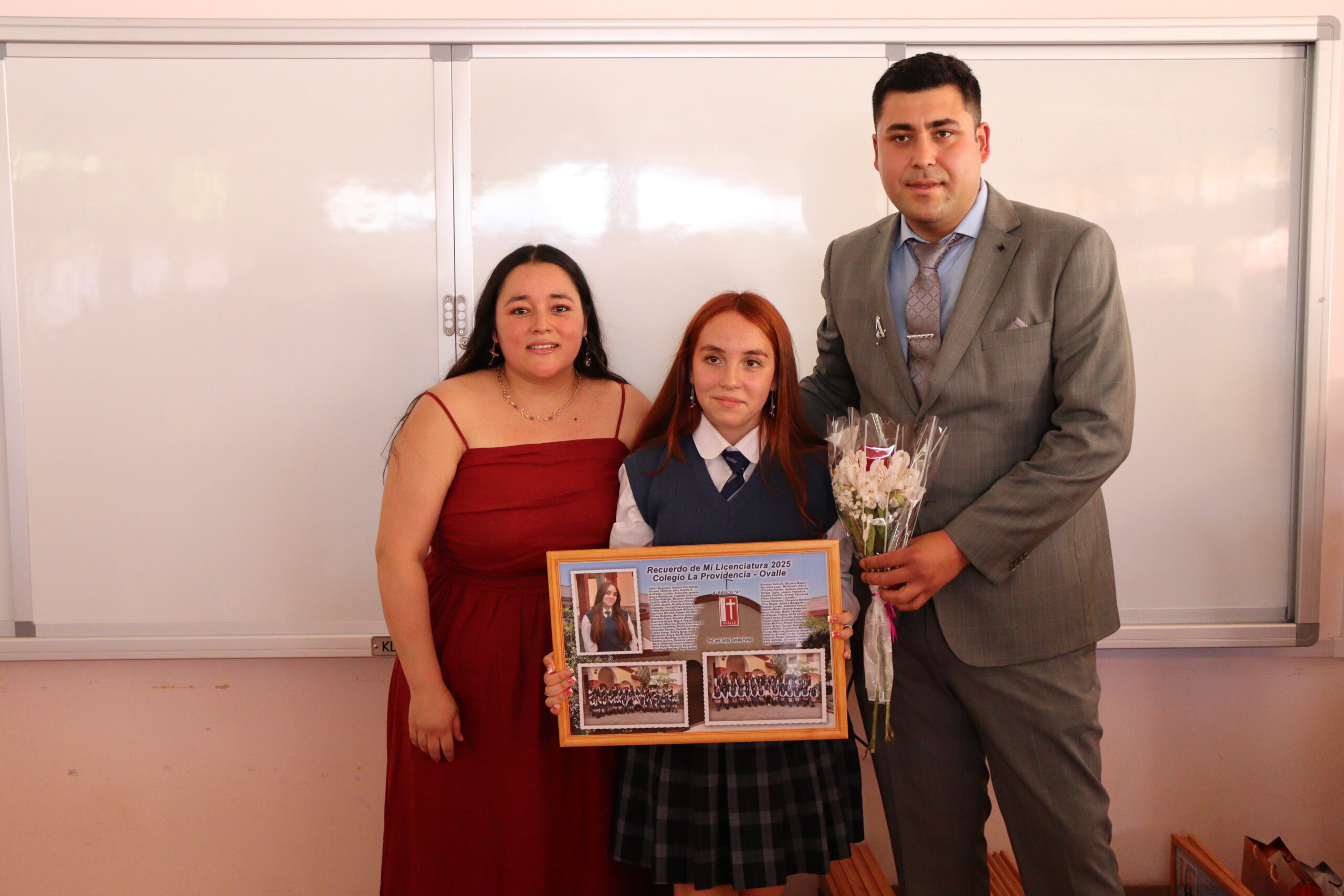 Posteriormente, las estudiantes recibieron sus diplomas en grupos, acompañadas por su profesor jefe suplente Ángelo Álvarez, quien asumió con compromiso el liderazgo del curso durante el post natal de la profesora jefe Fátima González. A pesar de encontrarse en este período, la profesora Fátima González estuvo presente para acompañar a sus estudiantes en tan importante paso, gesto que reflejó su vocación y cariño.