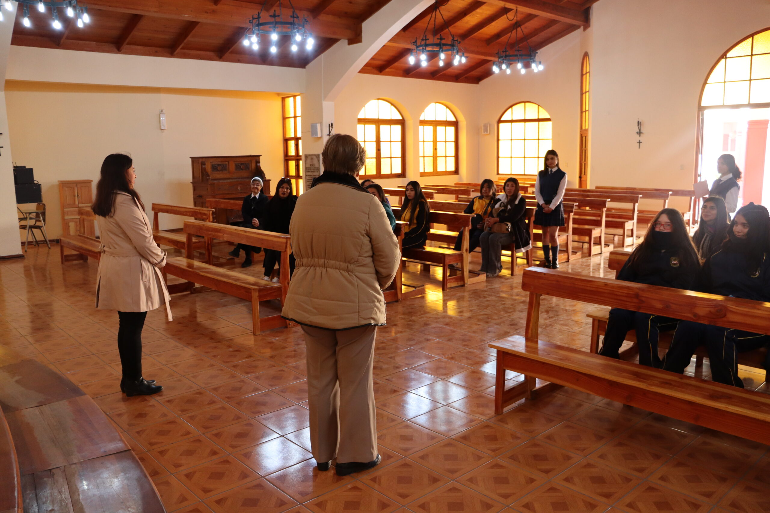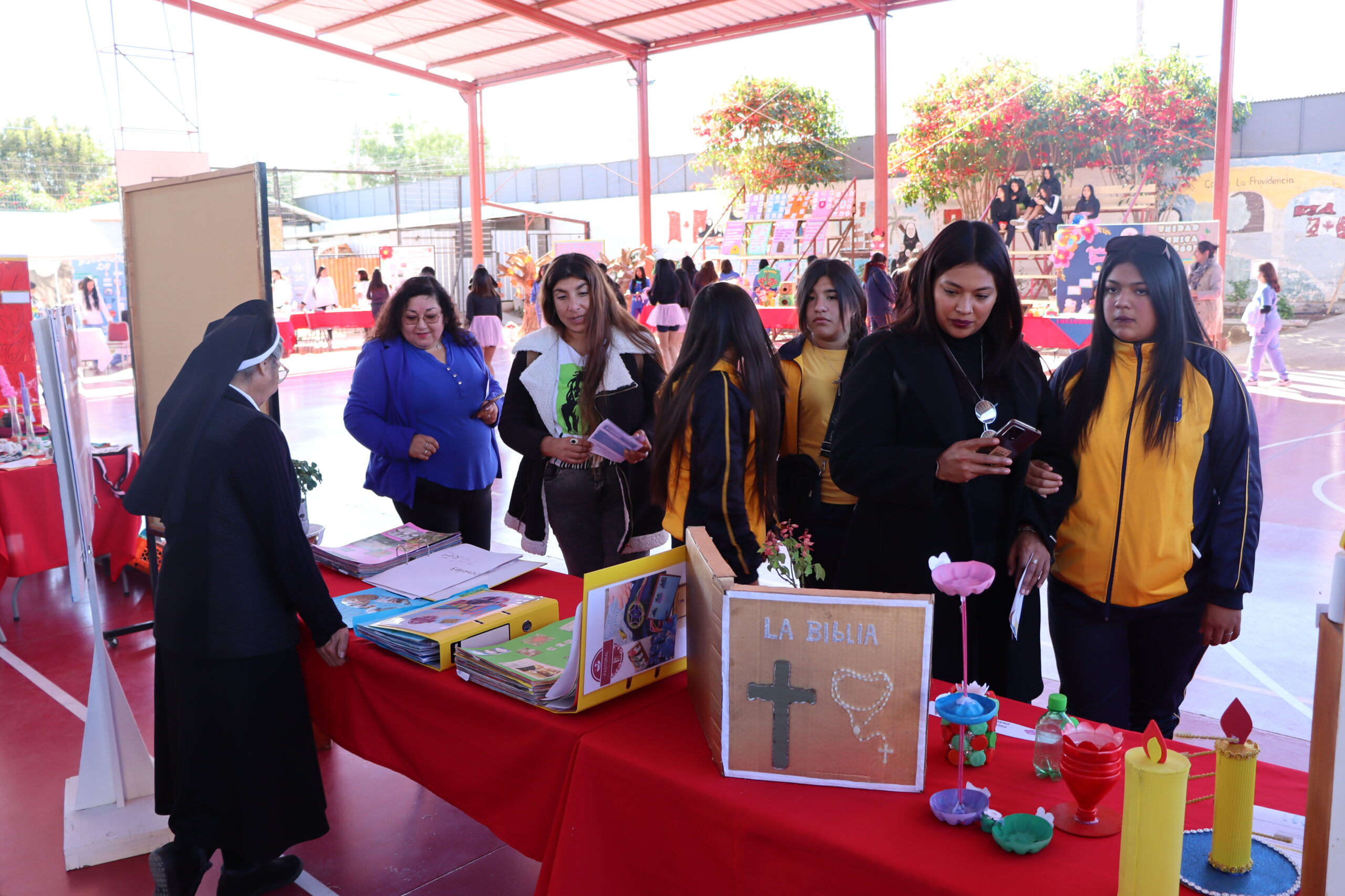 Esta instancia, que tiene por objeto contribuir en la orientación vocacional y el proyecto de vida de nuestras estudiantes, a través de información in situ sobre las especialidades, academias, departamentos como los de Orientación, Unidad Técnica Pedagógica, Inclusión, Convivencia, CRA, Psicología, Medio Ambiente y Pastoral, enfatizando todos los apoyos que nuestras estudiantes tienen a disposición durante su paso por este Proyecto Educativo Providencia. Nuestras escuelas y familias invitadas, tuvieron la oportunidad de conocer las dependencias de nuestro establecimiento, comenzando por el corazón del colegio: nuestra capilla, donde, los distintos grupos, recibieron las palabras de Bienvenida de la Directora, Inspectora General y Orientadora; también se vivió un momento especial donde la Hermana Elvira Letelier, compartía una oración de bendición por el futuro y las decisiones que cada estudiante debía tomar para lograr sus sueños y metas. Luego de la capilla, pasaban por el CRA, los talleres de especialidades, el internado, el gimnasio, la sala de música, para culminar en la Feria propiamente tal.