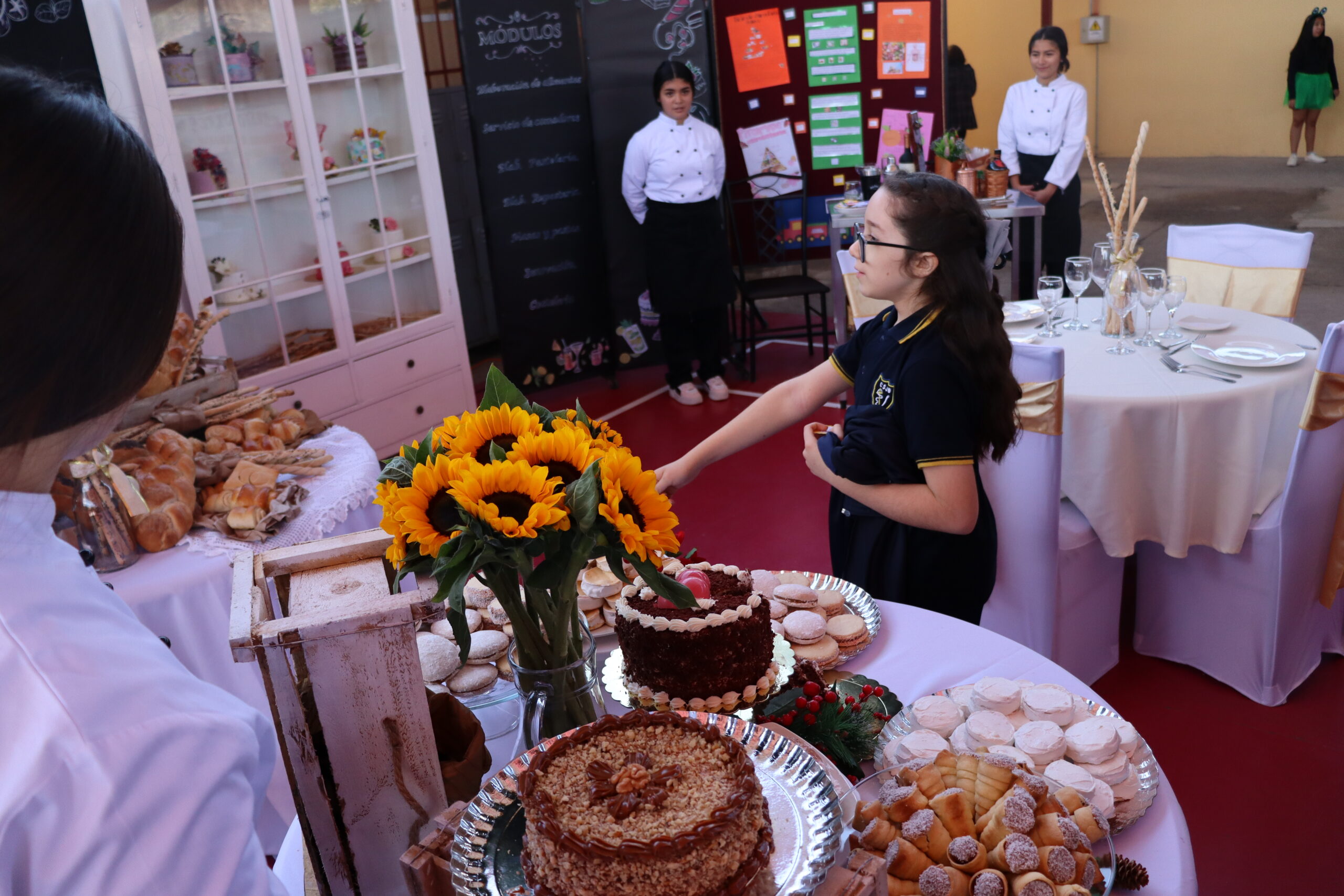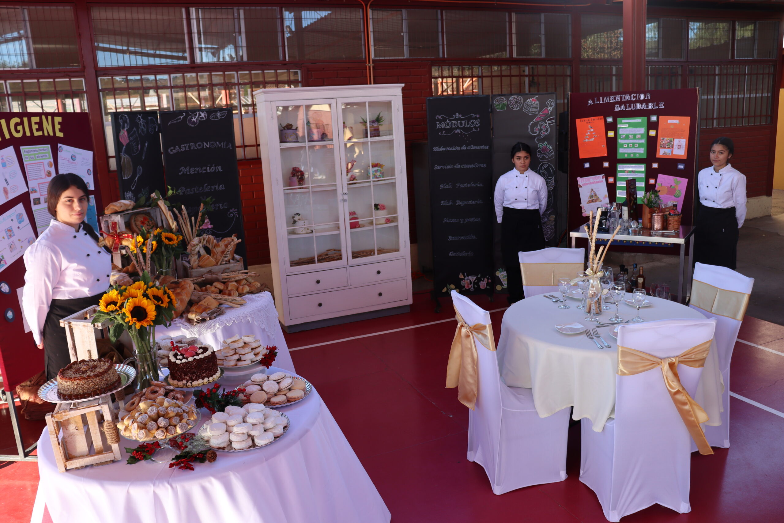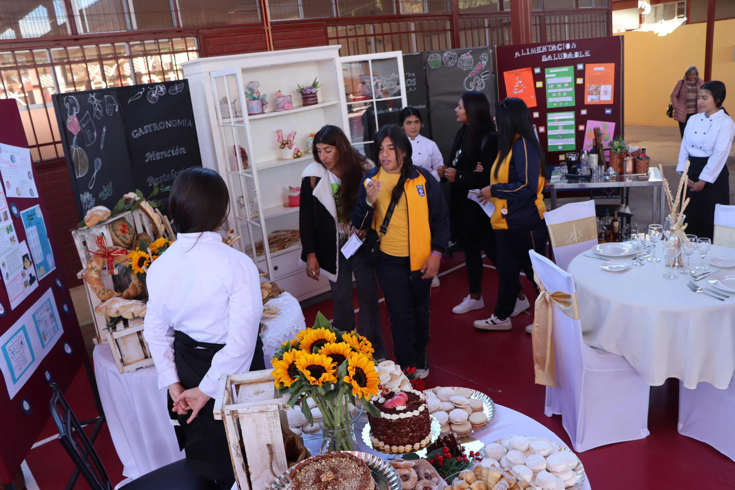 Esta actividad contó con las palabras de inauguración de nuestra directora, Sra. María Cecilia Martínez y de la orientadora Sra. Paola Araya, quienes entregaron mensajes para las autoridades presentes enfocados sobre todo a la acogida y apertura del Colegio con la región y resaltaron el compromiso responsable de nuestras estudiantes y funcionarios con este importante evento. Posterior al acto, se invitó a las autoridades a un recorrido por la feria, finalizando con la degustación de un delicioso cóctel preparado, especialmente para ellos, por parte de las estudiantes de la especialidad de Gastronomía.