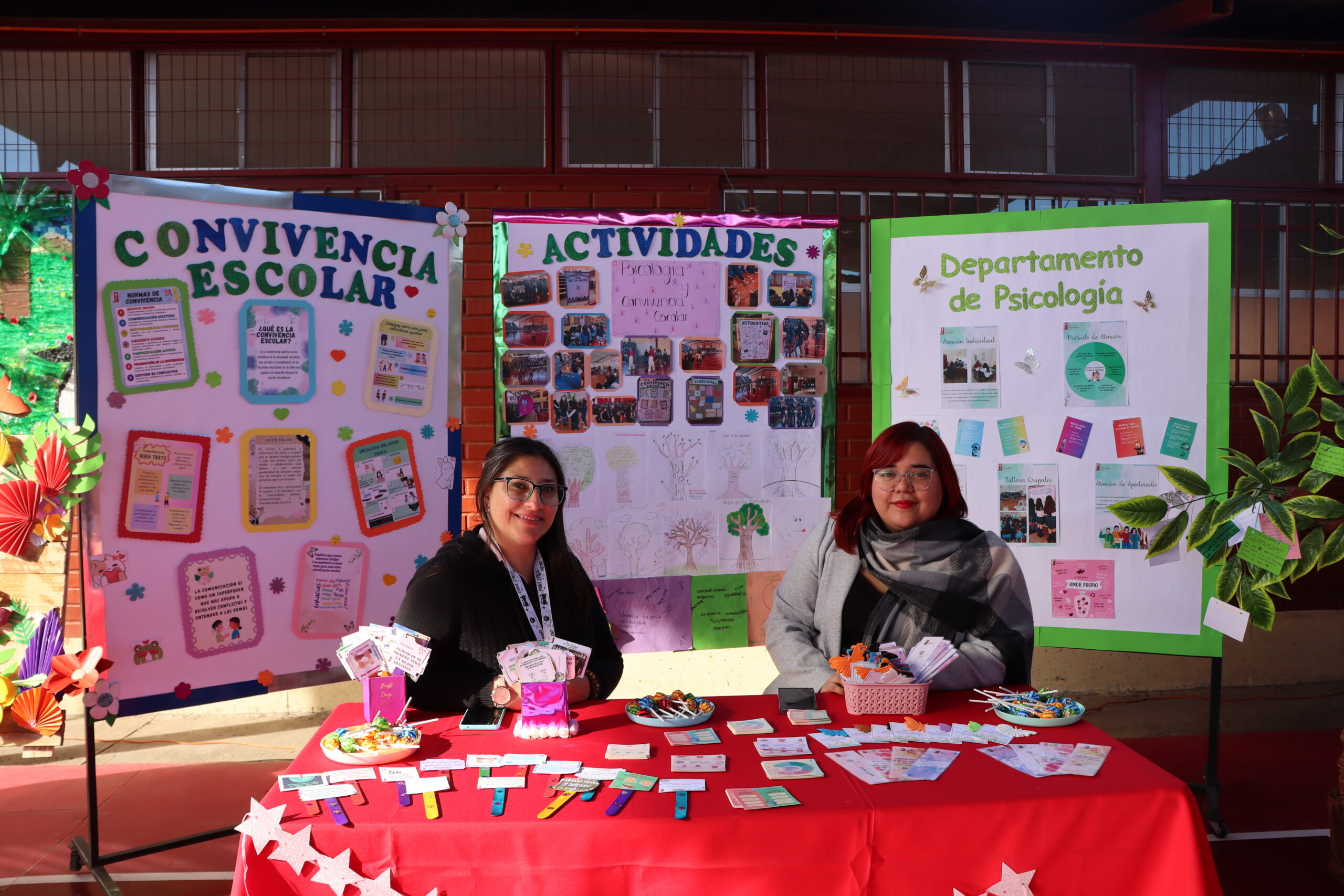 En toda la Feria, se plasmaba visual y concretamente nuestros sellos, el sello Técnico Profesional a través de las muestras de Atención de Párvulos, Atención de Enfermería, Gastronomía y Administración. El sello de Formación Ambiental se evidenció en el stand preparado especialmente por el Comité que lidera el trabajo de concientización del cuidado del medio ambiente en el colegio, y nuestro sello de Altas Expectativas Académicas, si bien era transversal, se acentuaba en los paneles de UTP, inclusión y Orientación. Nos visitaron 11 establecimientos educacionales de la región: Escuela El Guindo, Colegio San Juan Bautista, Escuela Fronteriza Tulahuén, Escuela Oscar Araya Molina, Escuela Los Olivos, Escuela Padre Joseph Benedikt Stegmeier de Sotaquí, Escuela de Los Nogales, Escuela Lucía Núñez de la Cuadra- La Torre, Escuela Carachilla, Escuela Patricio Zeballos de Socos y Escuela Juan Pablo Artíguez Peñafiel. El día jueves contamos con más de 200 invitados entre estudiantes y apoderados; y el viernes la feria fue visitada por nuestros cursos más pequeños, apoderados y familias.