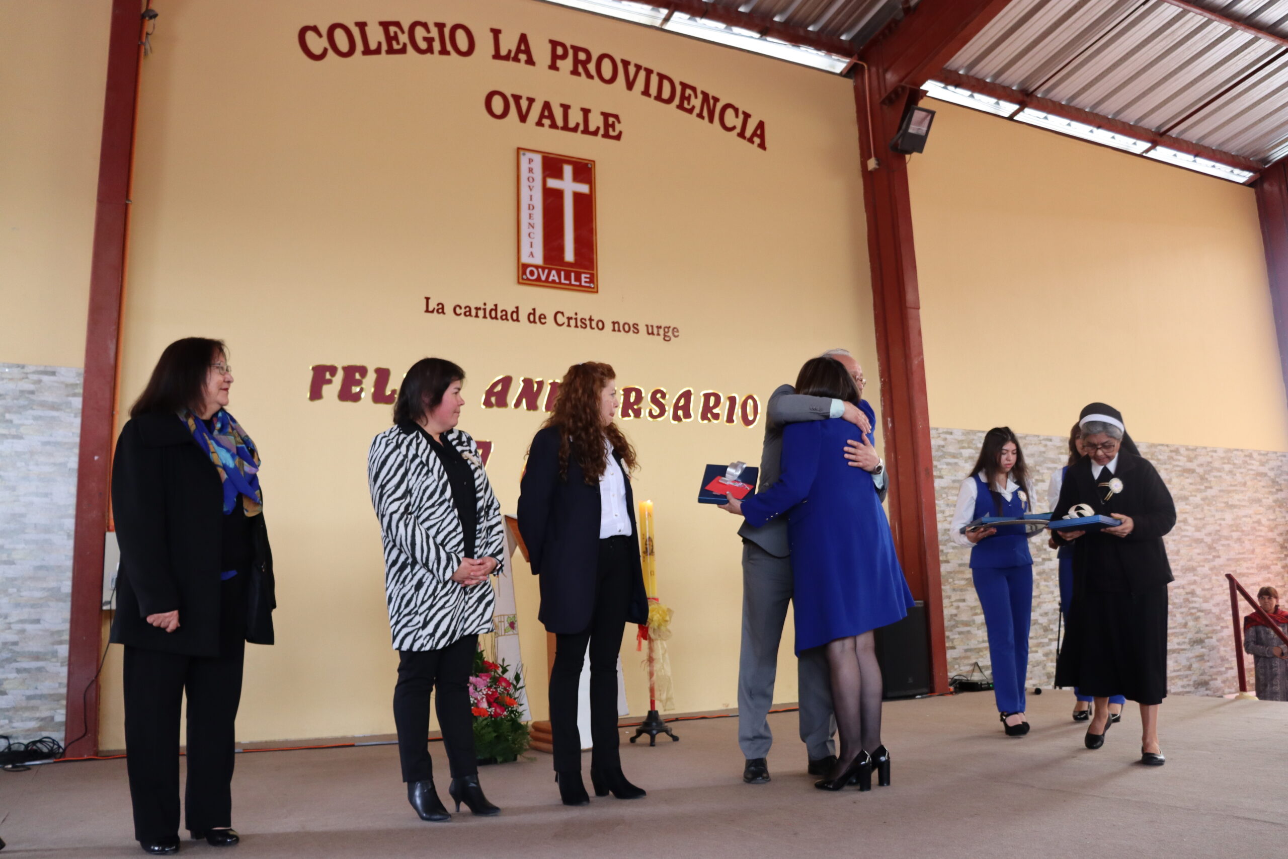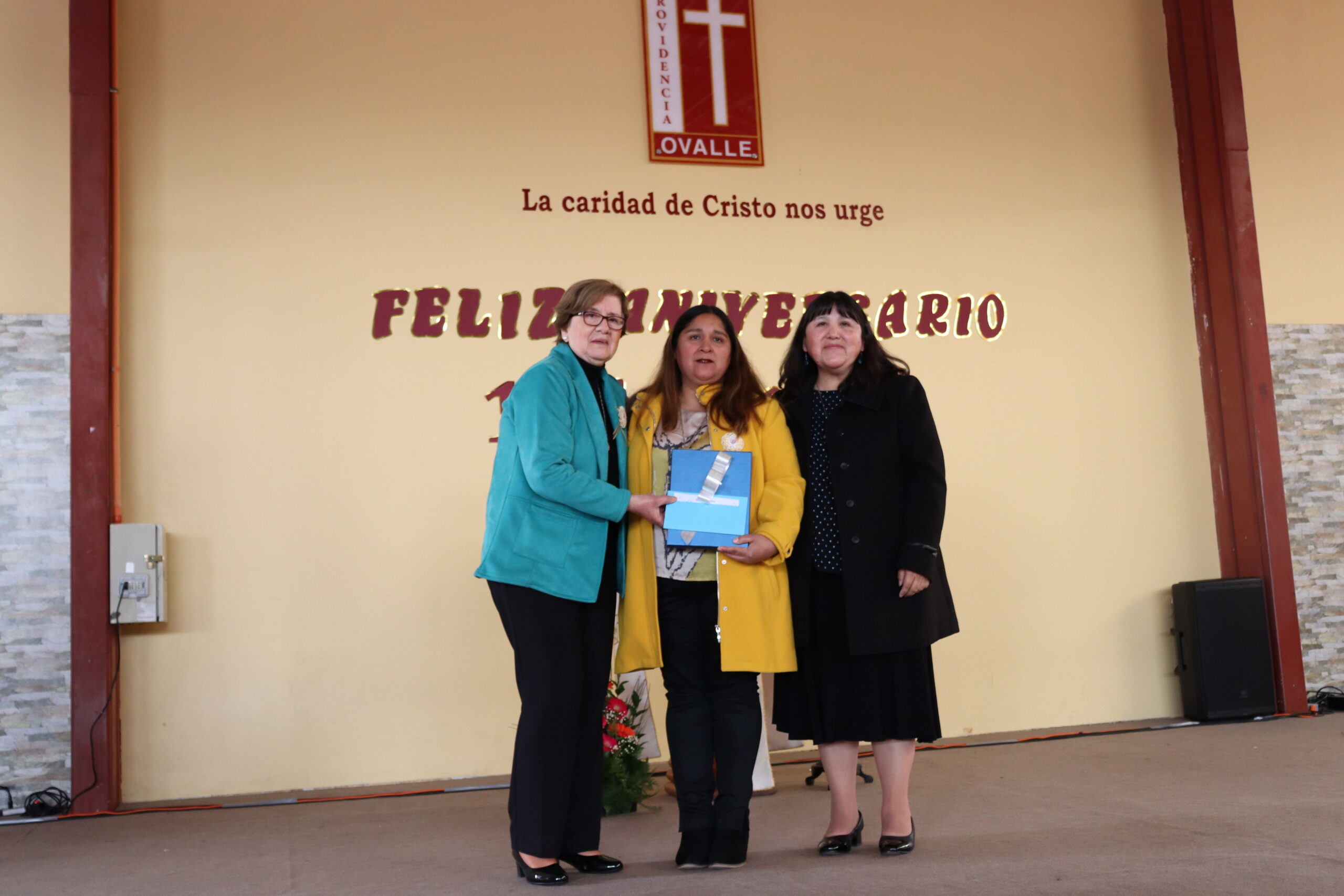 Durante la actividad el Centro de Padres y estudiantes, saludaron y reconocieron a nuestra Directora por este nuevo aniversario, al igual que los representantes de docentes, Asistentes y Asociados Providencia de Ovalle.