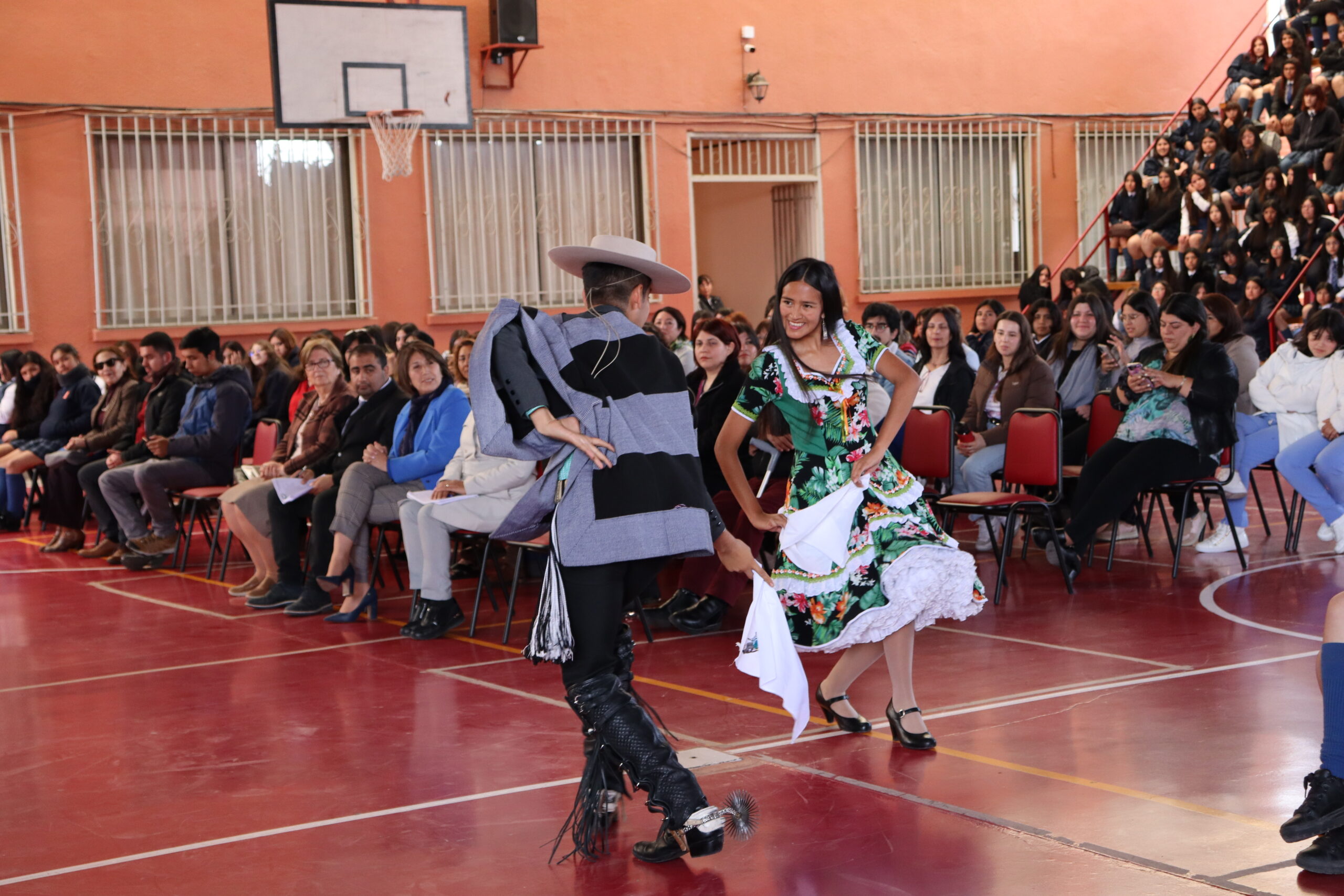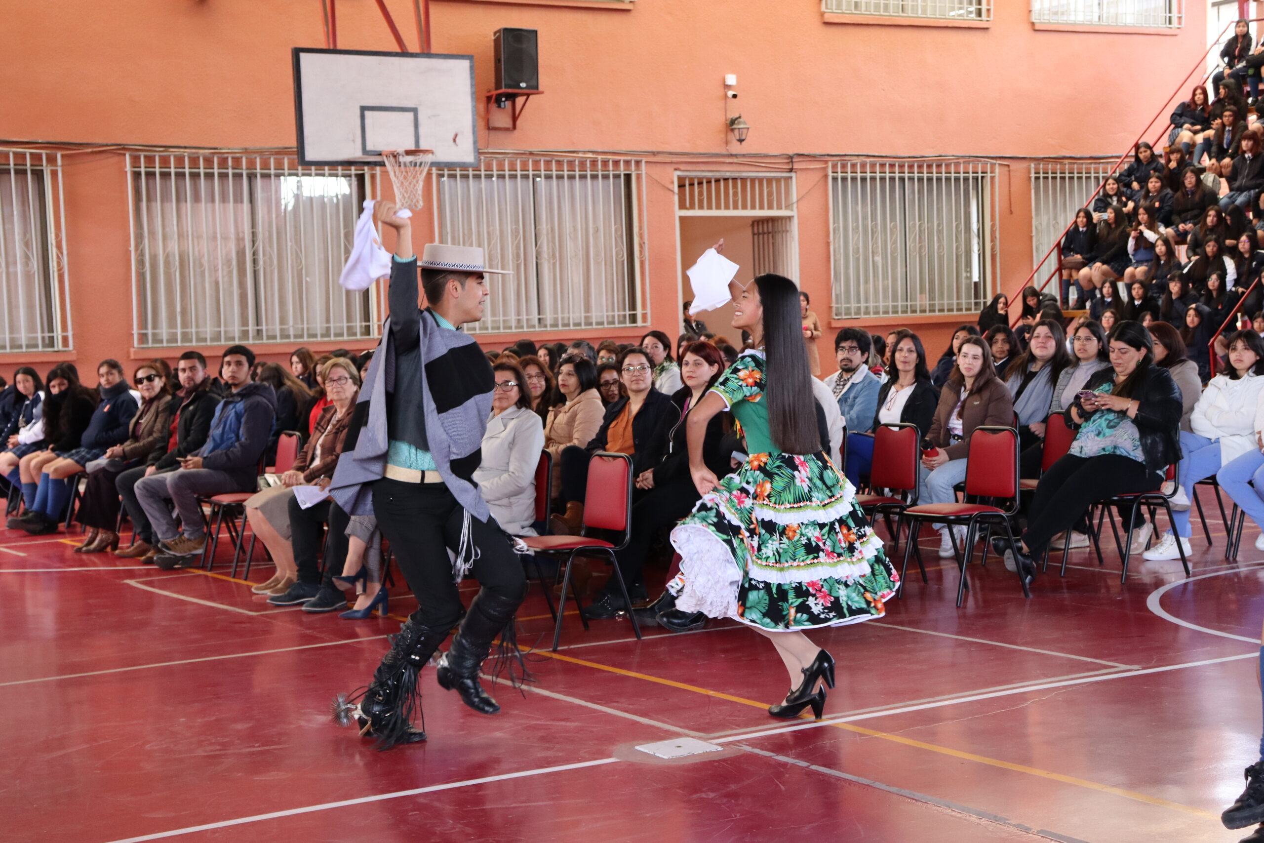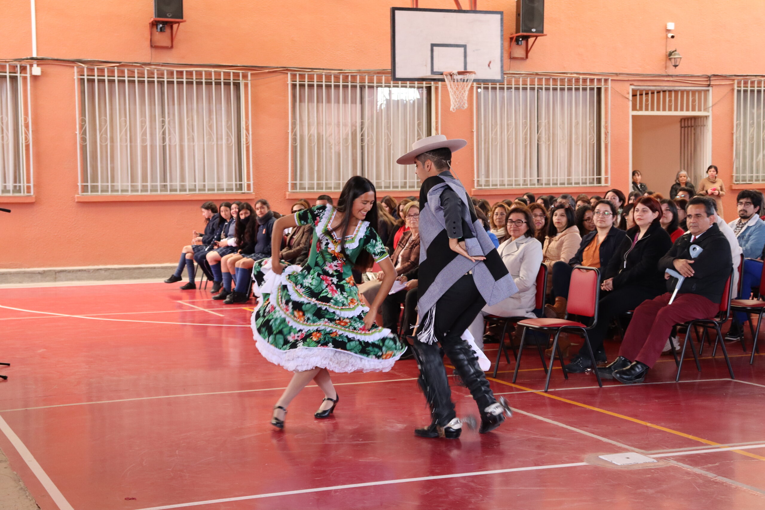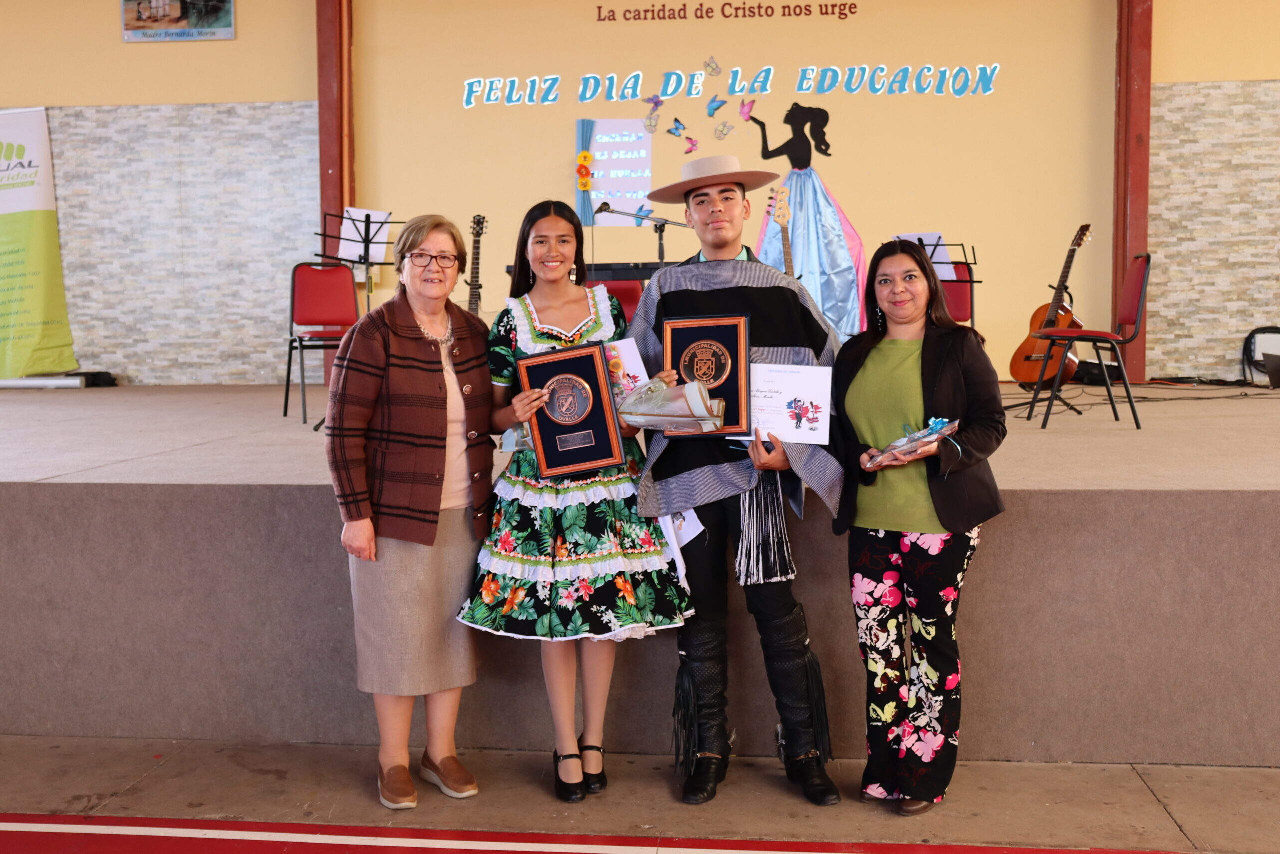 Al finalizar el acto conmemorativo, compartimos con la comunidad educativa, la felicidad y orgullo que tenemos como establecimiento, ya que durante el pasado 16 de octubre en el teatro municipal de Ovalle, se vivió una fiesta de la danza nacional, el 43° Concurso comunal de cueca escolar, instancia en la cual resultó ganadora nuestra estudiante Cinthia Bórquez Castillo y Álvaro Morales (Colegio Santa Teresa), pareja que representará a nuestra comuna de Ovalle en el Concurso Regional de Cueca a realizarse el próximo 26 de octubre en la comuna de Punitaqui. La pareja quiso ser parte de esta celebración bailando nuestra danza nacional a la comunidad educativa, les deseamos el mayor de los éxitos en la próxima competencia.