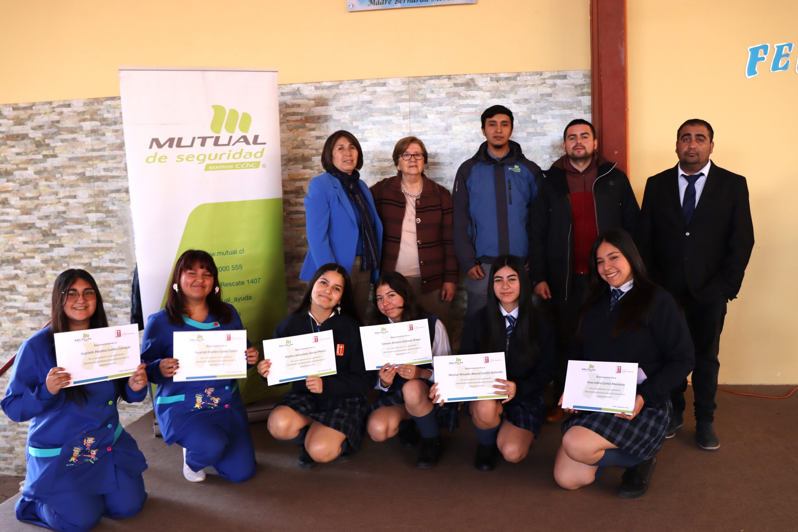 Como parte de nuestro compromiso con la educación en Chile y con las estudiantes de una mejora continua en la formación integral, la administración a cargo de Miriam Ossandón, asesor pedagógico Christopher Vicencio y Héctor Villagrán, prevencionista de riesgo gestionaron charlas de seguridad dictadas por la Mutual de Seguridad como parte del programa de Formación en seguridad para las estudiantes de terceros y cuartos medios, cuyo objetivo es que las estudiantes adquieran habilidades esenciales para promover entornos seguros y saludables. Instancia en la cual se les hizo entrega de certificados de participación de las capacitaciones de riesgo a las estudiantes contando con la presencia de un representante de la Mutual de Seguridad, Manuel González Urrutia.