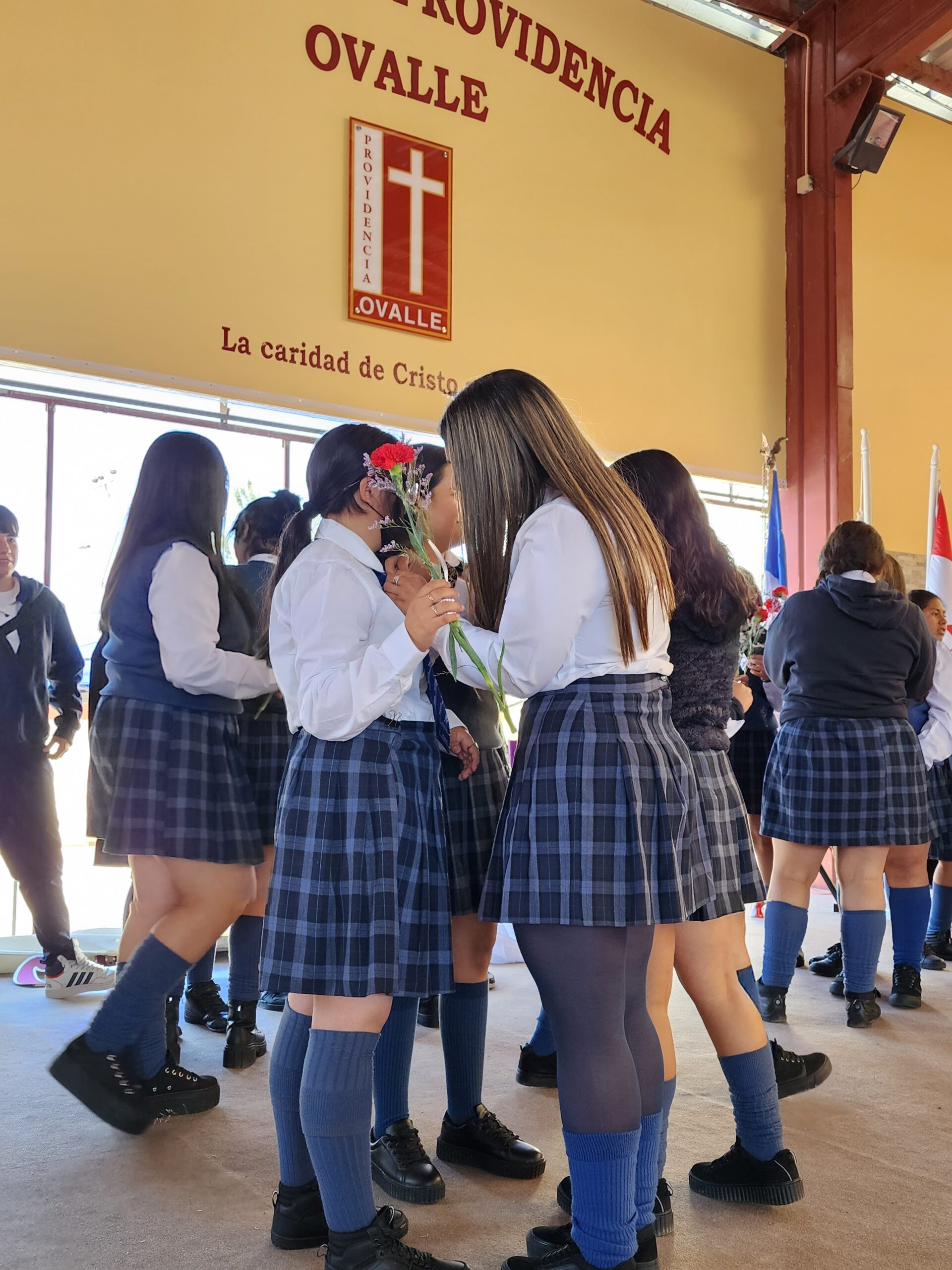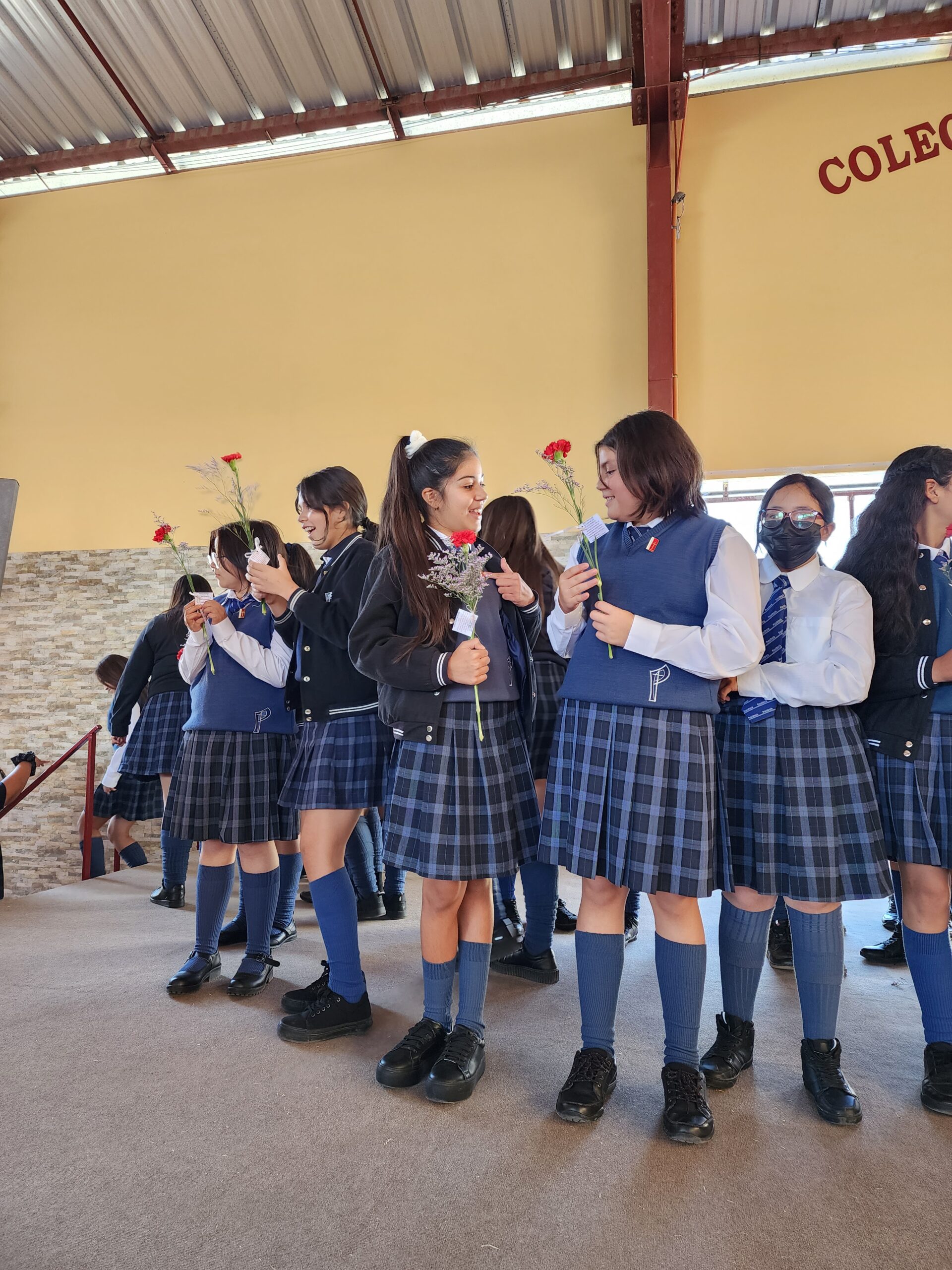 Además, las estudiantes más pequeñas que se integran este año a 7°A fueron presentadas ante sus compañeras, recibiendo la bienvenida y apadrinamiento de estudiantes de cuarto medio que, de manera voluntaria con gran cariño entregaron como símbolo la piocha de nuestro establecimiento y flores a cada una de ellas.