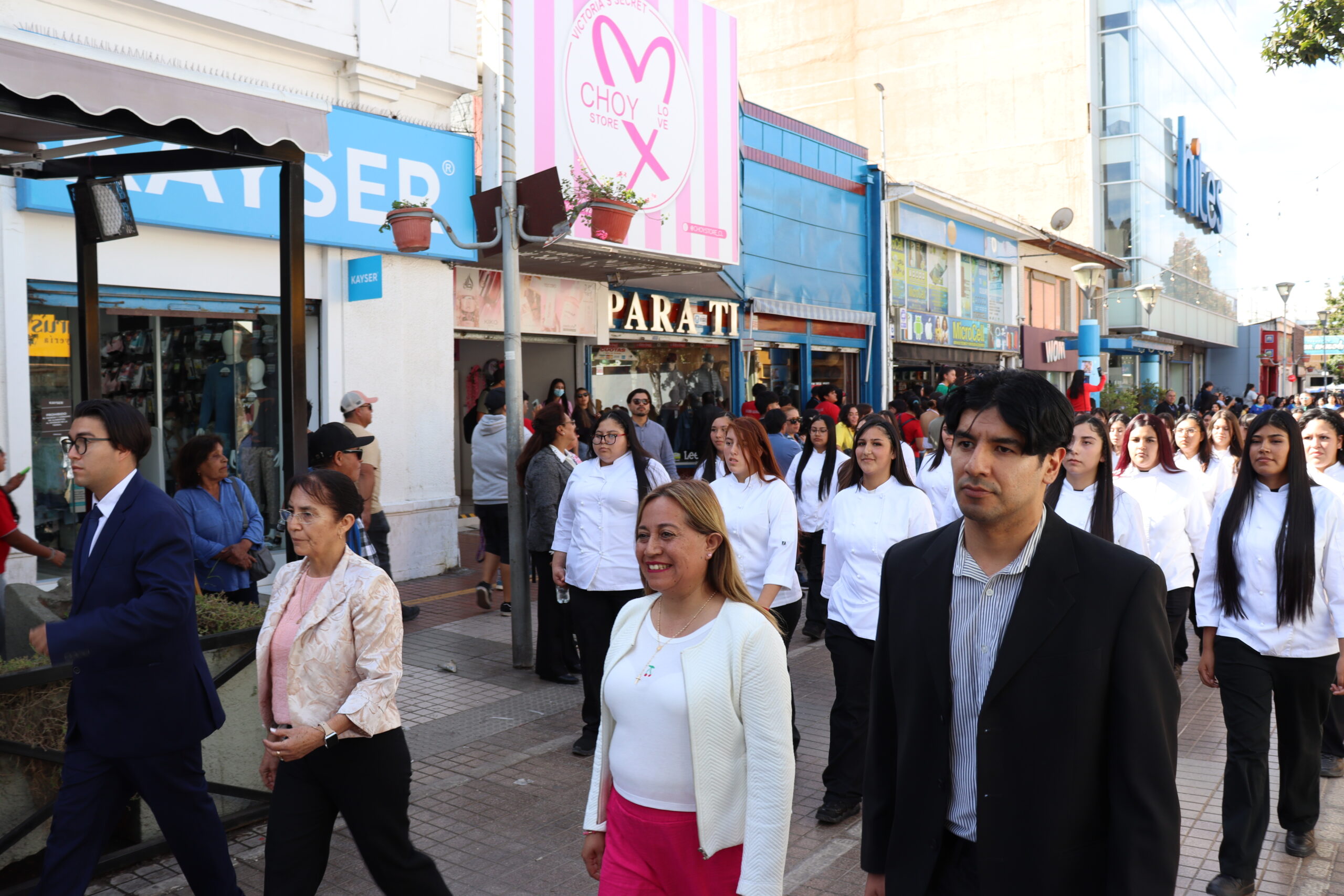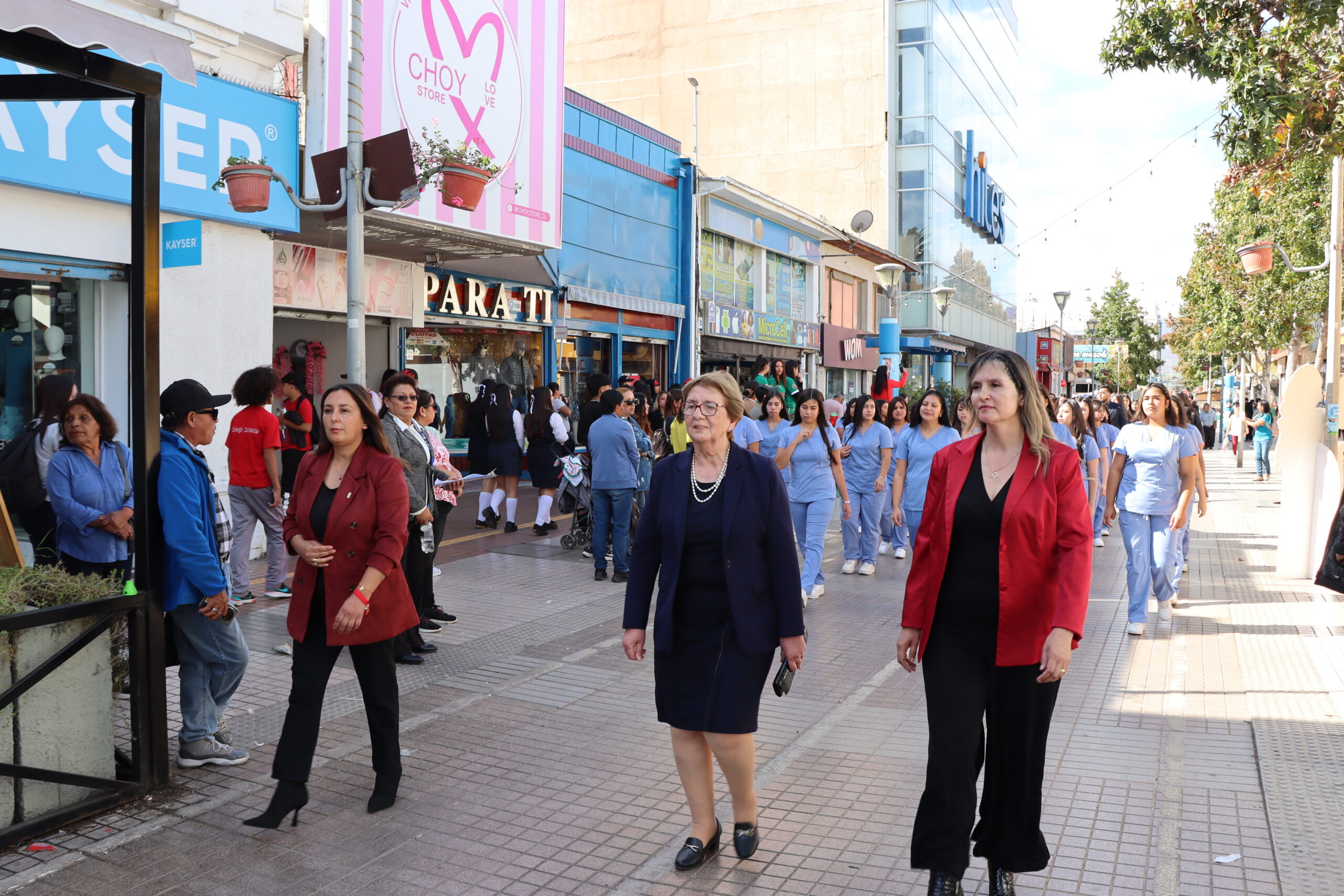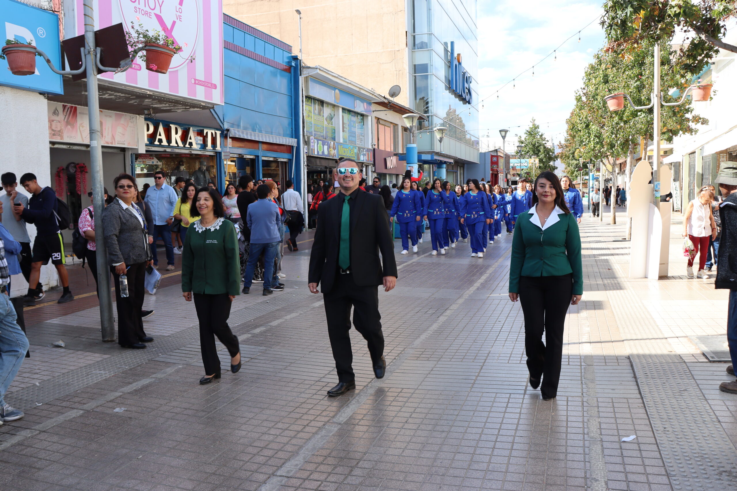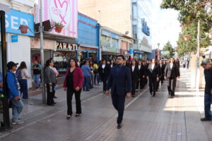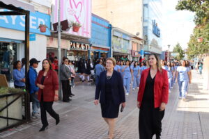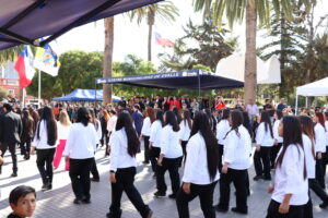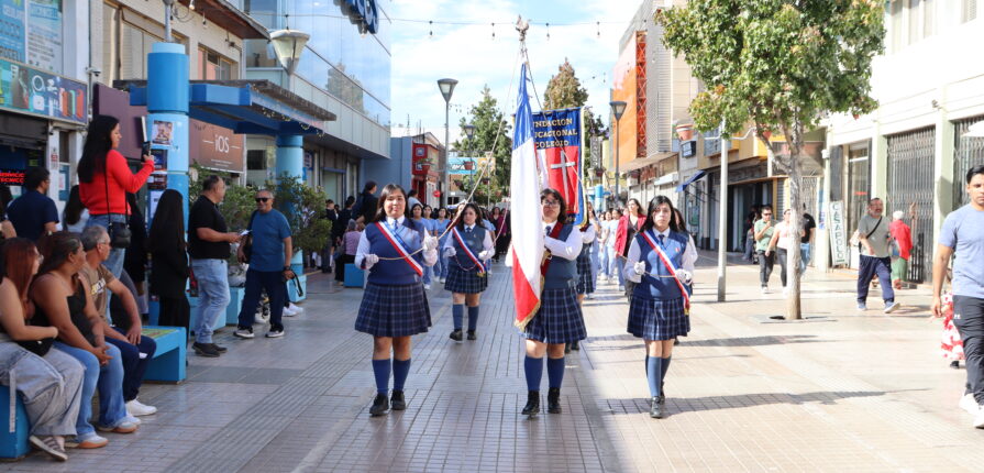 Posteriormente, se dio paso al actotradicional desfile cívico en la Plaza de Armas, donde nuestro colegio se presentó con orgullo mostrando sus cuatro especialidades: Atención de Enfermería, Atención de Párvulo, Gastronomía y Administración. Estudiantes y docentes desfilaron juntos, acompañados por nuestra directora María Cecilia Martínez Salas, reflejando el compromiso de nuestra institución con la formación integral y el aporte al desarrollo de Ovalle.