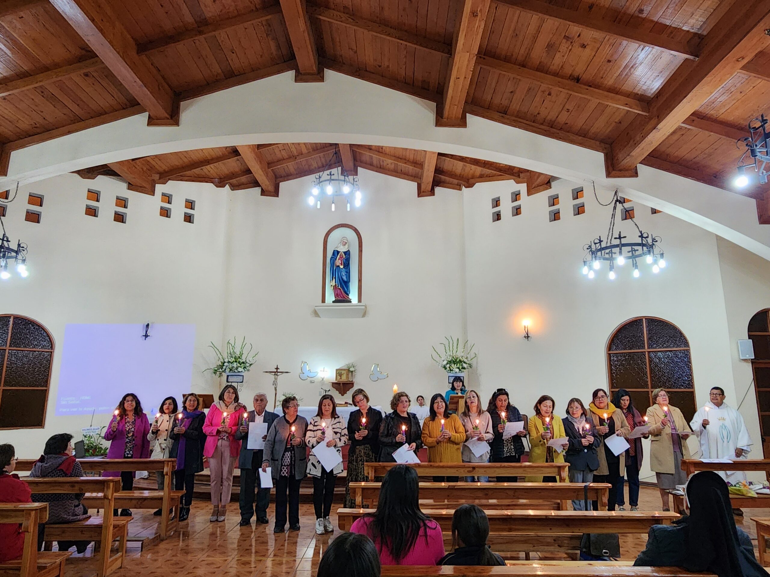 La eucaristía fue presidida por el sacerdote, integrante de la comunidad de asociados, padre Pedro de la Paz y contó con la presencia de la Hrna. Rebeca Malhue de la comunidad religiosa y Hrnas. María Antonieta Trimpay y Elvira Letelier de la comunidad religiosa y educativa del colegio.