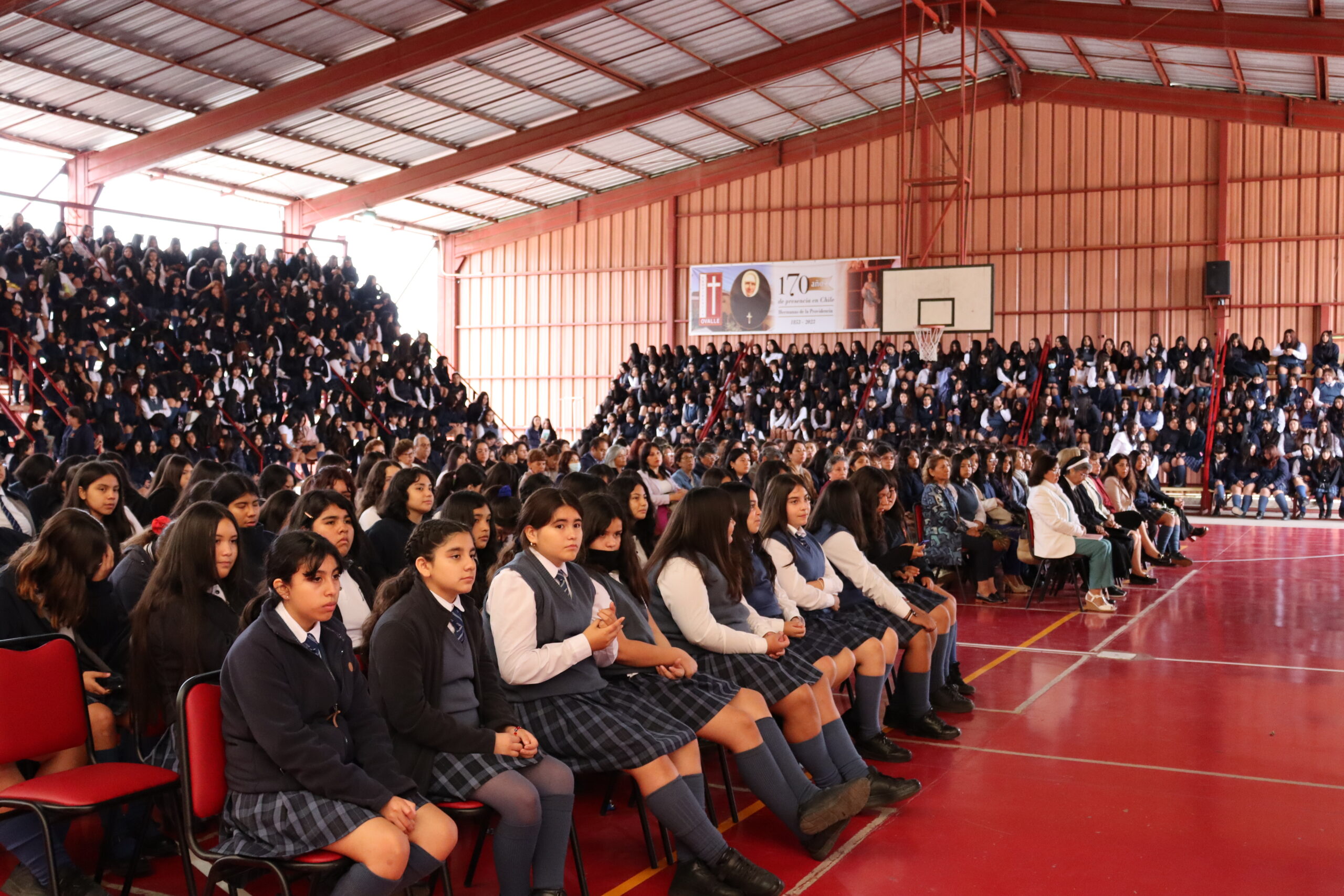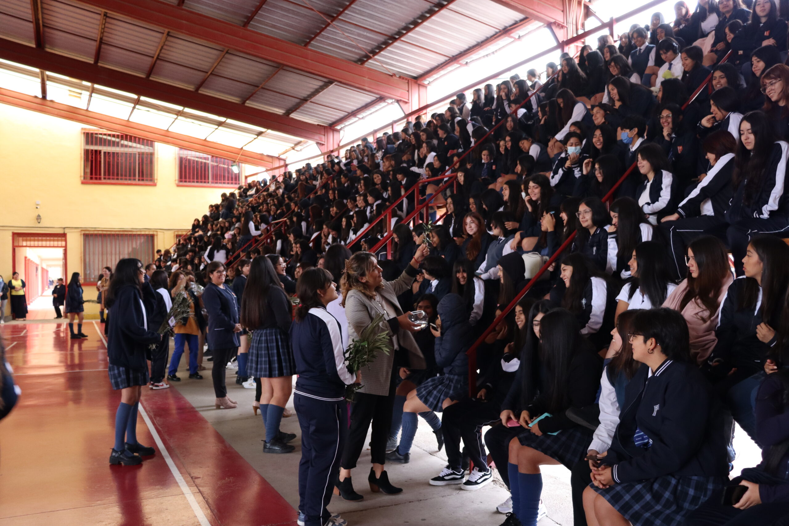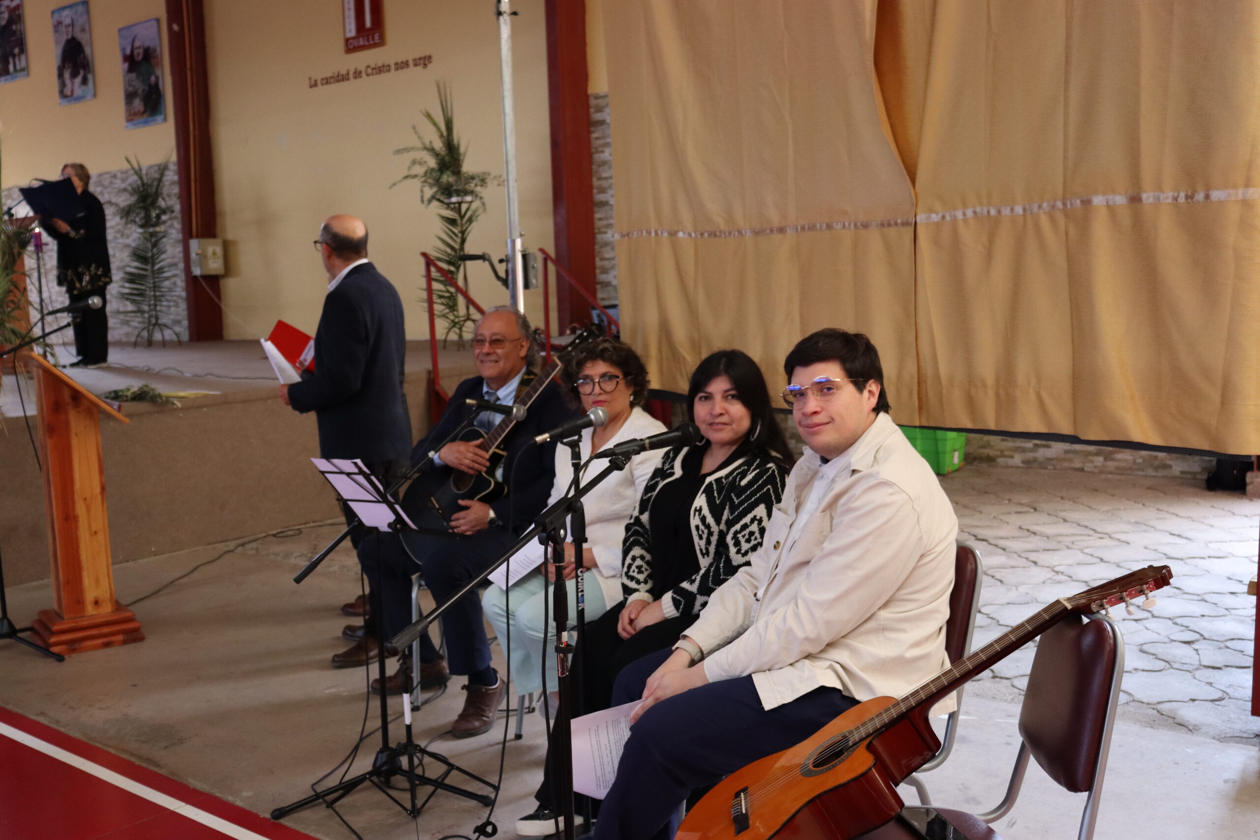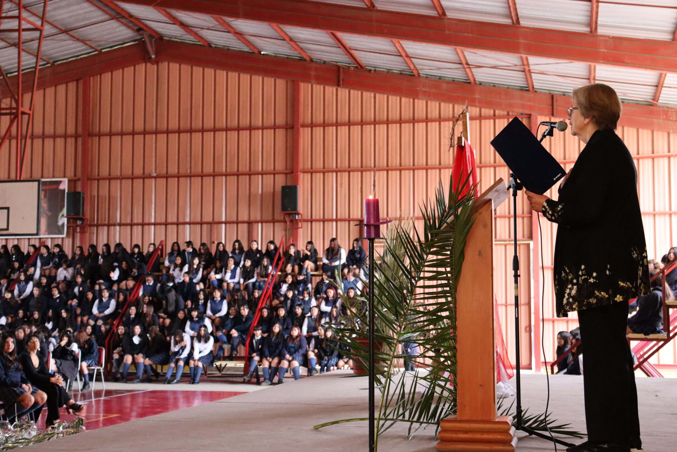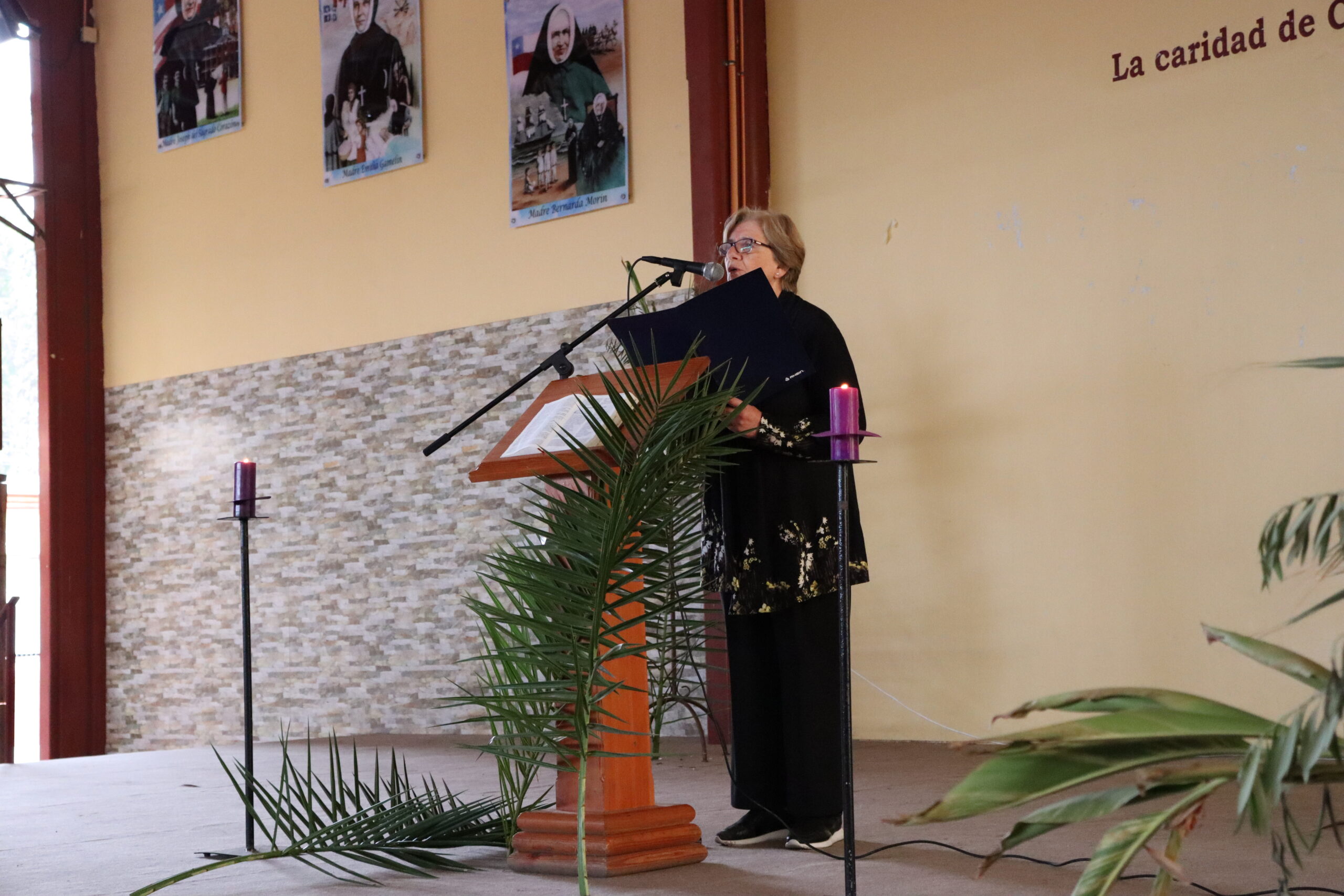 Durante la ceremonia, la Hna. Elvira Letelier bendijo e hizo entrega junto al profesor Gerardo Cortés de los ramos a cada profesor (a) Jefe con una estudiante en representación del curso, para ser puesto en la puerta de cada sala como signo de que, estamos acompañando a Jesús en su camino de muerte y resurrección.