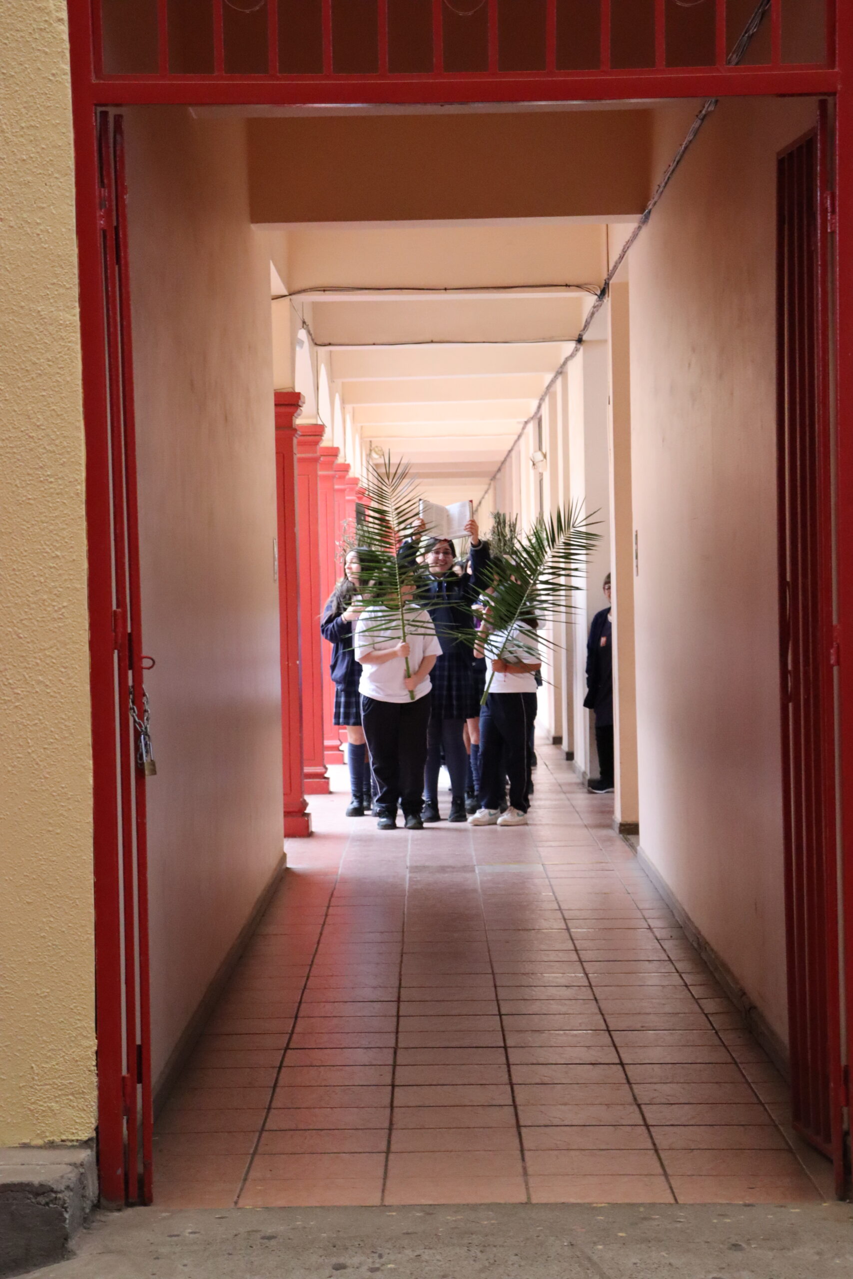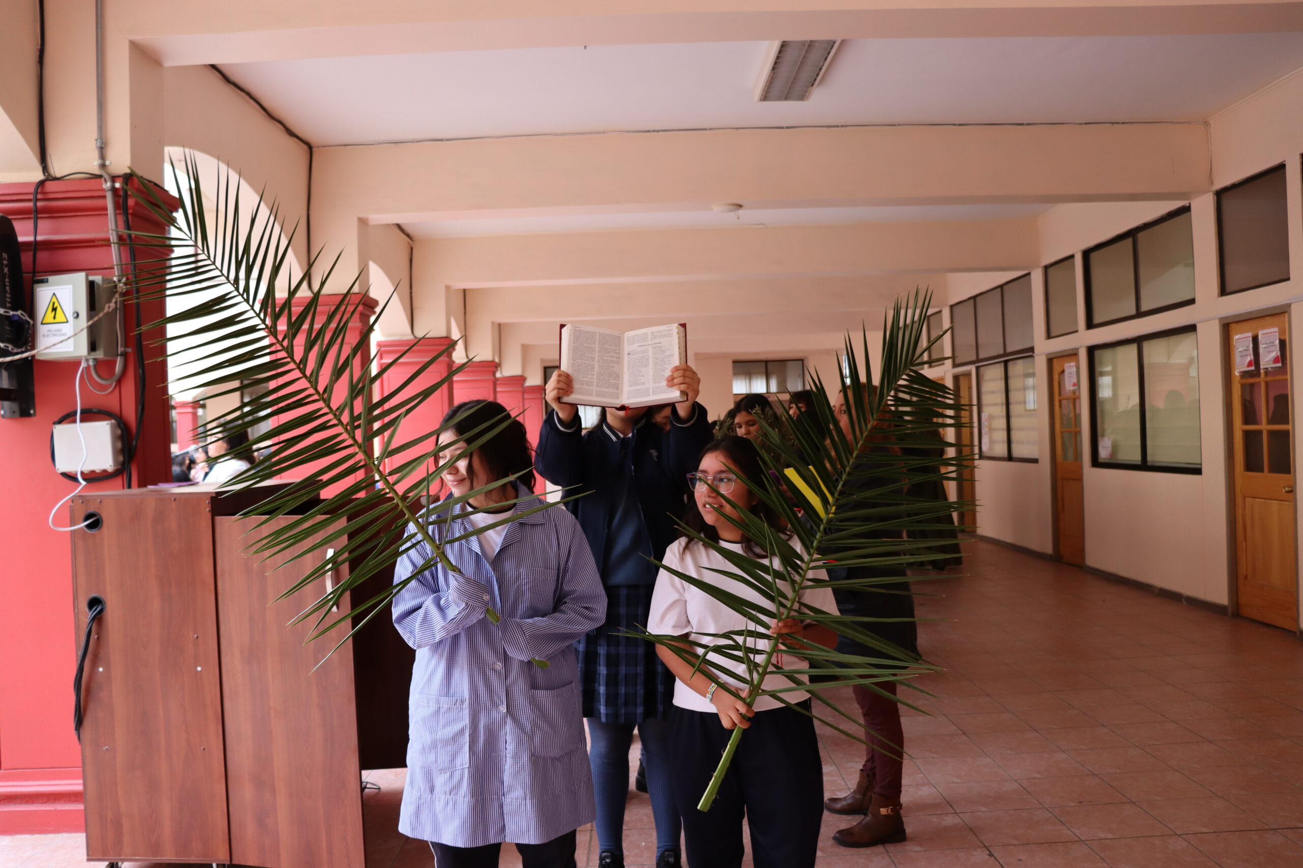 La tradicional bendición de ramos se llevó a cabo en el techado del colegio con la entusiasta participación de toda la comunidad educativa, quienes alegre y respetuosamente fueron parte de la celebración litúrgica preparada por el equipo pastoral.