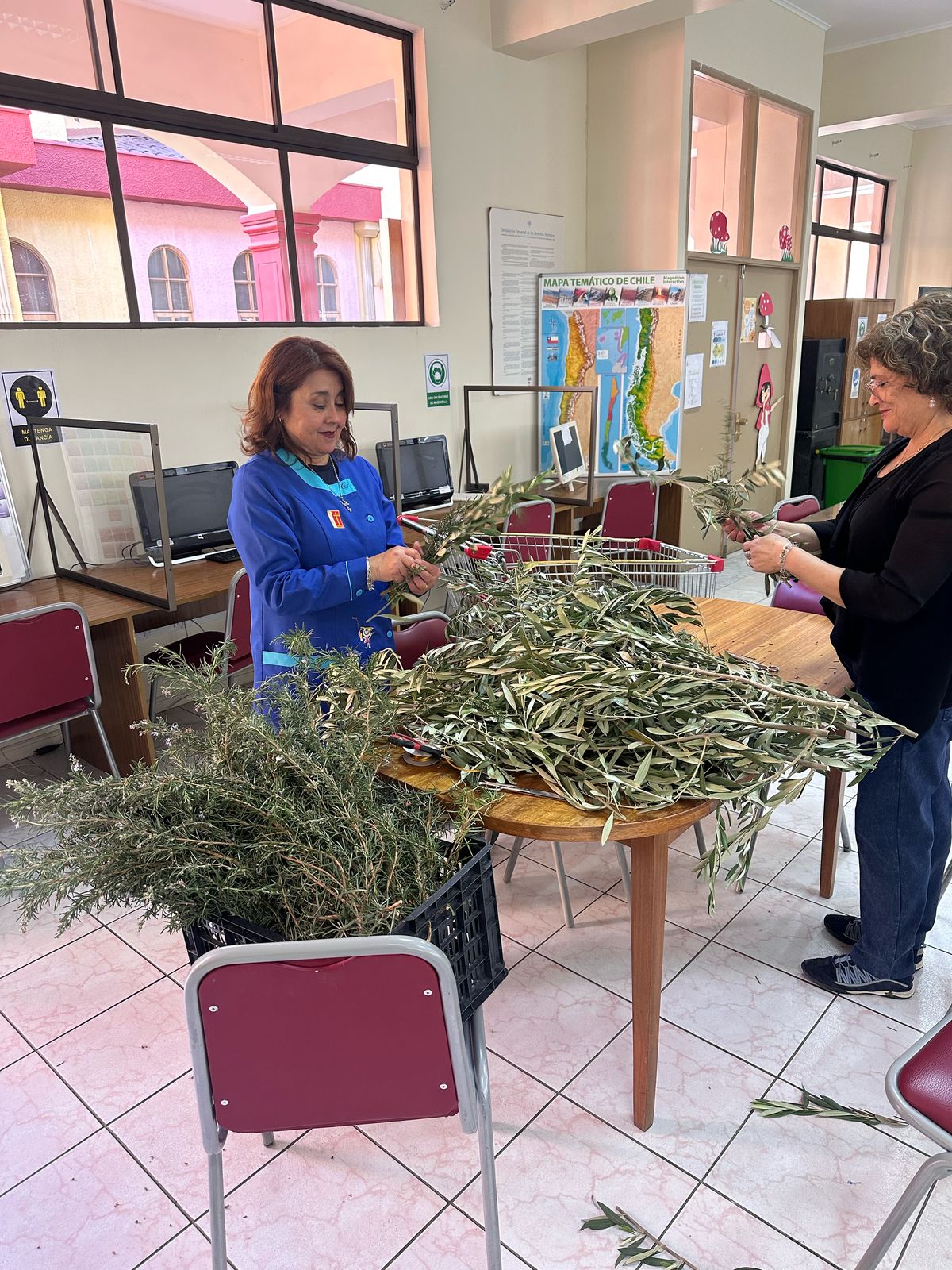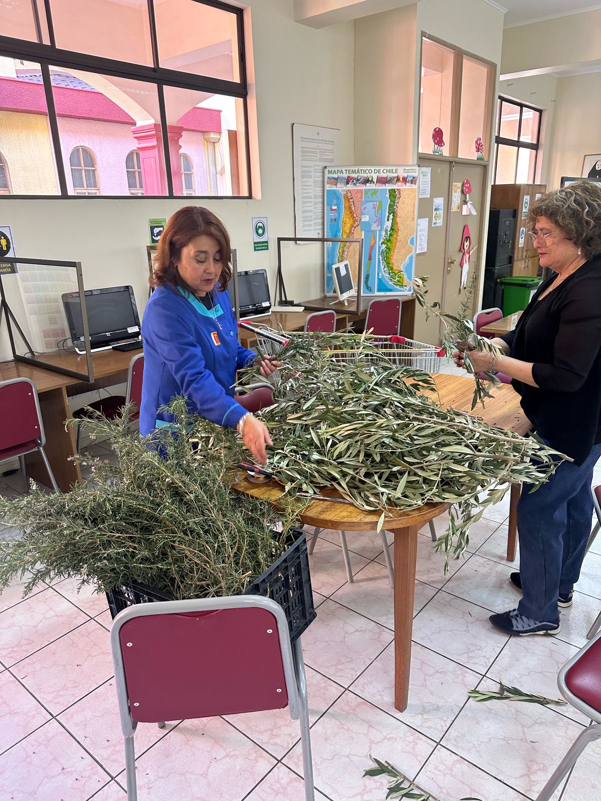 La bendición de estos ramitos estuvo a cargo de la Hermana Elvira Letelier, quien, tras la bendición, se invitó a cada profesor jefe, acompañado por una estudiante, para llevarse los ramitos a las salas de clase, donde quedaron como muestra de la bendición impartida a cada curso.