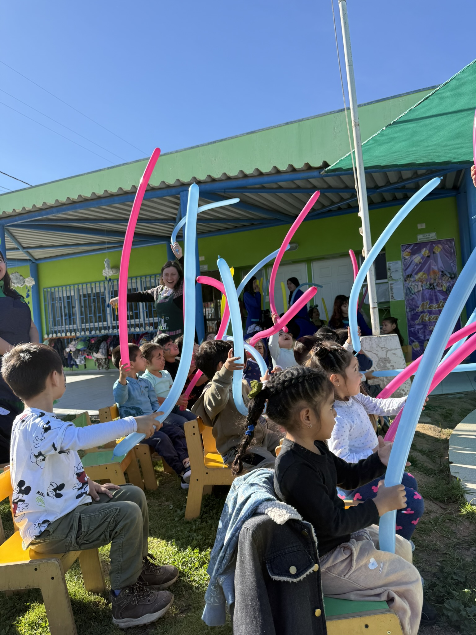 Como gesto de cariño, se entregaron globos de regalo a los niños y niñas del jardín, generando momentos de alegría y conexión entre ambas comunidades educativas.