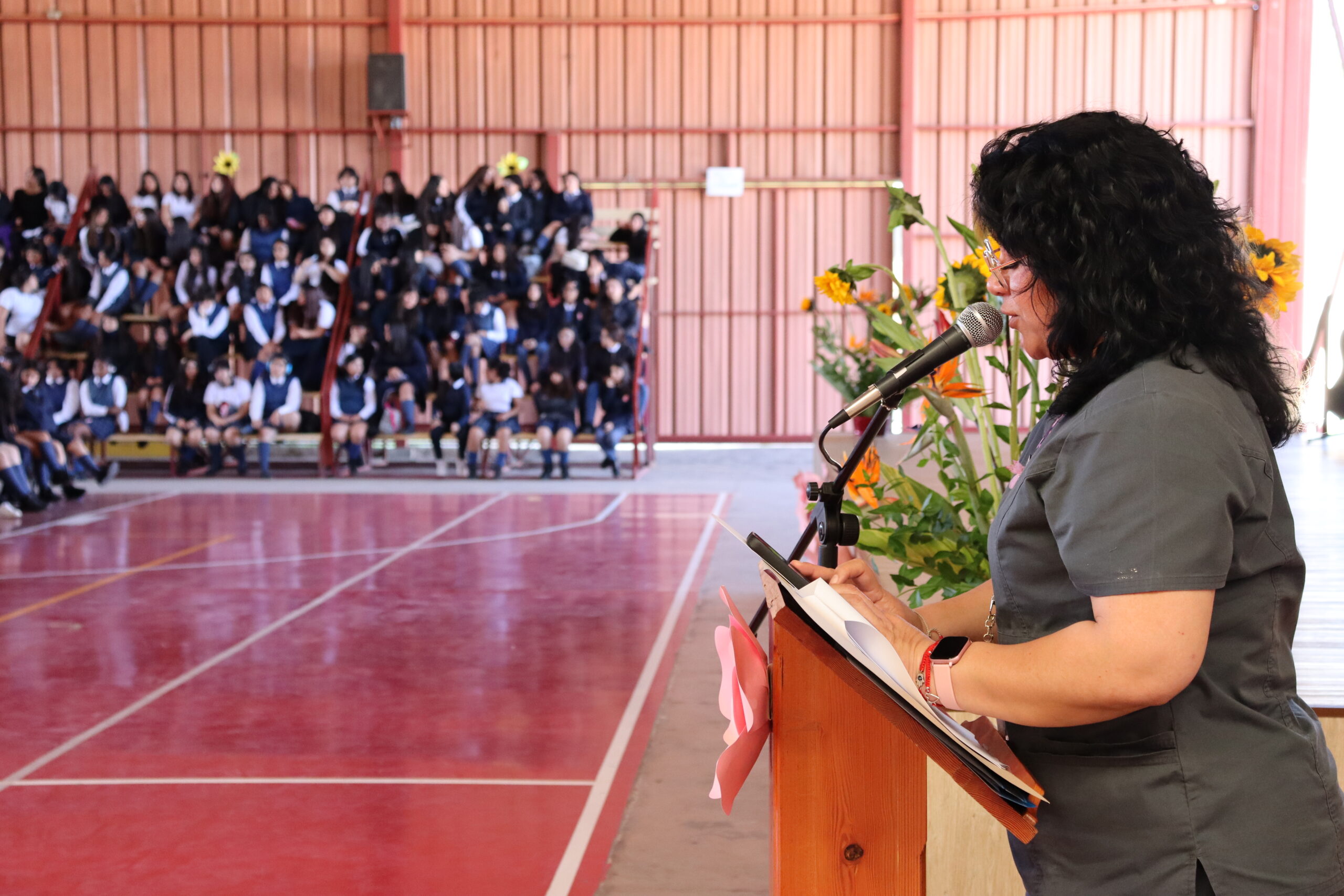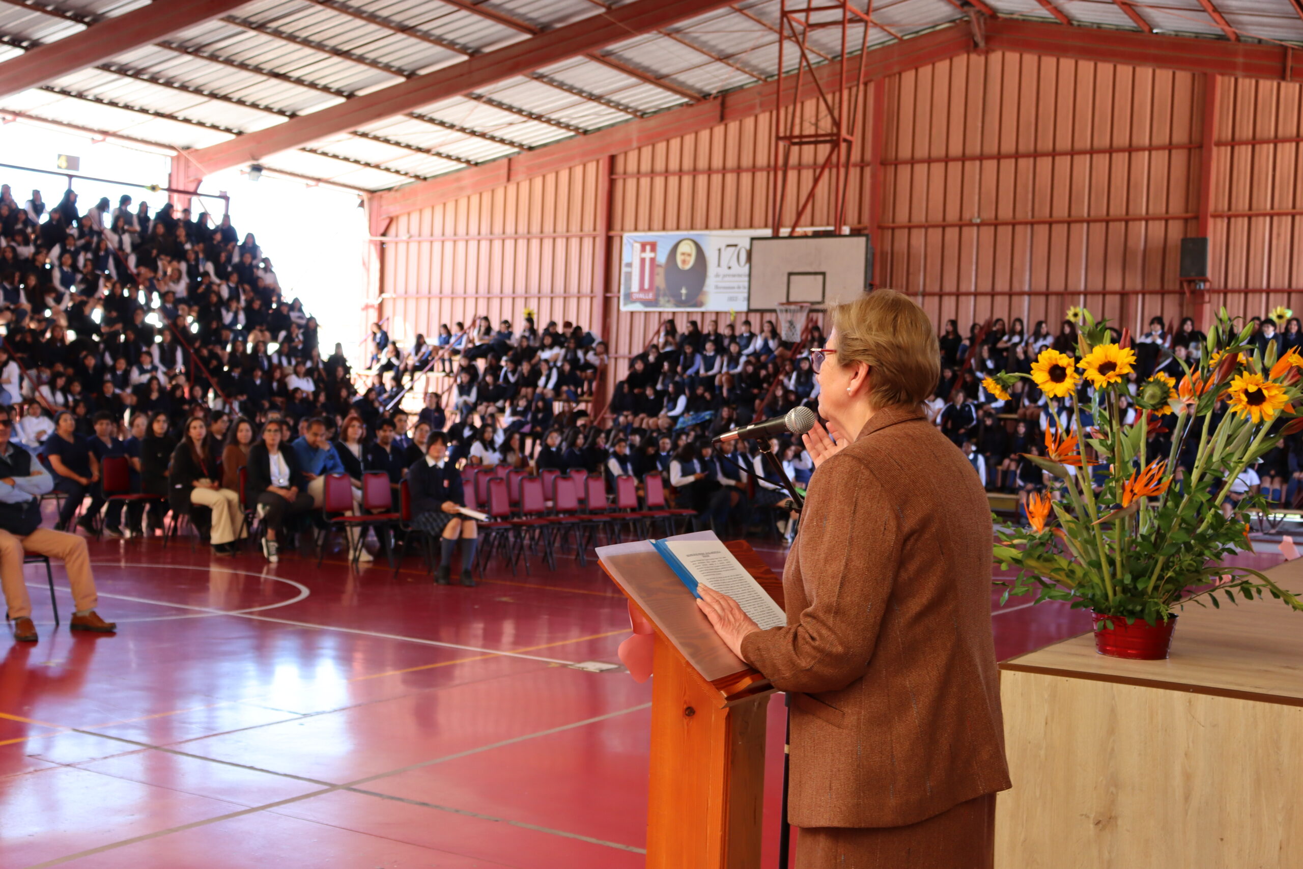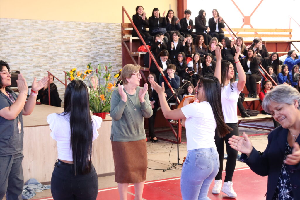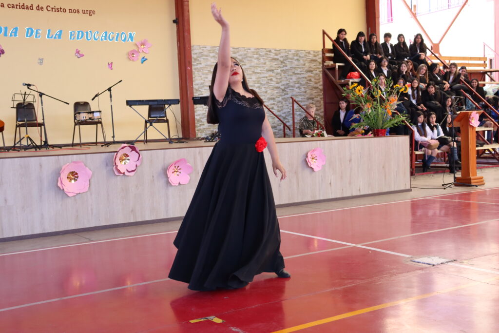 Las palabras de apertura estuvieron a cargo de la directora, quien agradeció profundamente la entrega diaria de cada integrante de la comunidad educativa. A su mensaje se sumaron las emotivas intervenciones de la presidenta del Centro de Estudiantes y de la presidenta del Centro de Padres, Sra. Vanessa Torrejón, quien expresó su gratitud en nombre de todas las familias por el trabajo, la paciencia y el cariño que reciben sus hijas.