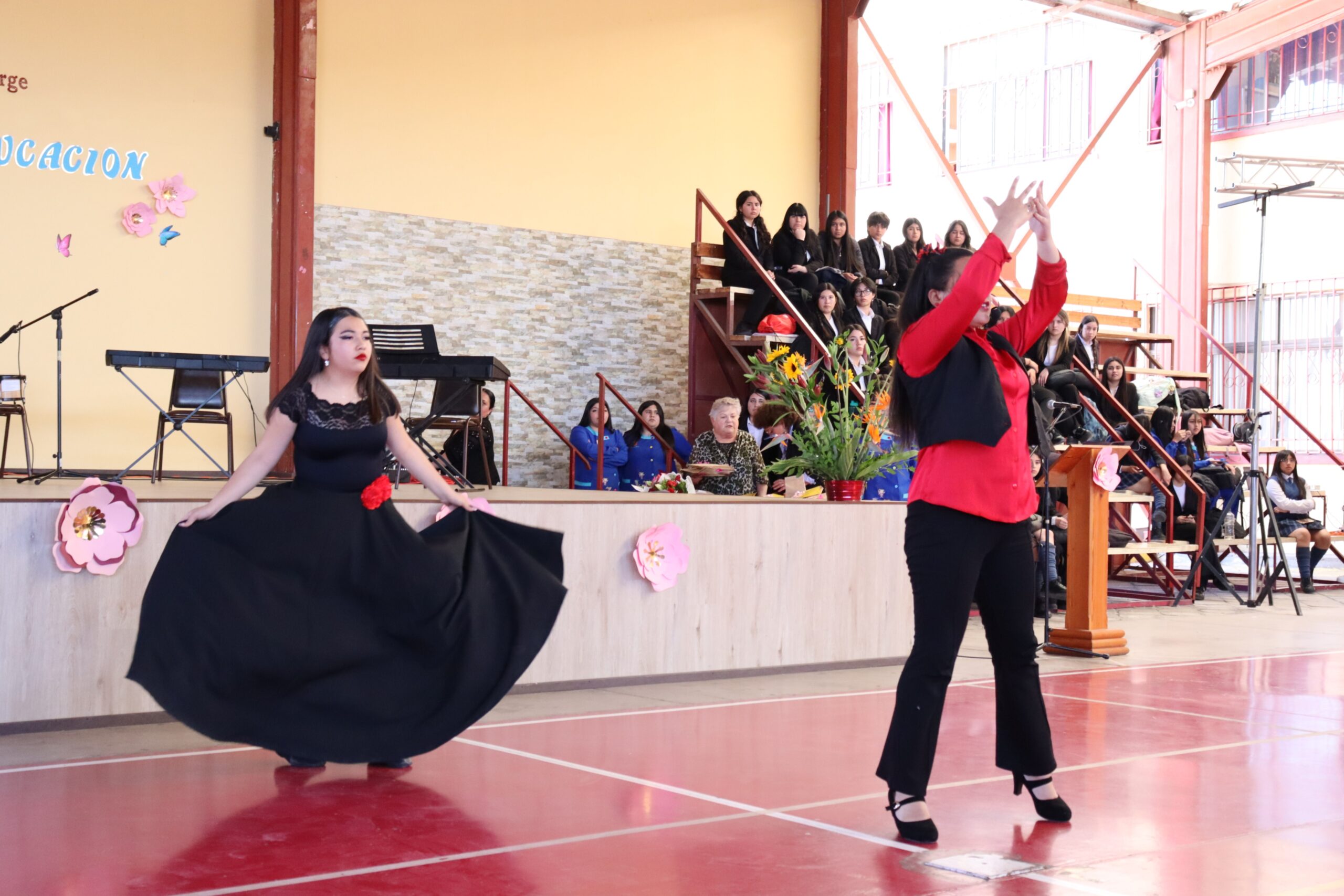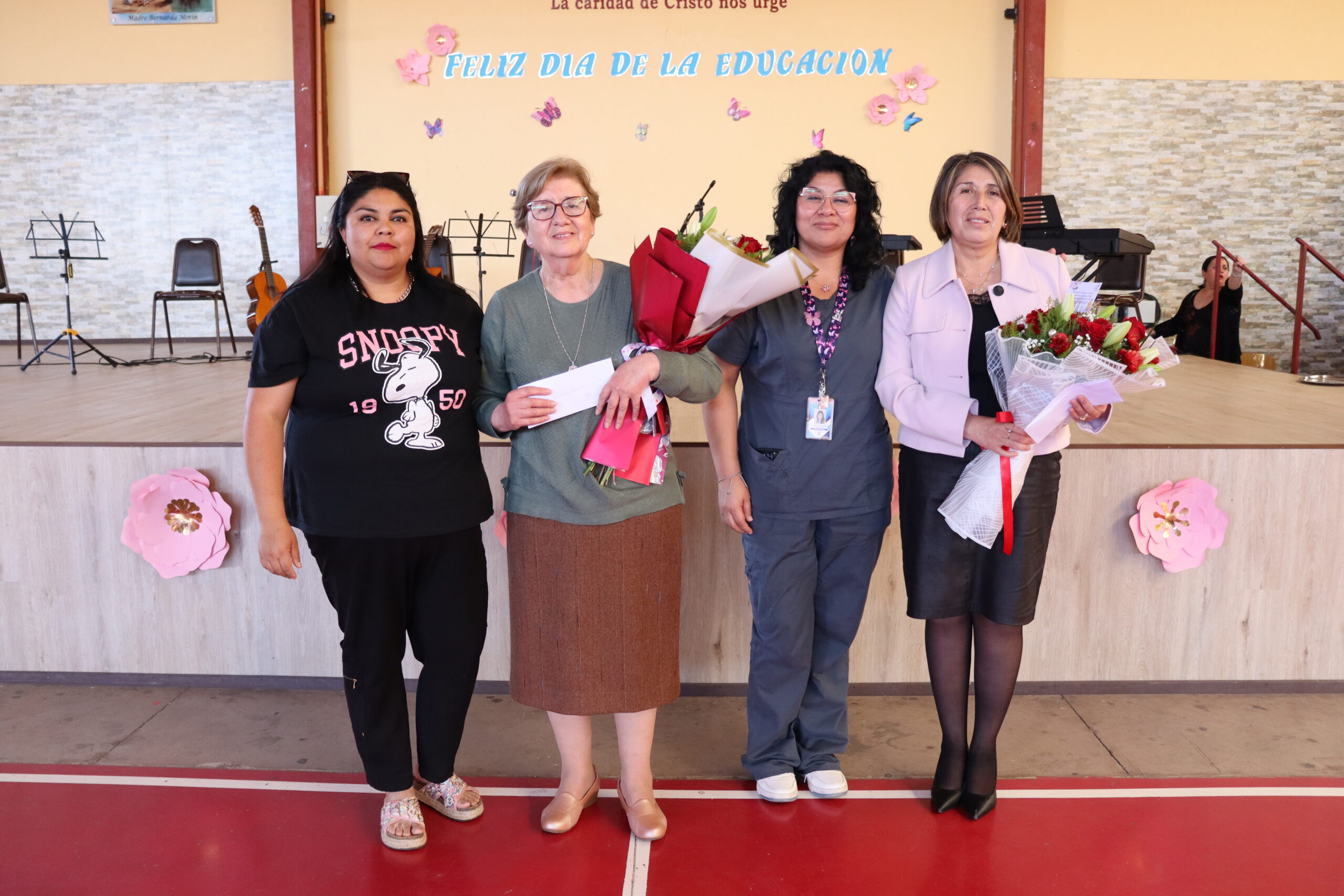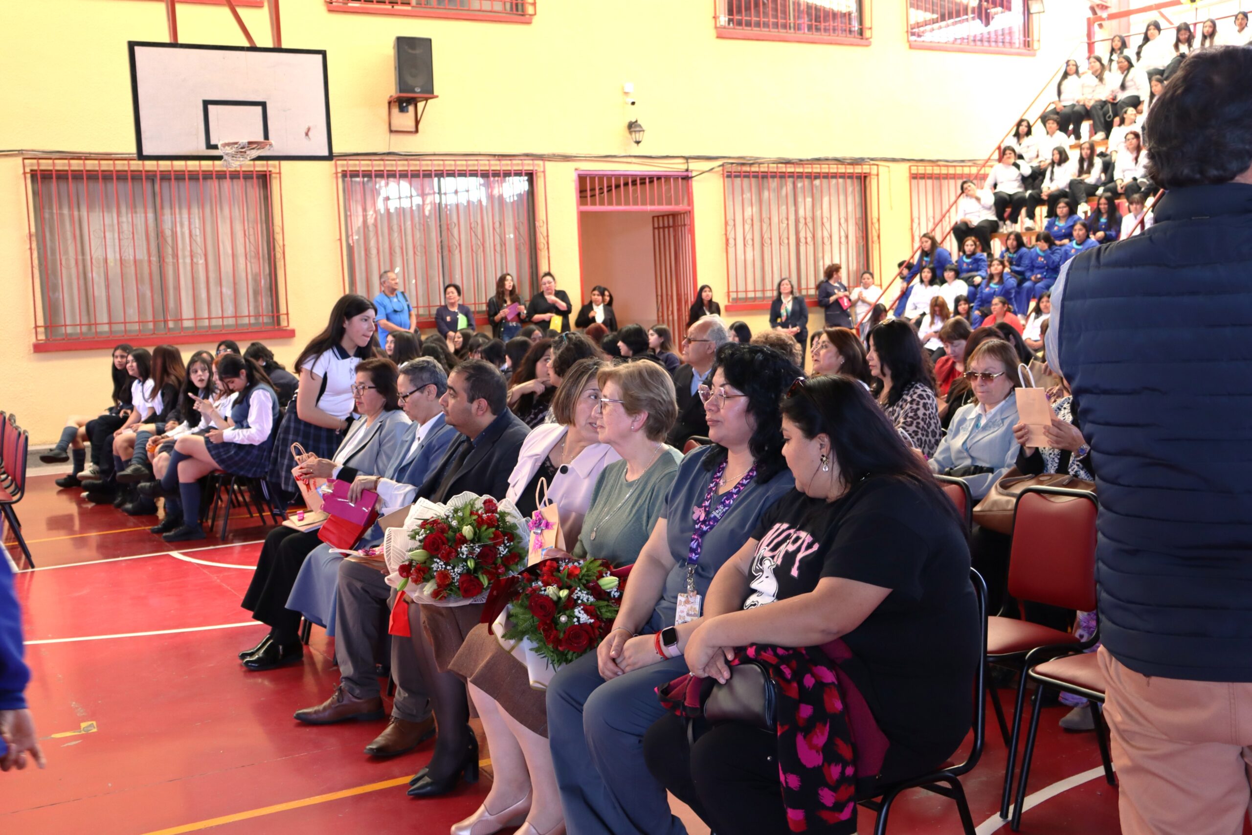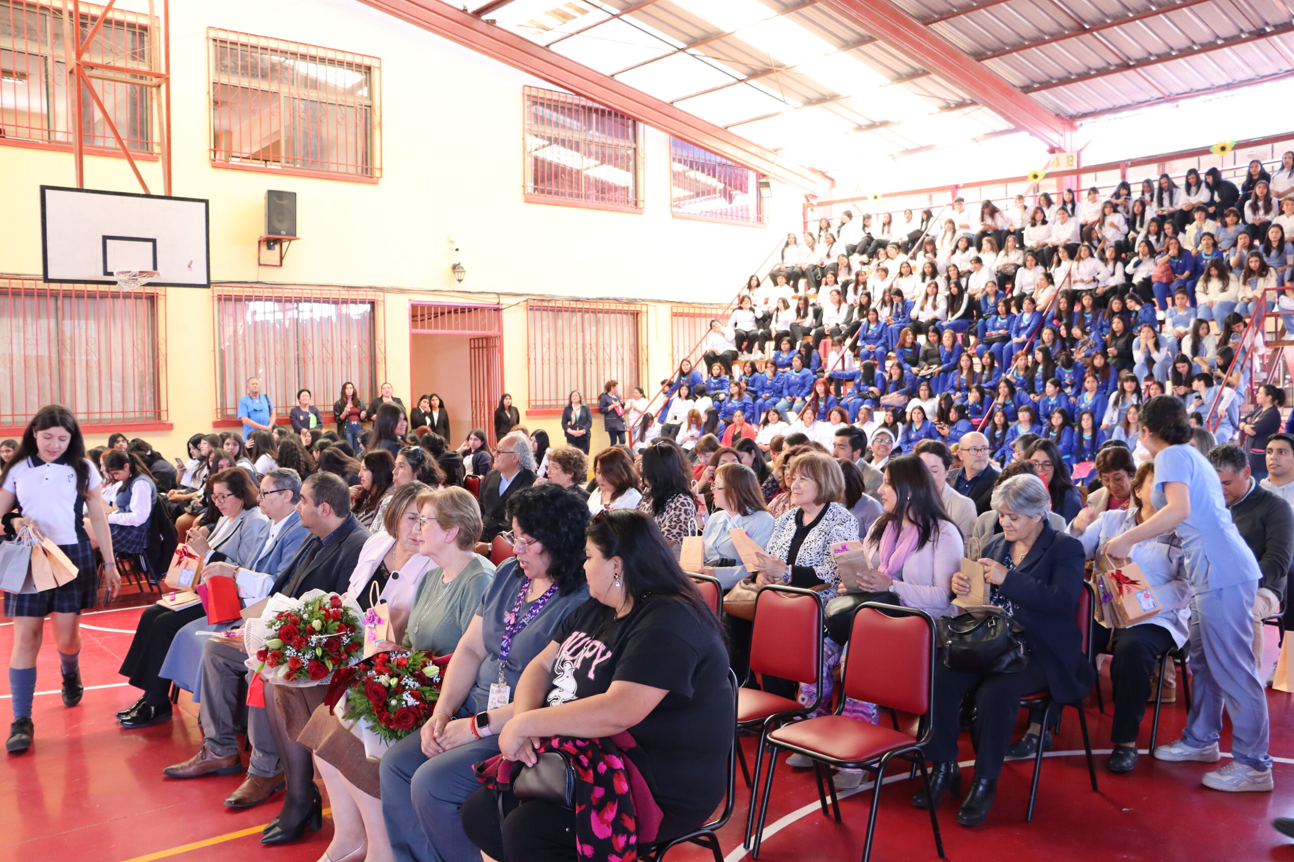La ceremonia fue conducida por estudiantes de la Especialidad de Administración y organizada por el Centro de Estudiantes, quienes lideraron con entusiasmo cada momento de la velada. Durante el acto, se entregaron obsequios a todos los funcionarios presentes, y el Centro de Padres ofreció ramos de flores a nuestra directora, Sra. María Cecilia Martínez Salas, y a la administradora, Sra. Miriam Ossandón, como muestra de cariño y reconocimiento.