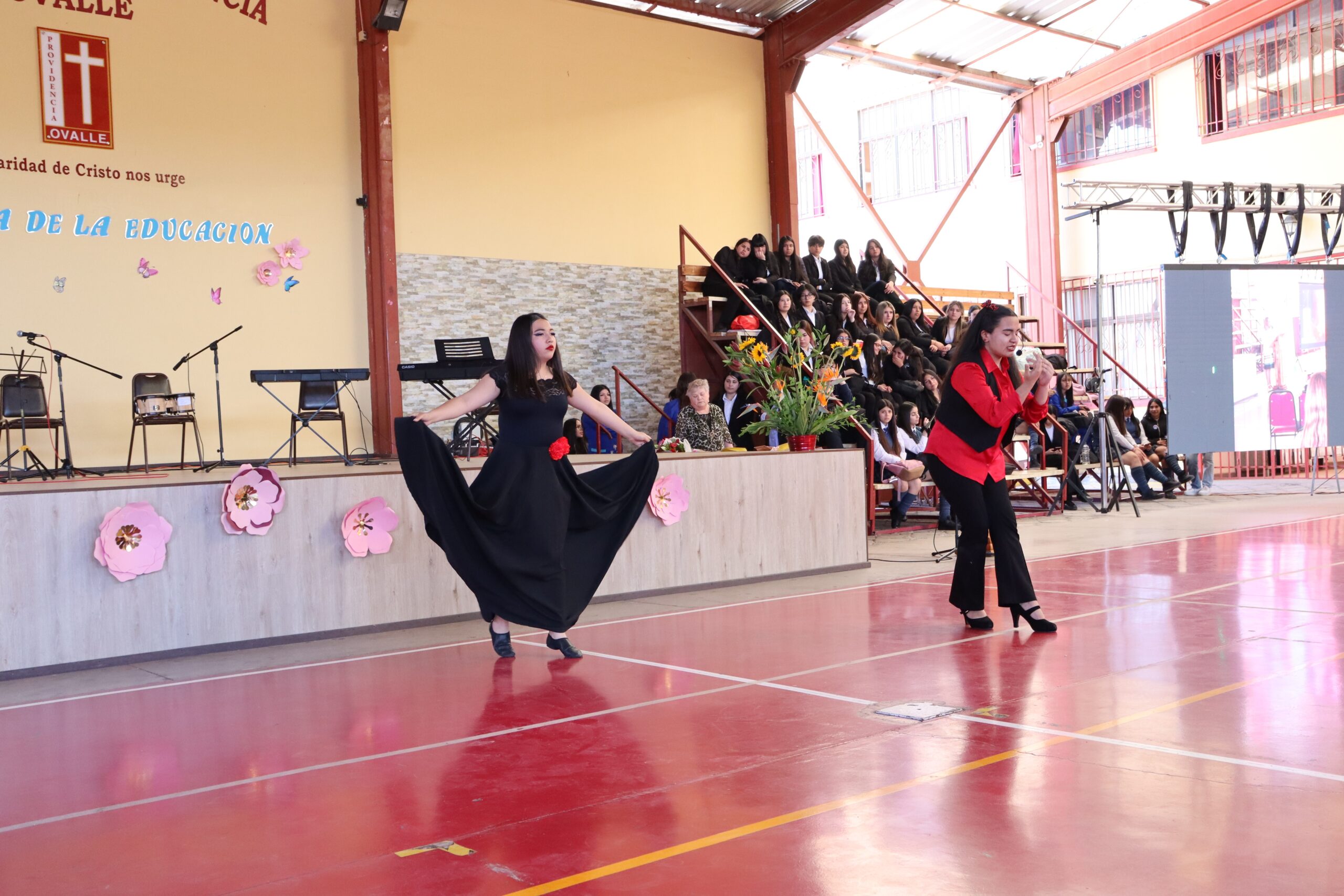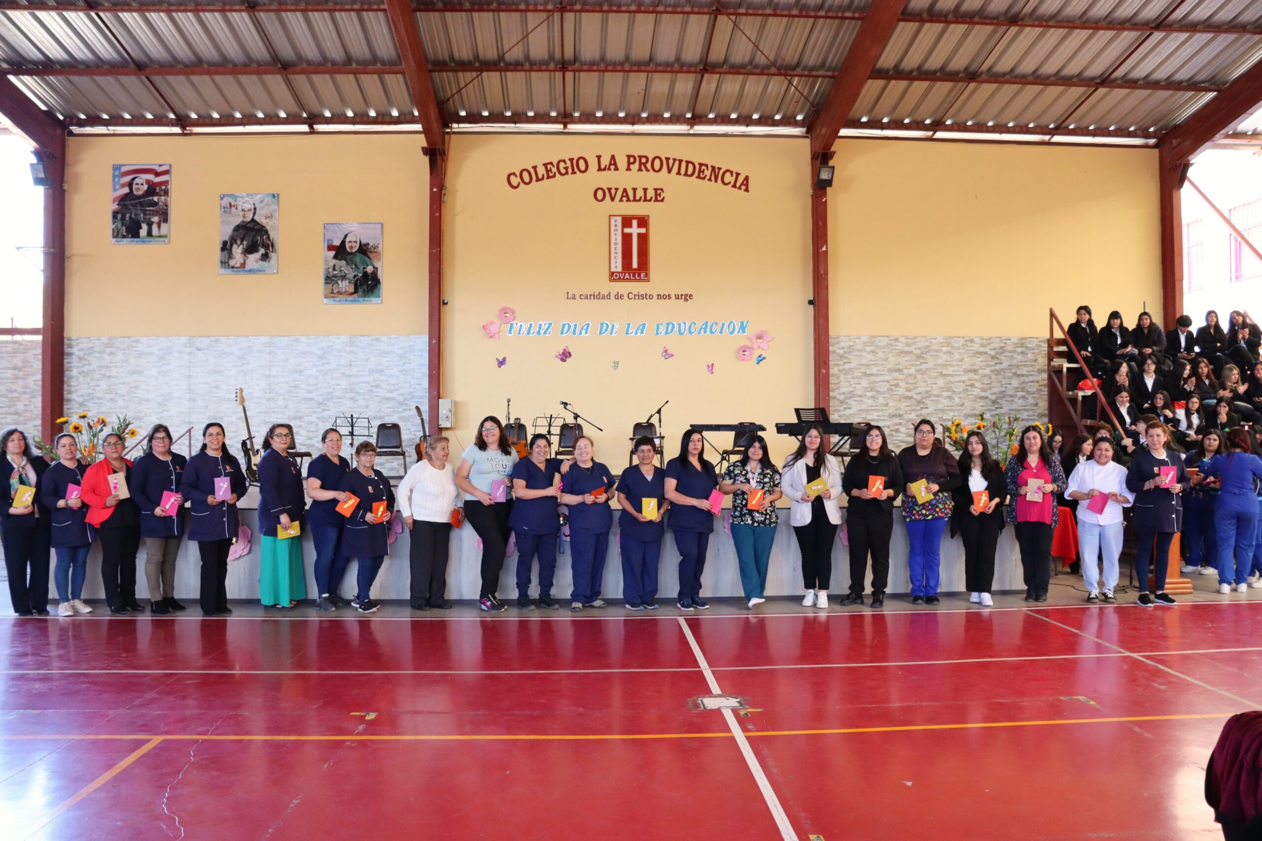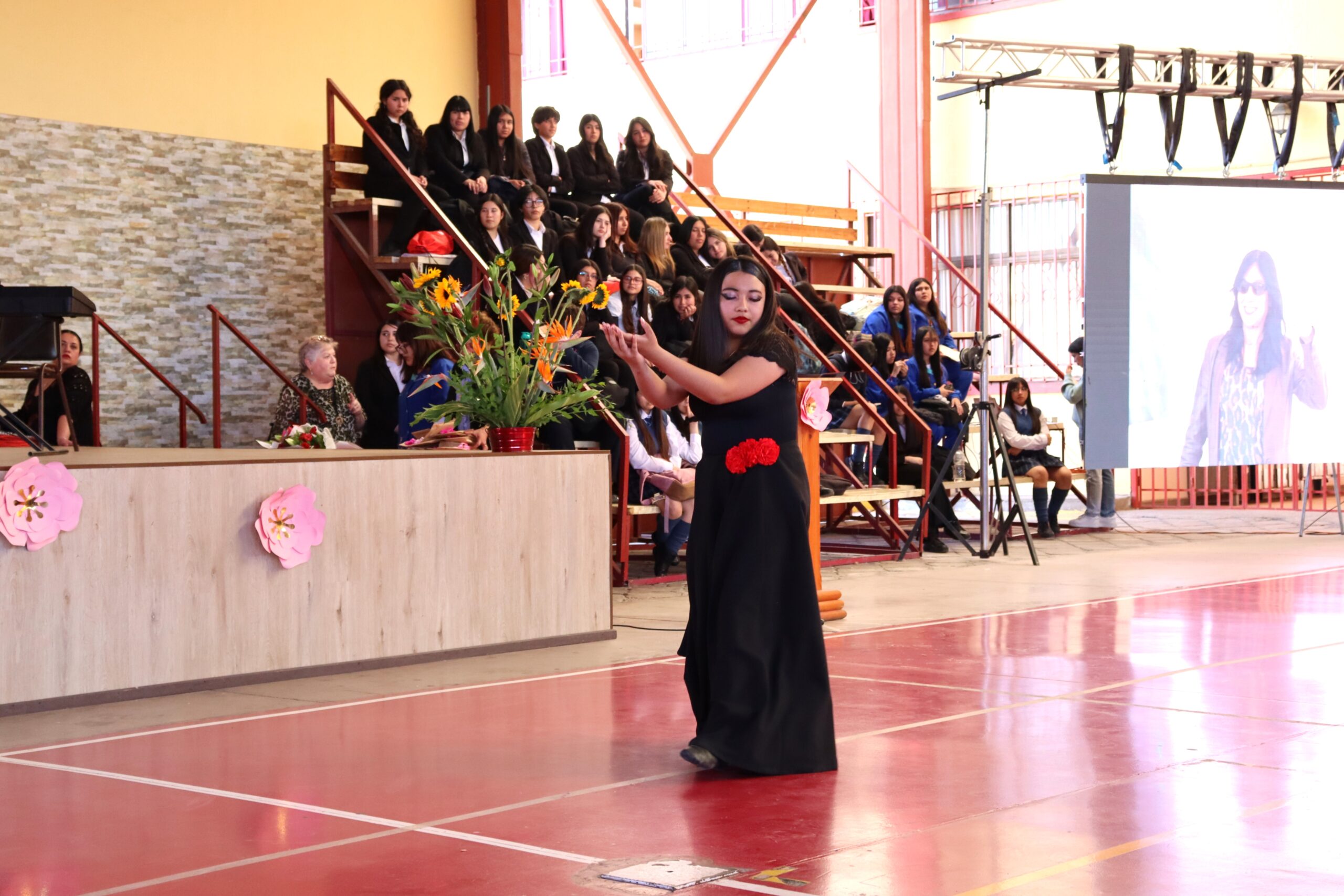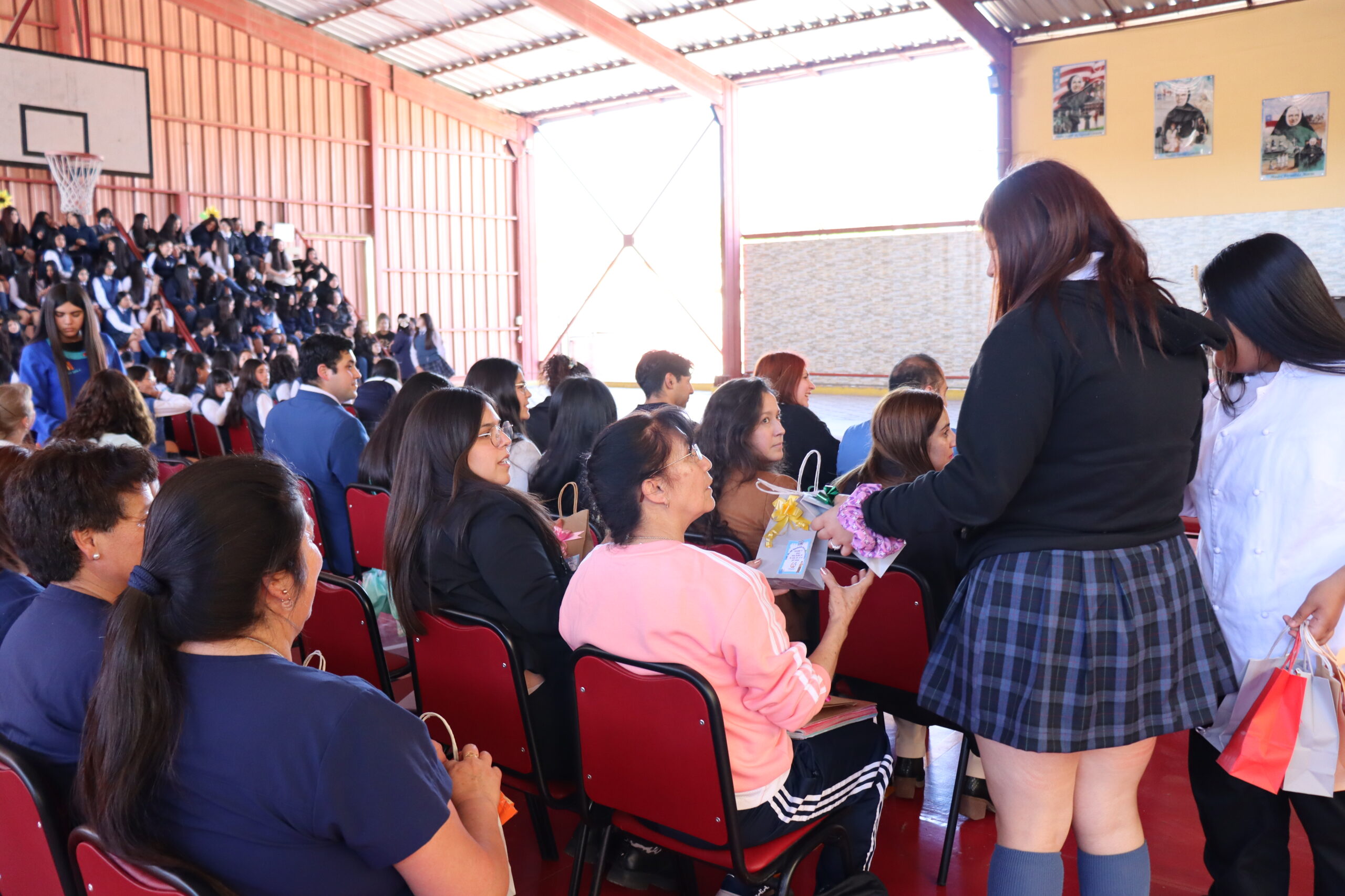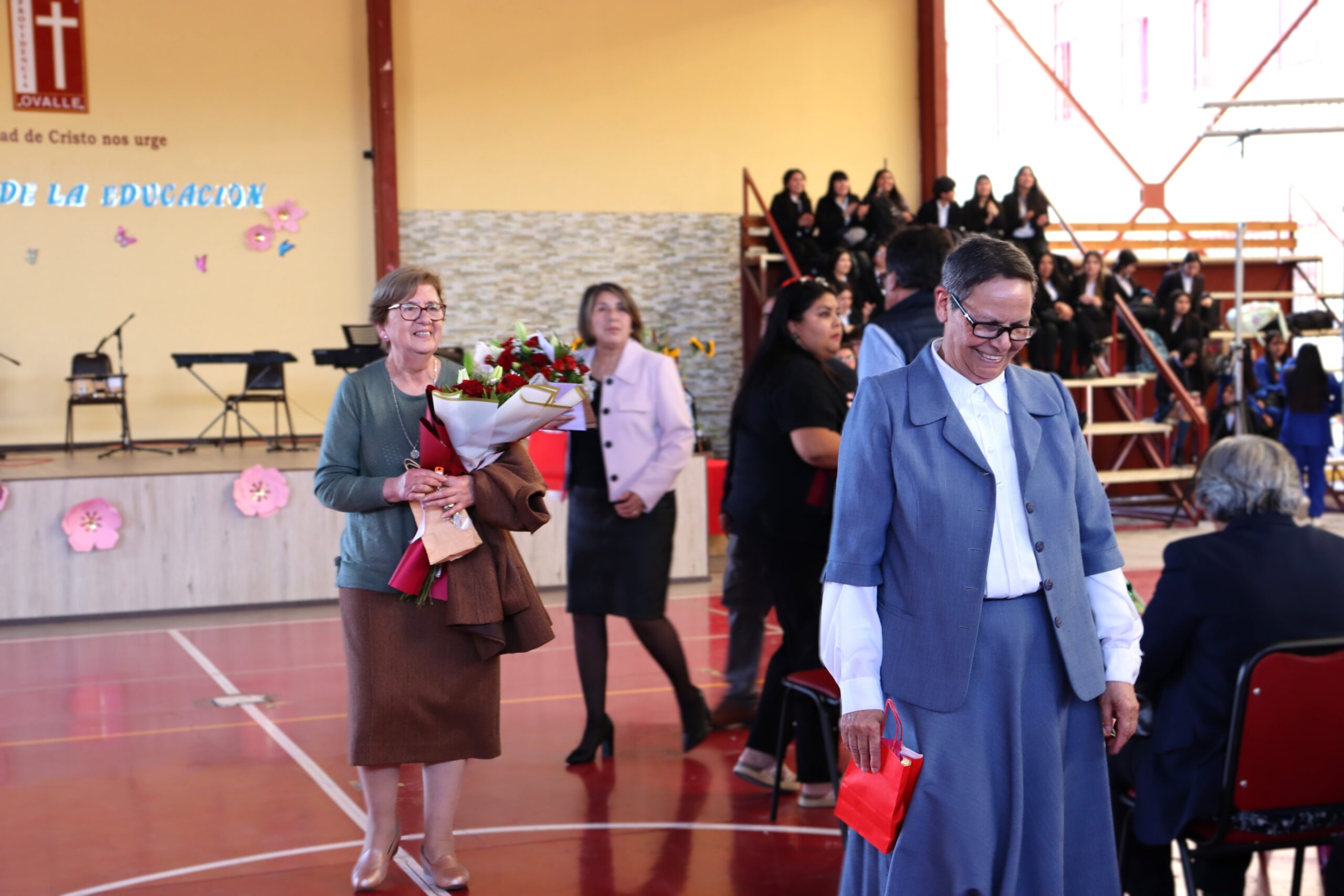 La ceremonia fue conducida por estudiantes de la Especialidad de Administración y organizada por el Centro de Estudiantes, quienes lideraron con entusiasmo cada momento de la velada. Durante el acto, se entregaron obsequios a todos los funcionarios presentes, y el Centro de Padres ofreció ramos de flores a nuestra directora, Sra. María Cecilia Martínez Salas, y a la administradora, Sra. Miriam Ossandón, como muestra de cariño y reconocimiento.