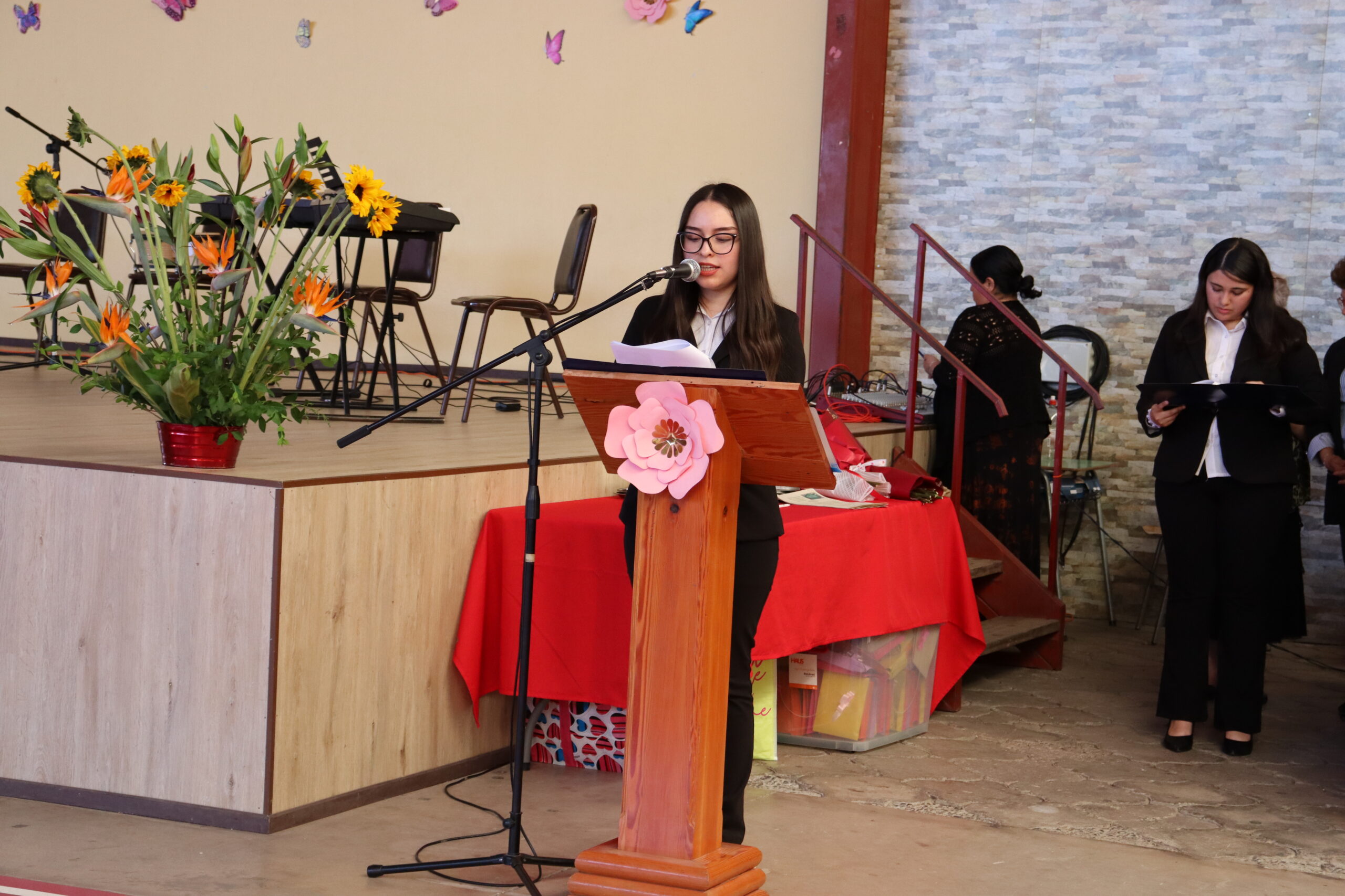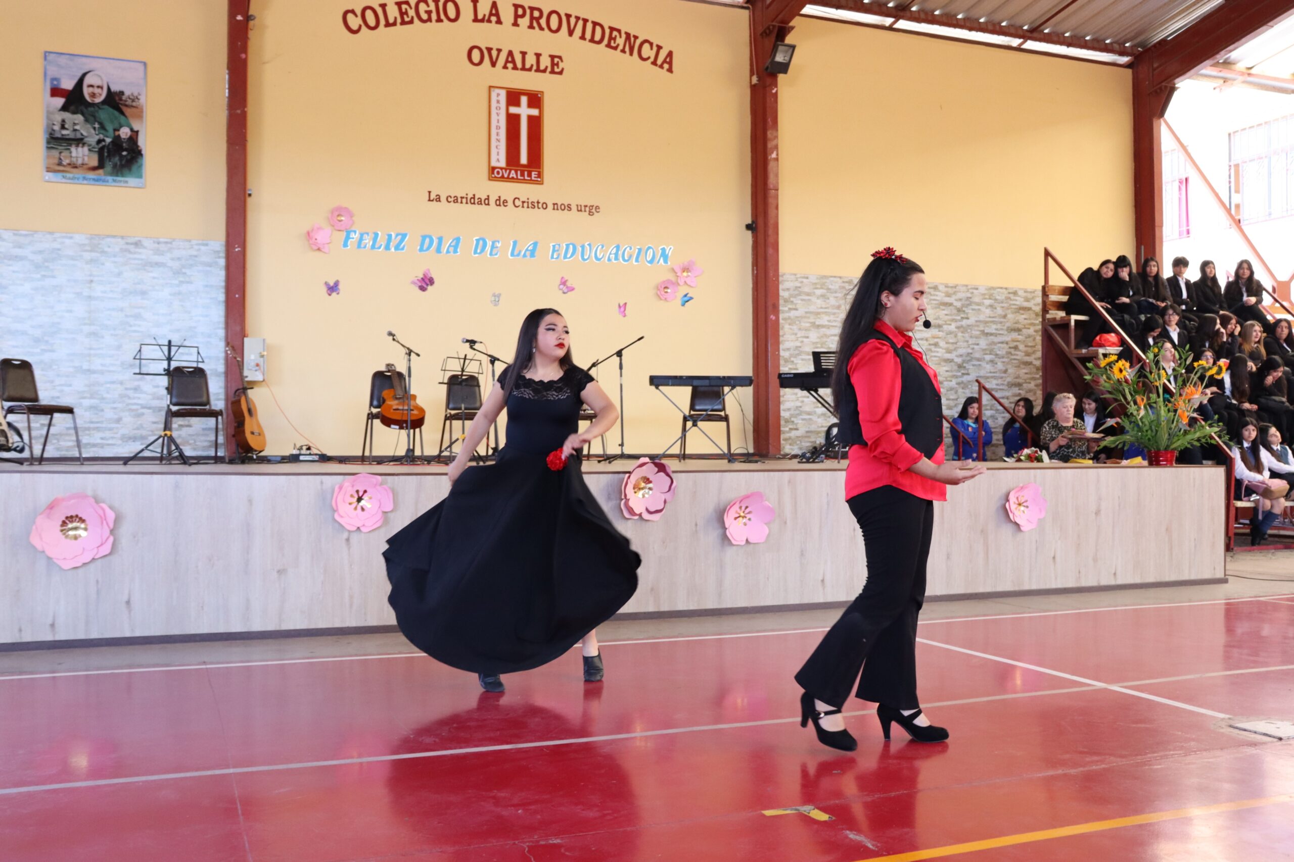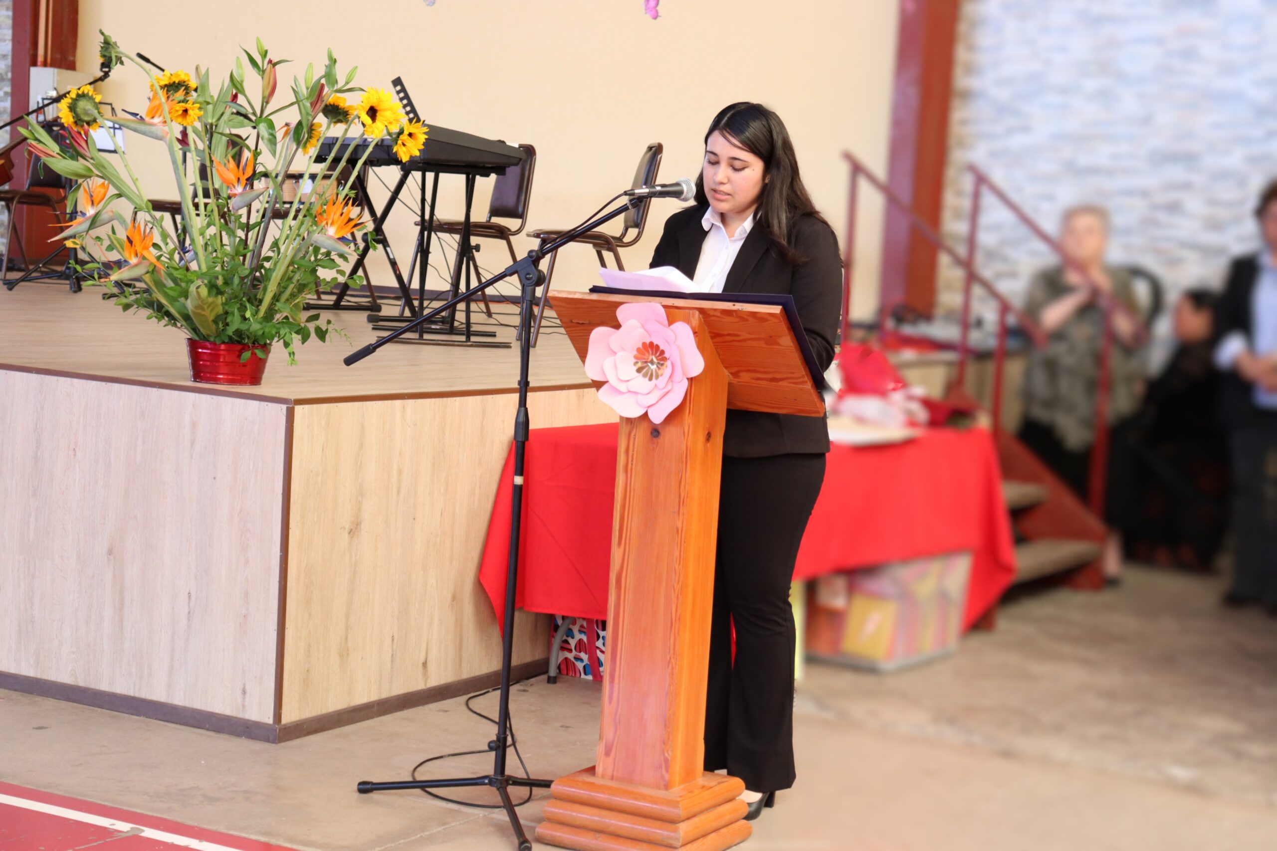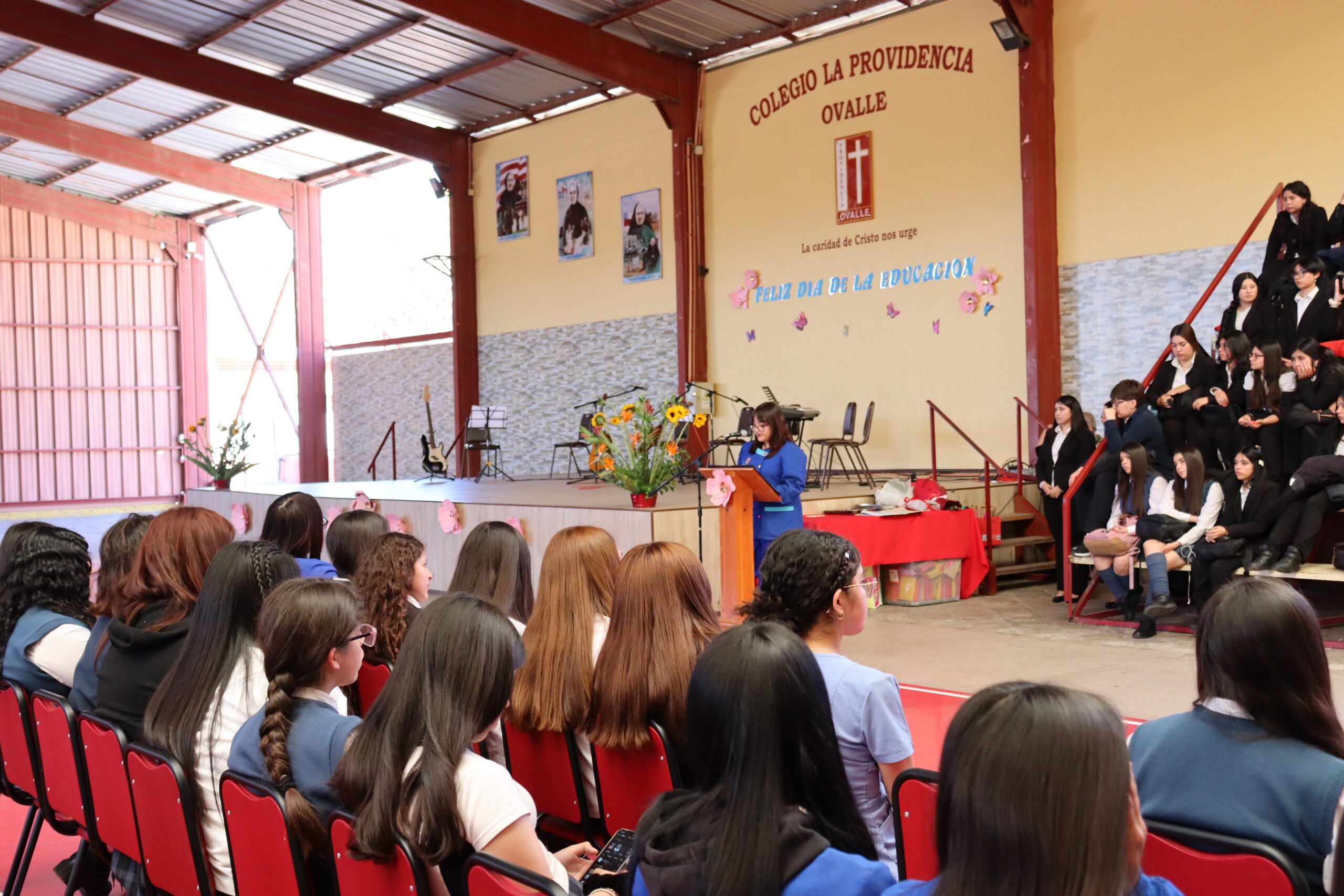 La ceremonia fue conducida por estudiantes de la Especialidad de Administración y organizada por el Centro de Estudiantes, quienes lideraron con entusiasmo cada momento de la velada. Durante el acto, se entregaron obsequios a todos los funcionarios presentes, y el Centro de Padres ofreció ramos de flores a nuestra directora, Sra. María Cecilia Martínez Salas, y a la administradora, Sra. Miriam Ossandón, como muestra de cariño y reconocimiento.