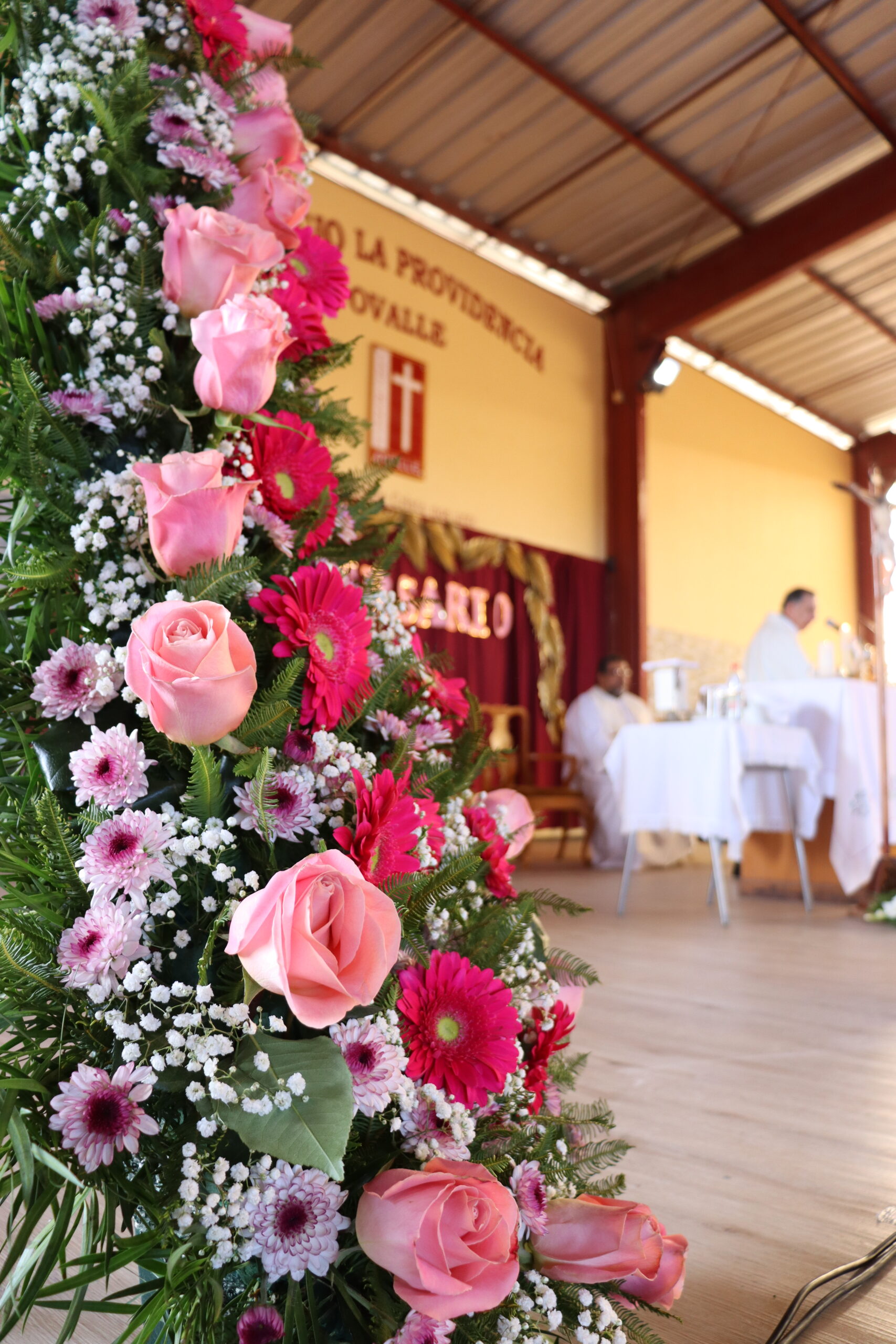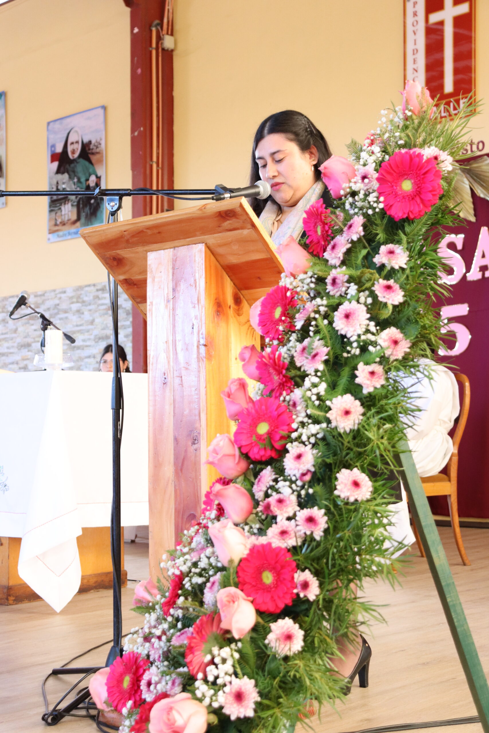Uno de los momentos más significativos fue la procesión de las ofrendas, realizada por las estudiantes, quienes presentaron la luz de Cristo como símbolo de guía en nuestras vidas cristianas, un arreglo floral en señal de alegría y gratitud por estos 119 años, alimentos no perecibles como gesto de solidaridad hacia las familias más necesitadas, y el pan y el vino, frutos de nuestra tierra y del trabajo de los hombres.