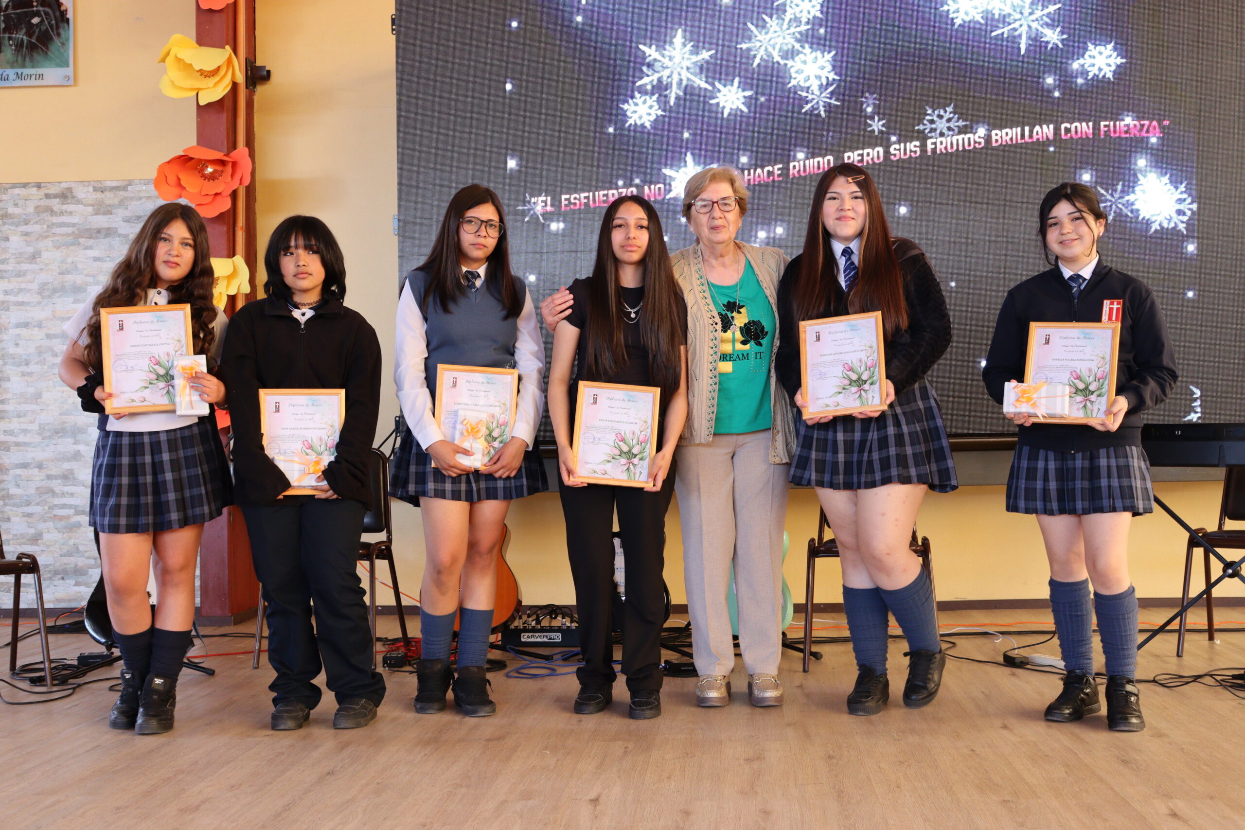 El acto también ofreció espacio para muestras artísticas: la academia de danza, coro, banda y el taller de cuerdas se presentaron en escena, mientras que la academia de inglés interpretó la canción “Snow Man” de SIA. Asimismo, se entregaron las certificaciones internacionales TEFL Junior, aplicadas con apoyo del equipo de Seminarium, y se reconoció la participación de estudiantes de las especialidades de Atención de Párvulo y Atención de Enfermería en el Simposio de Infancia y Adolescencia 2025, distinción entregada por el psicólogo Luis Tello Julio, organizador del encuentro.