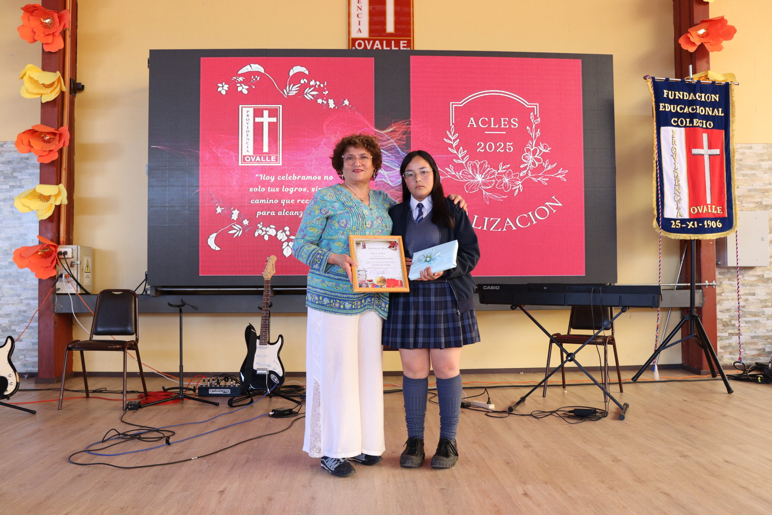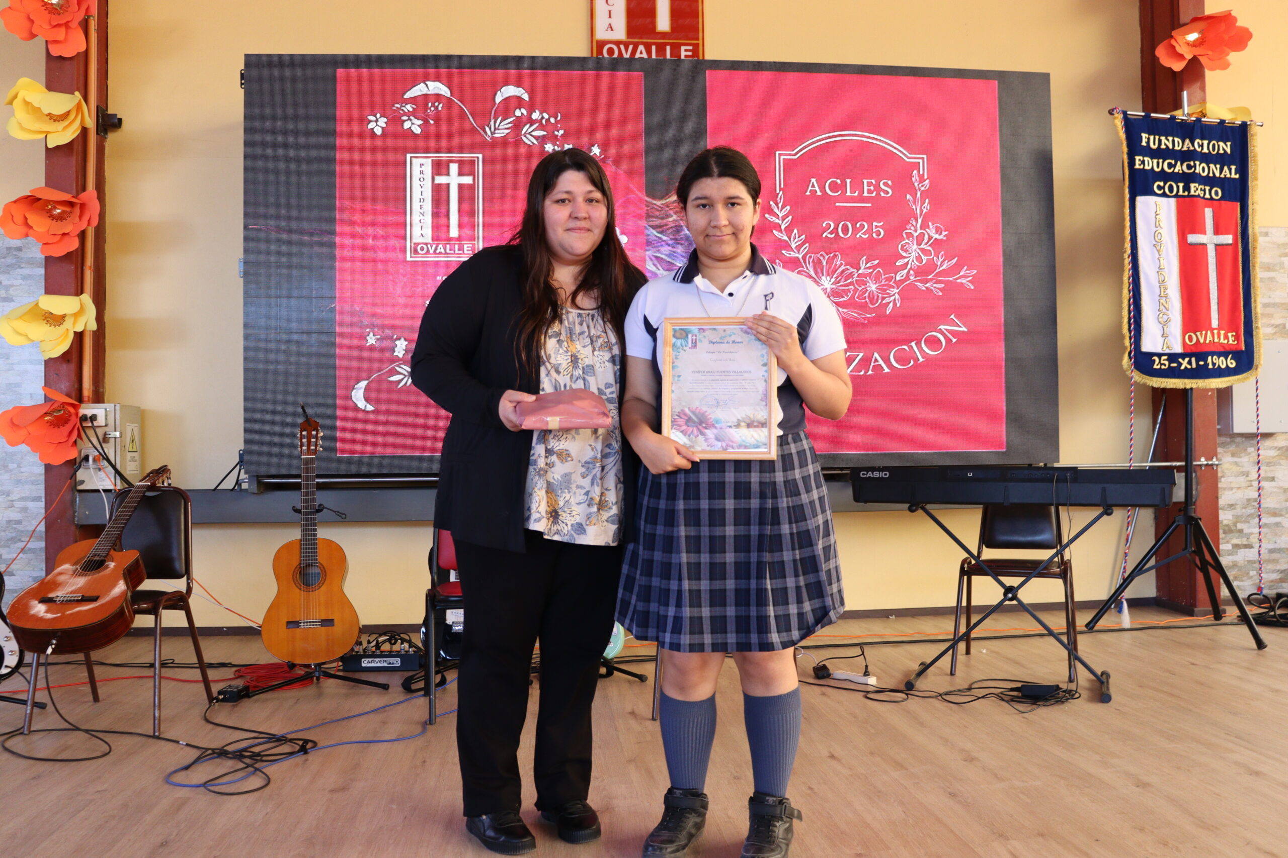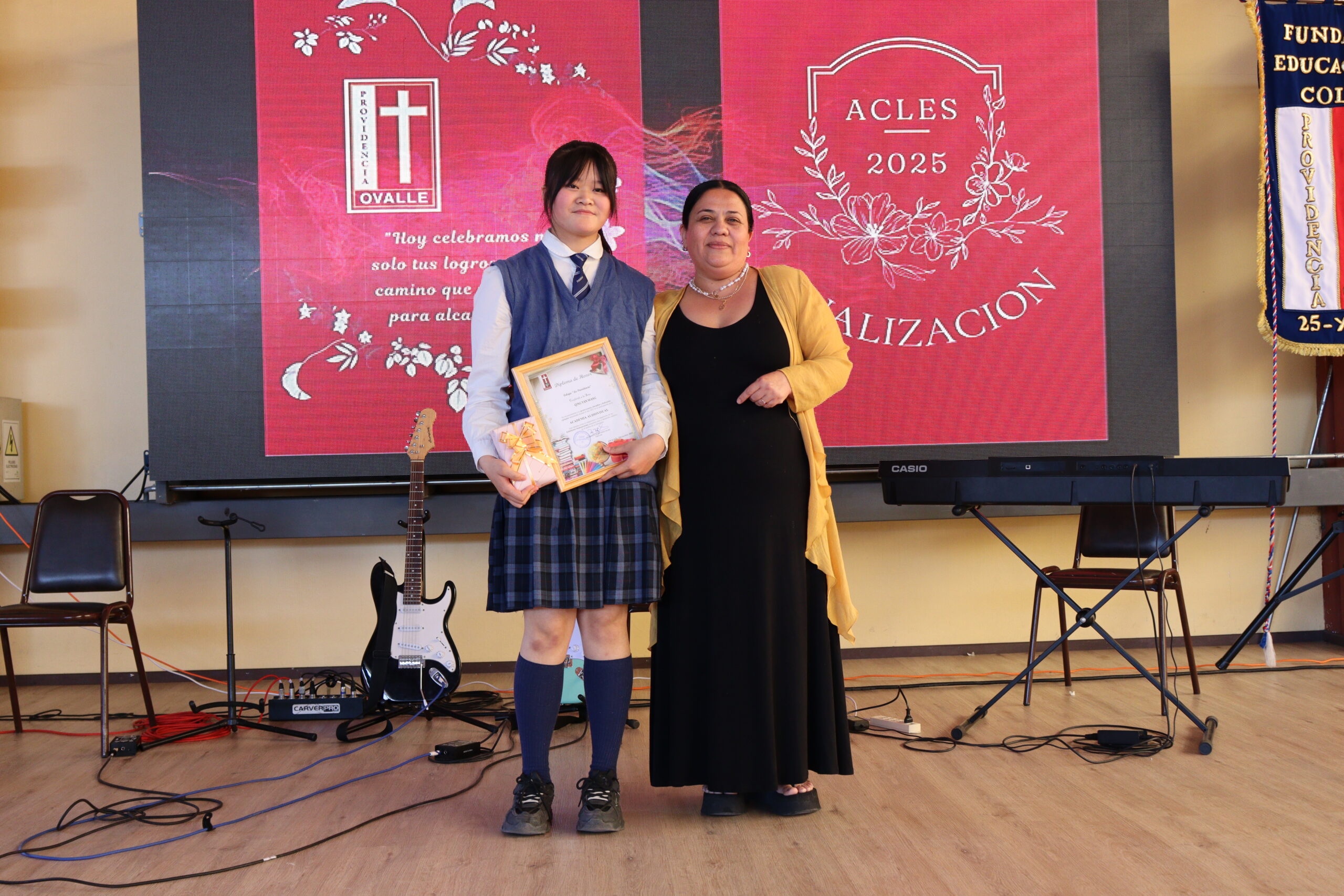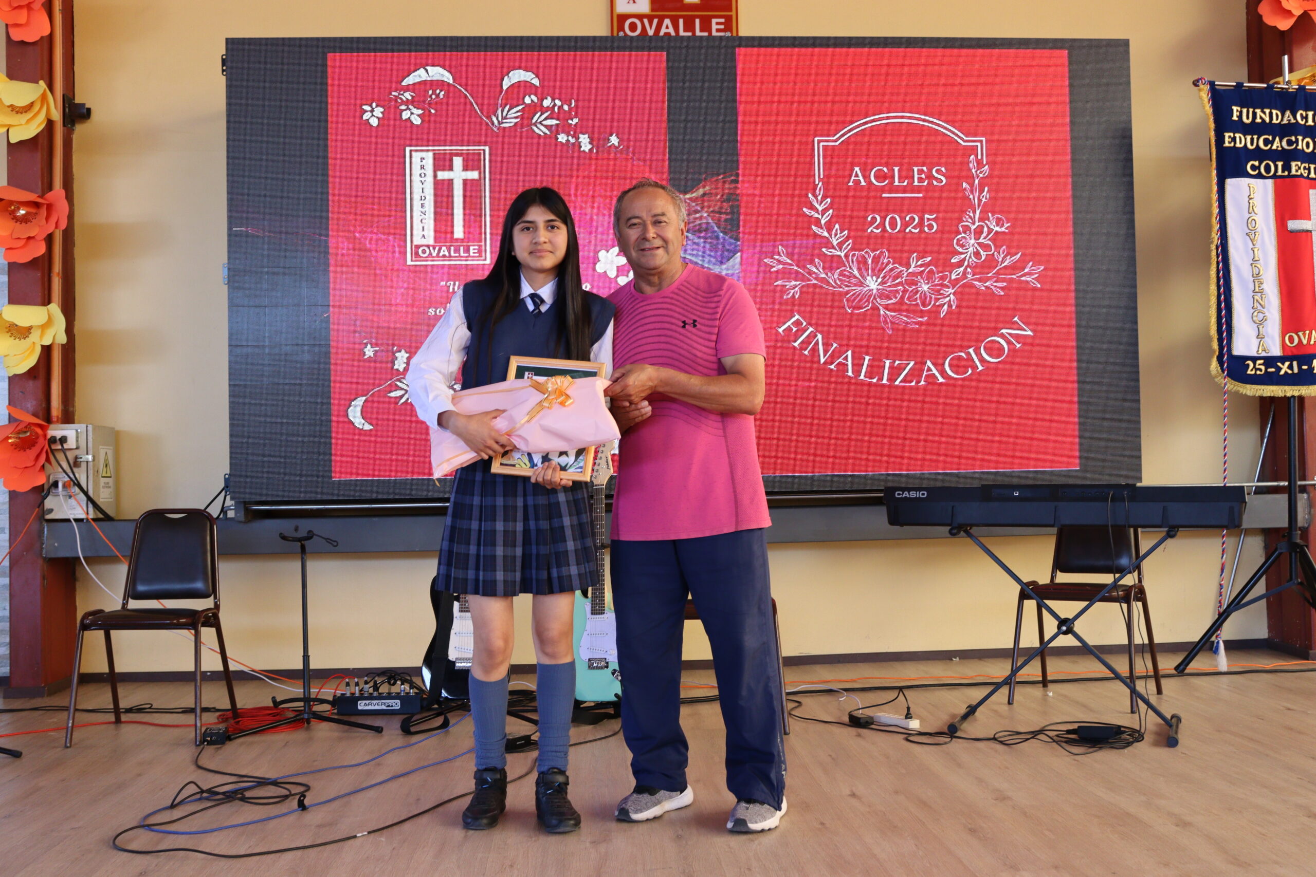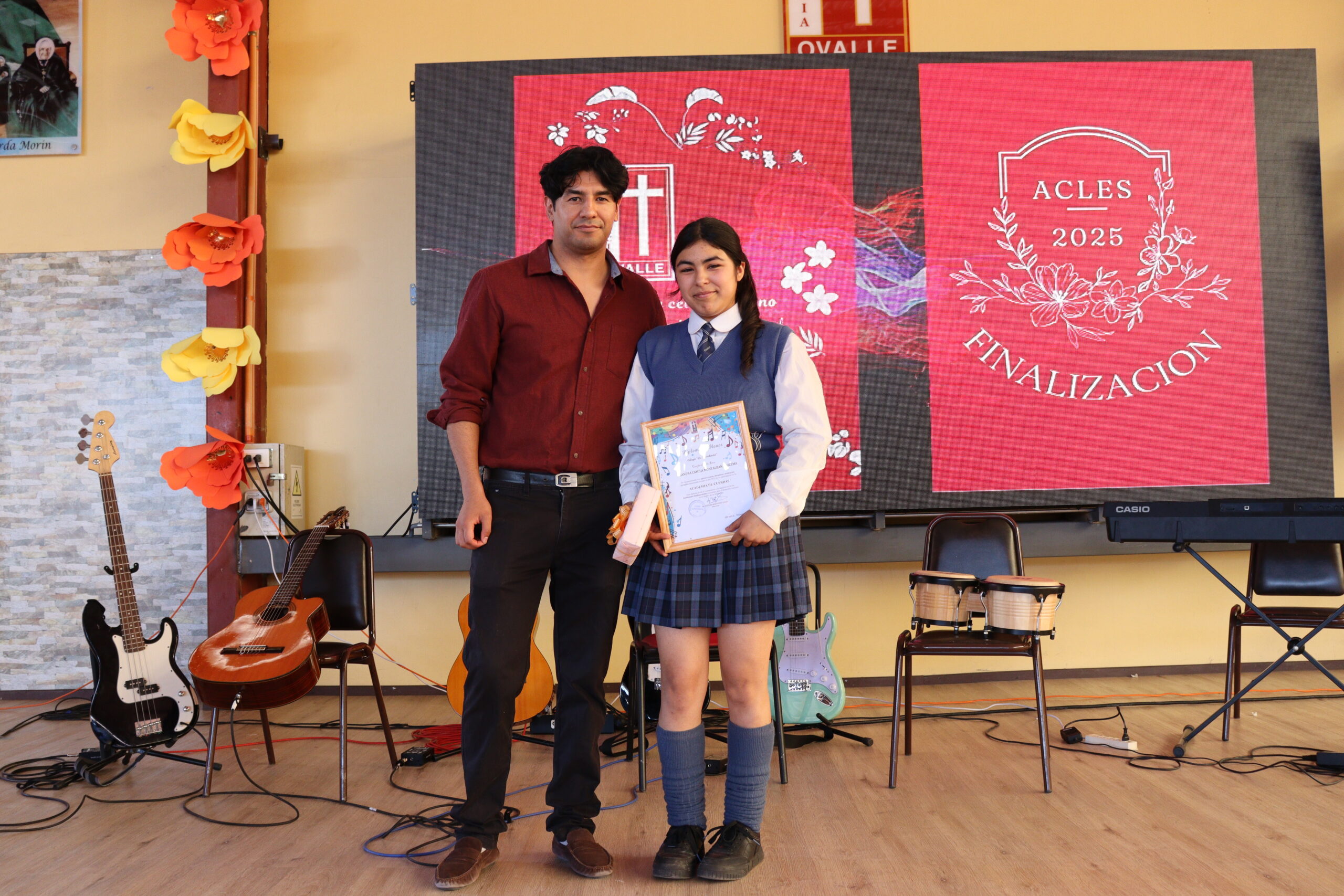 Las ACLES, consideradas el corazón de la formación integral, también fueron protagonistas. La Administradora Miriam Ossandón Vega entregó un reconocimiento a los profesores que guiaron con dedicación las academias de danza, manualidades, tejido, inglés, audiovisual, voleibol, básquetbol, fútbol, cuerdas, coro y banda. Además, se distinguió a estudiantes por su liderazgo, creatividad y compromiso en cada disciplina.