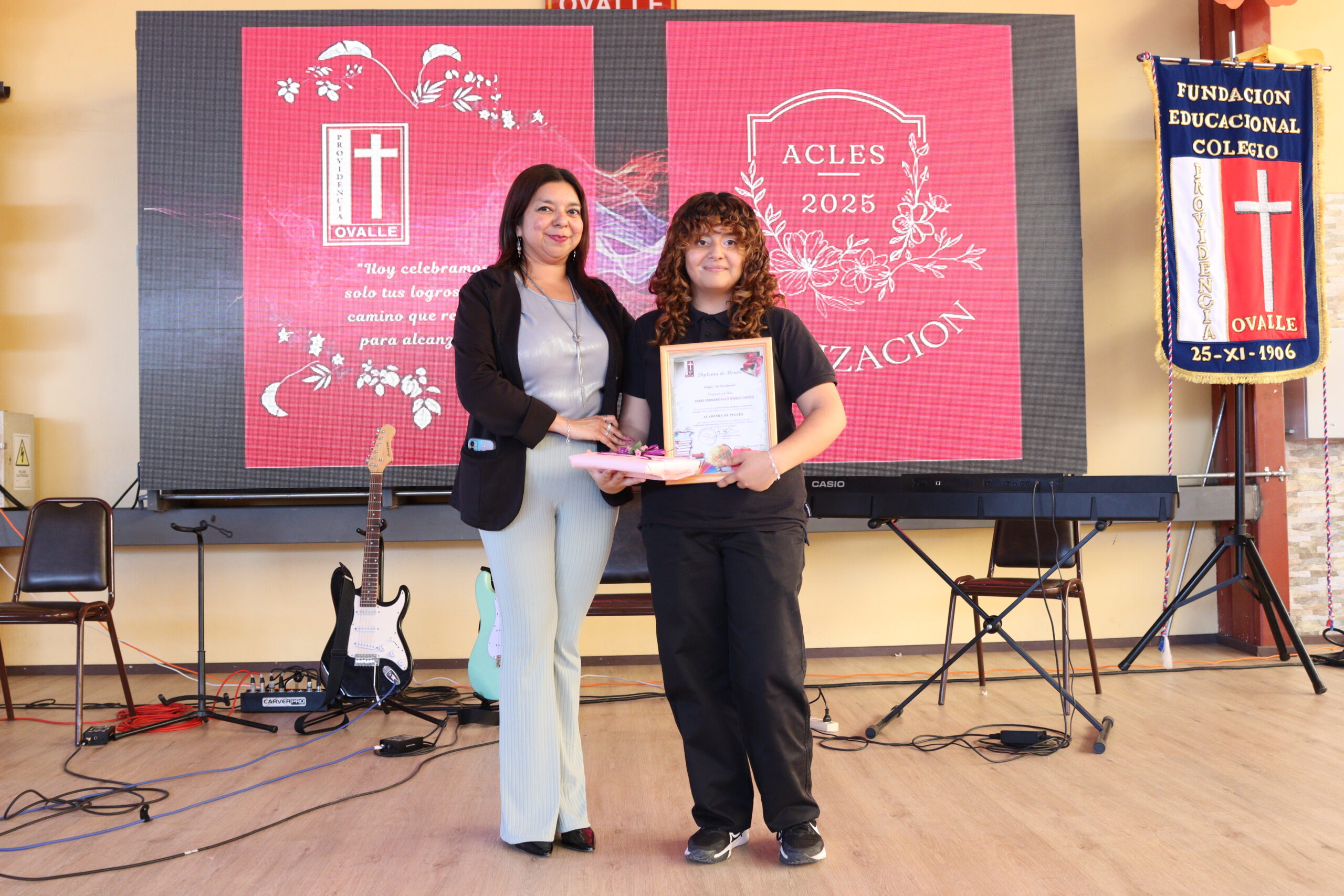 La ceremonia incluyó reconocimientos especiales bajo valores fundamentales de la comunidad, como la inclusión, el compromiso cristiano en la Pastoral, y la labor del Coordinador de ACLES, Allan Rojas, destacado por su aporte al desarrollo integral de las estudiantes.