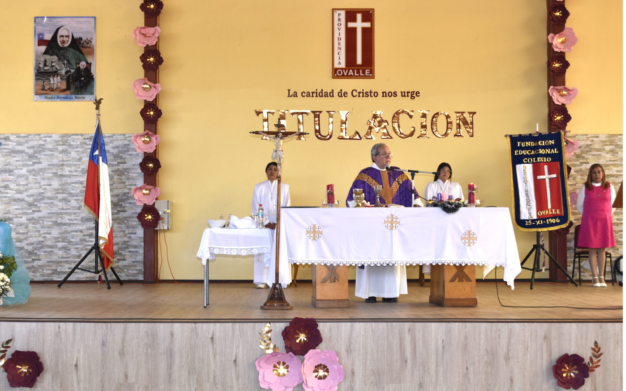 El pasado viernes 06 de diciembre, se realizó por primera vez la ceremonia de titulación de 81 estudiantes pertenecientes a la promoción 2023, comenzando con una Eucaristía a cargo del Padre Gerardo Soto Toledo, Foráneo de la Vicaría del Limarí, para luego dar paso a la ceremonia de titulación, que marca un hito en la historia de nuestro colegio.