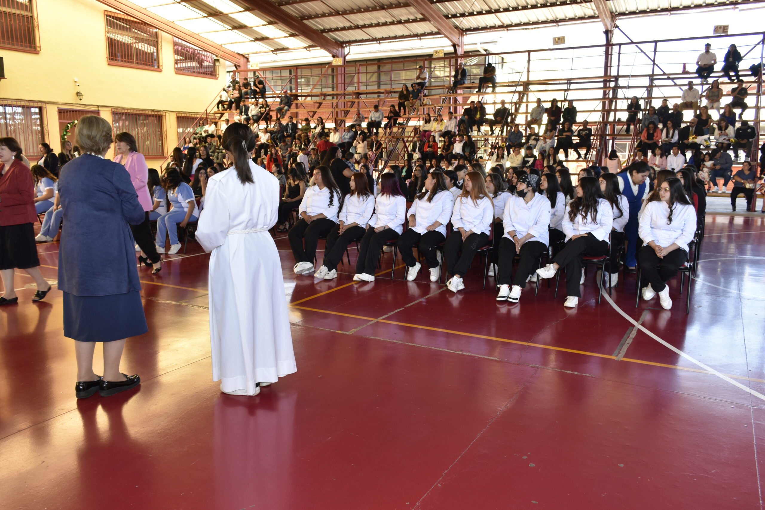 Las ex – estudiantes acompañadas del equipo directivo, asistente de la educación, docentes, profesores jefes, familiares y compañeras, recibieron los títulos profesionales de Atención de Enfermería, Atención de Párvulos, Gastronomía y Administración, fruto de un exitoso proceso de formación técnica de dos años y la aprobación de la práctica profesional.