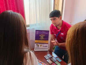La charla incluyó un juego de mesa creado por la Academia de Ciencias del Colegio Raúl Silva Henríquez, que enseña de manera didáctica qué son los relaves mineros y sus impactos.