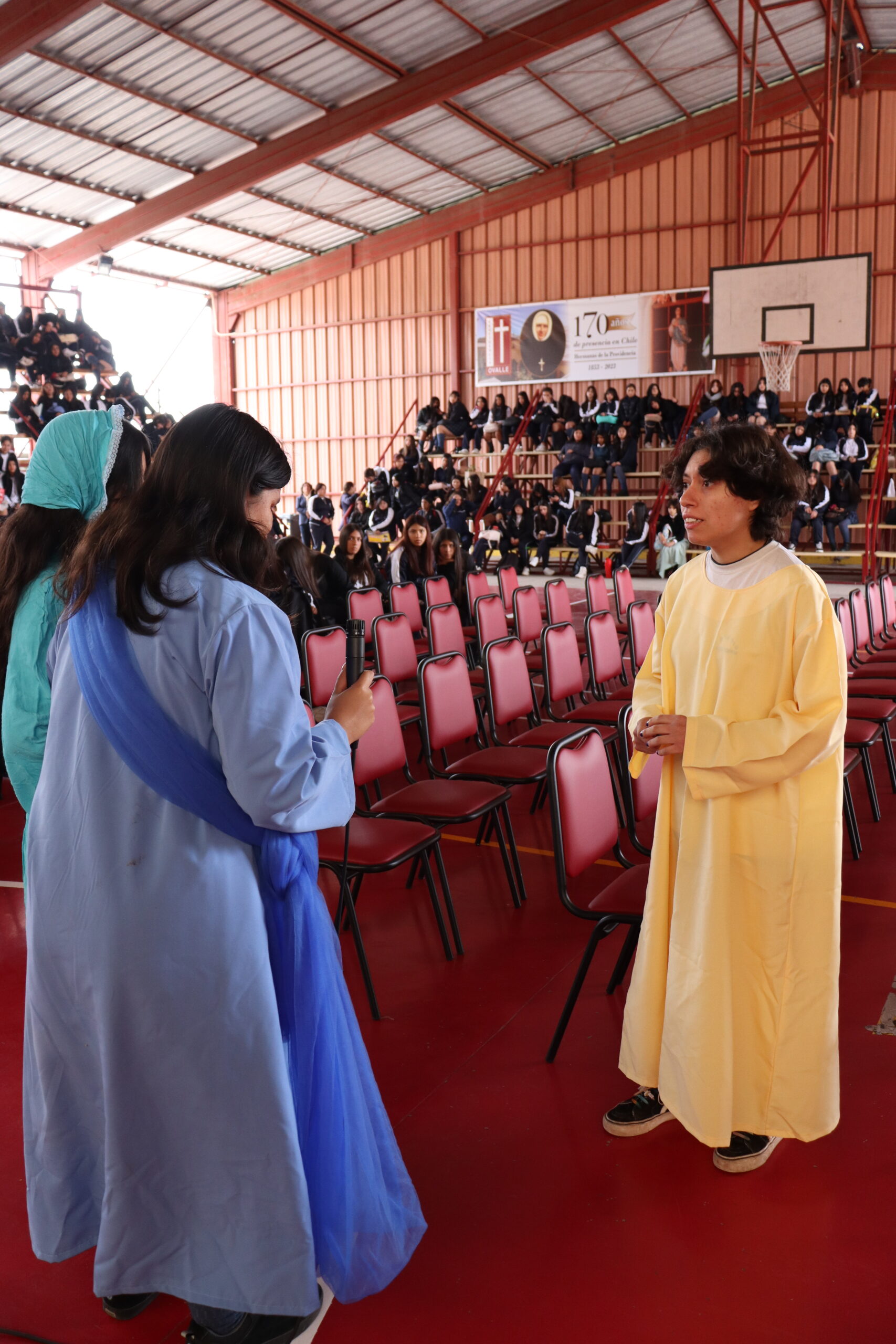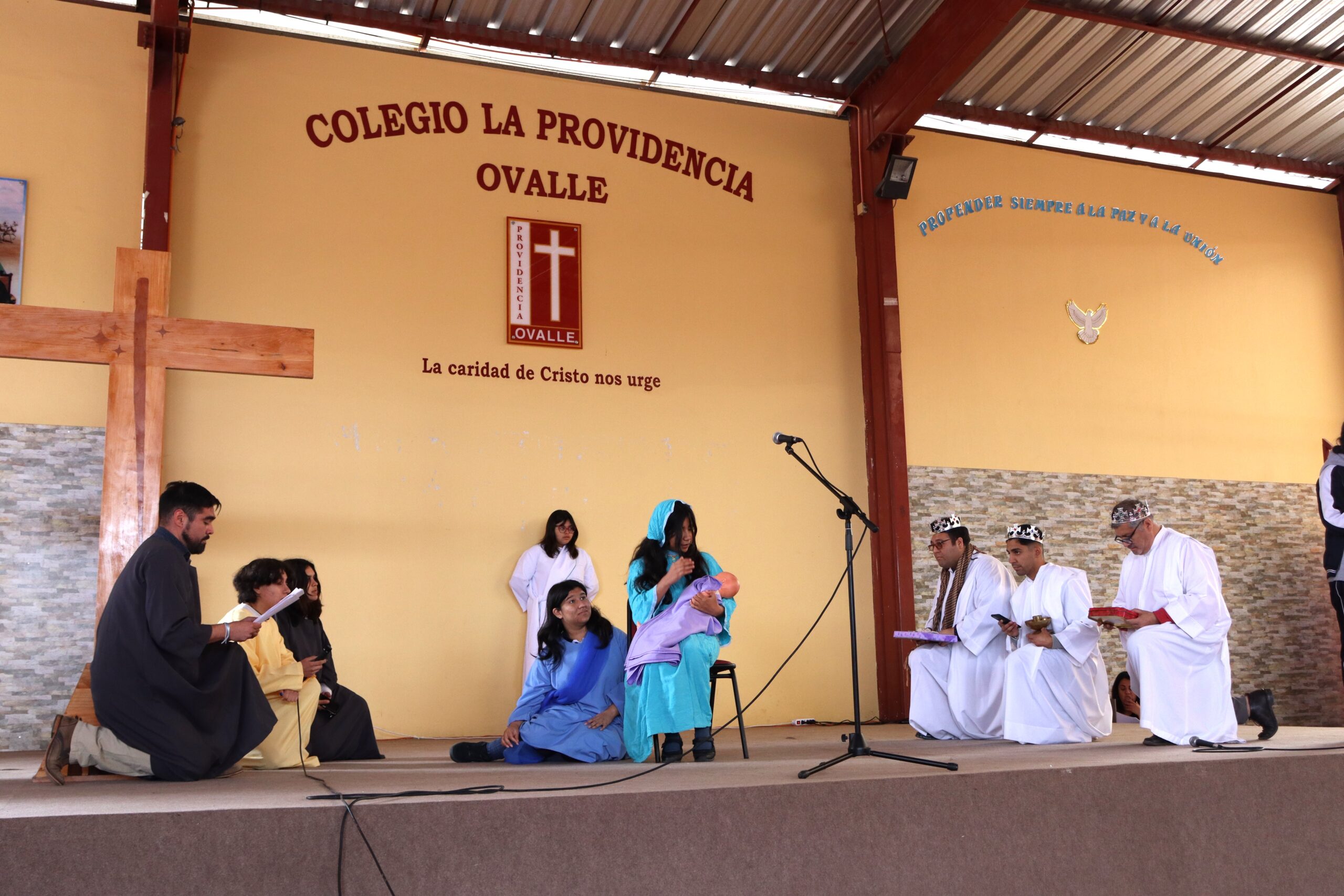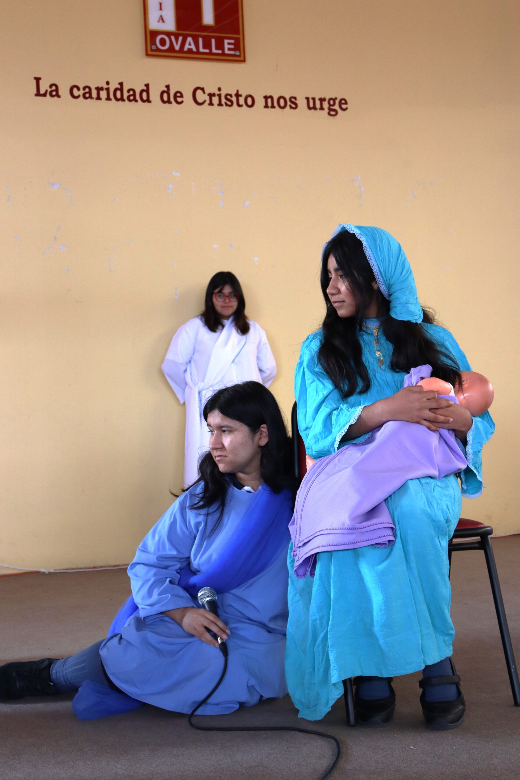 Durante la actividad de cierre del mes de María, la academia de teatro a cargo de Rodrigo Cuello, representó el nacimiento del Niño Jesús, participando, estudiantes y profesores como una magnífica manera de socializar este momento.