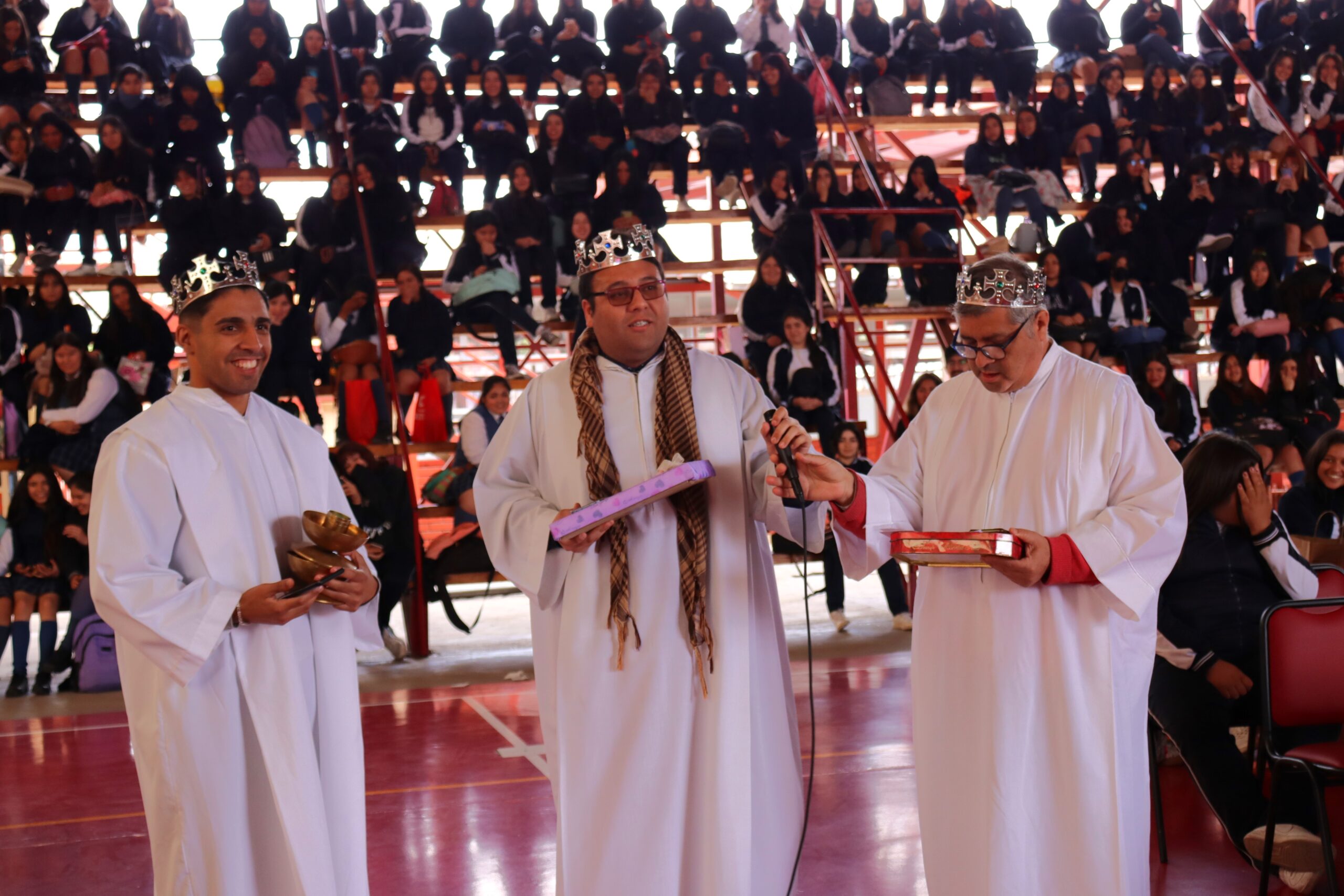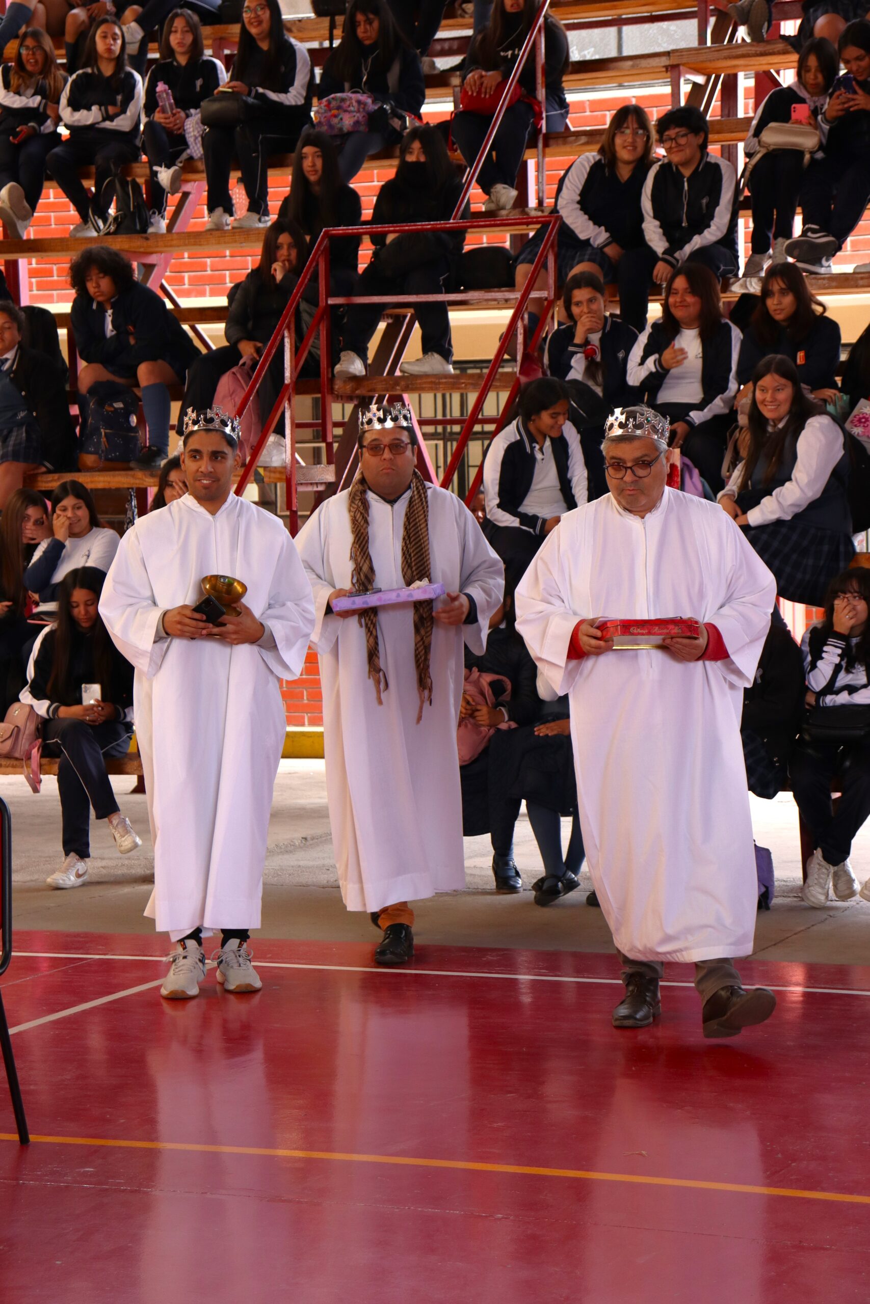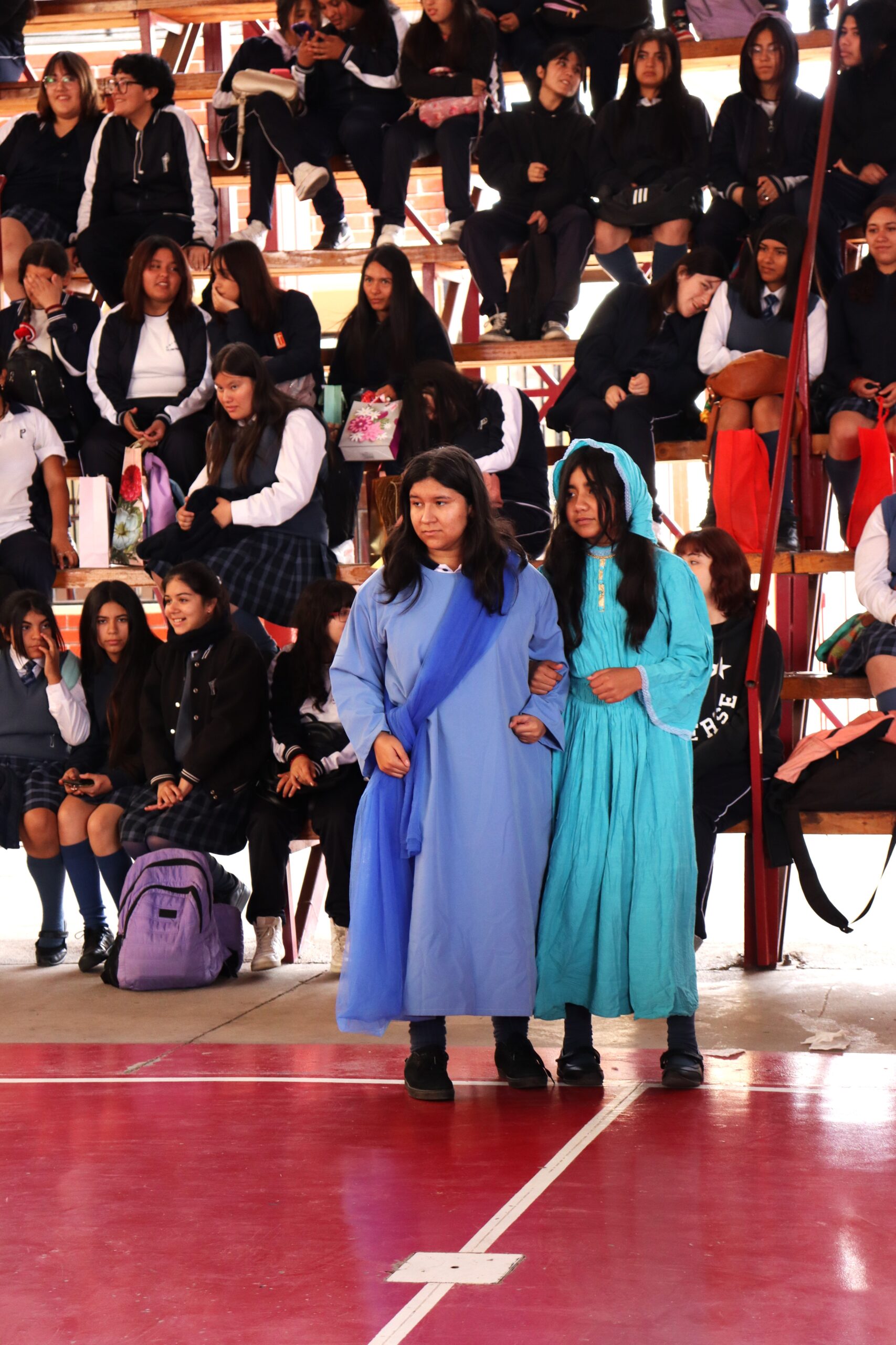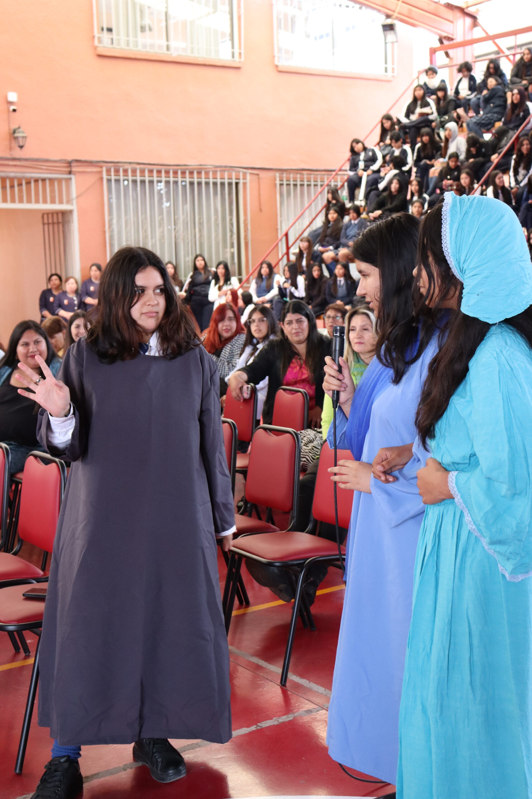 Durante la actividad de cierre del mes de María, la academia de teatro a cargo de Rodrigo Cuello, representó el nacimiento del Niño Jesús, participando, estudiantes y profesores como una magnífica manera de socializar este momento.