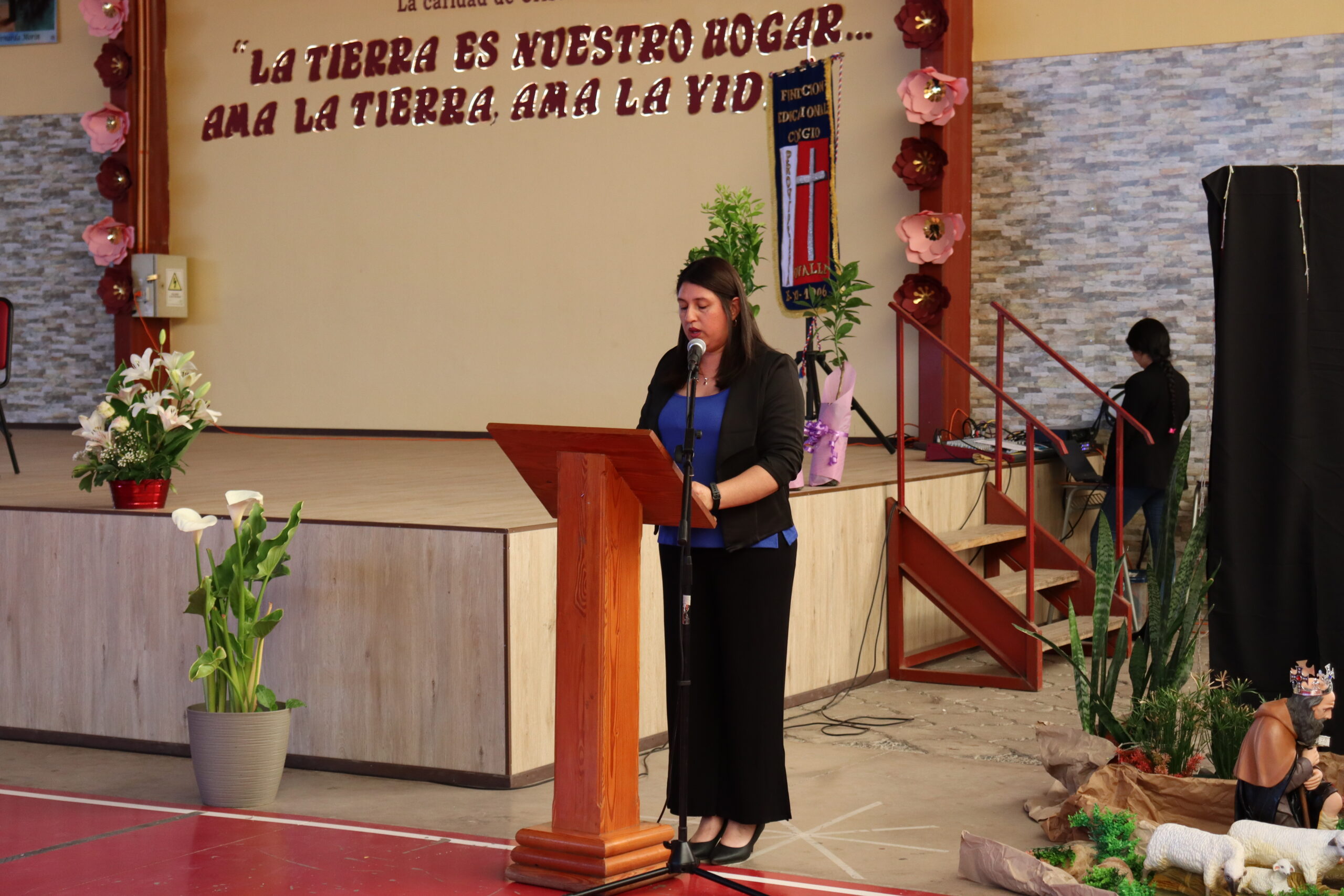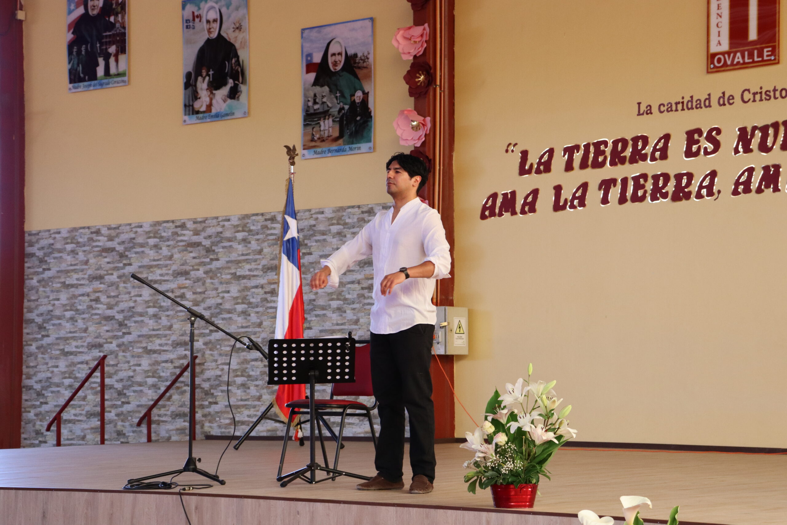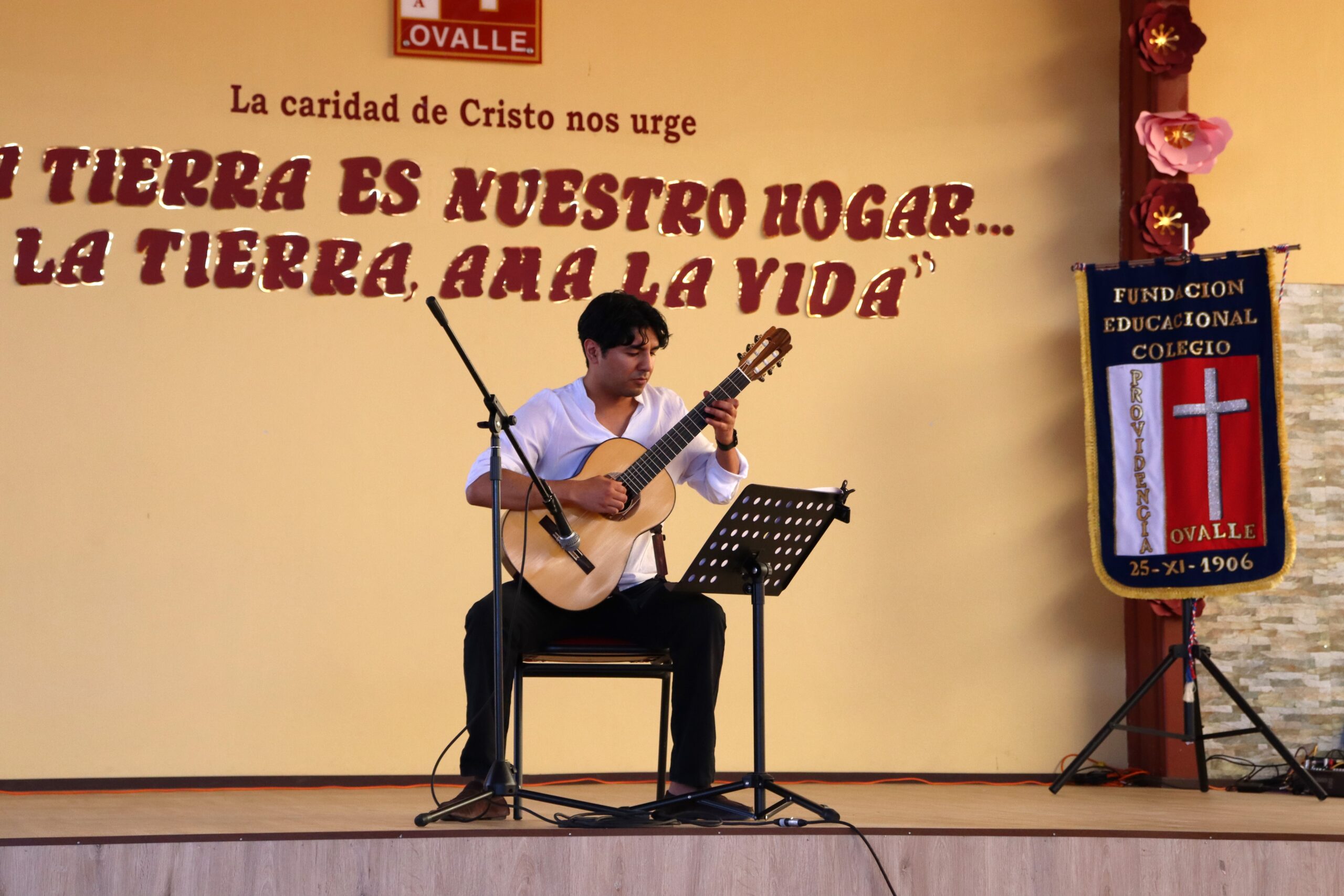Durante el acto la academia audiovisual preparó un video donde se evidenció el trabajo y las acciones realizadas por el comité de medio ambiente, compuesto por las docentes: Paola Olivares, Sharon Castro y Shirley Bruna, junto a las 24 estudiantes, delegadas de Medio Ambiente, representantes de cada uno de los cursos. En esta ceremonia, la academia brindó emoción y elegancia, deleitando los presentes con un baile de la canción “Gracias a la Vida”. Sumando prodigiosidad, habilidad y destreza, el profesor de música Oscar García realizó una perfecta interpretación musical junto a su guitarra, cautivando al público, transportando arte y cultura musical.