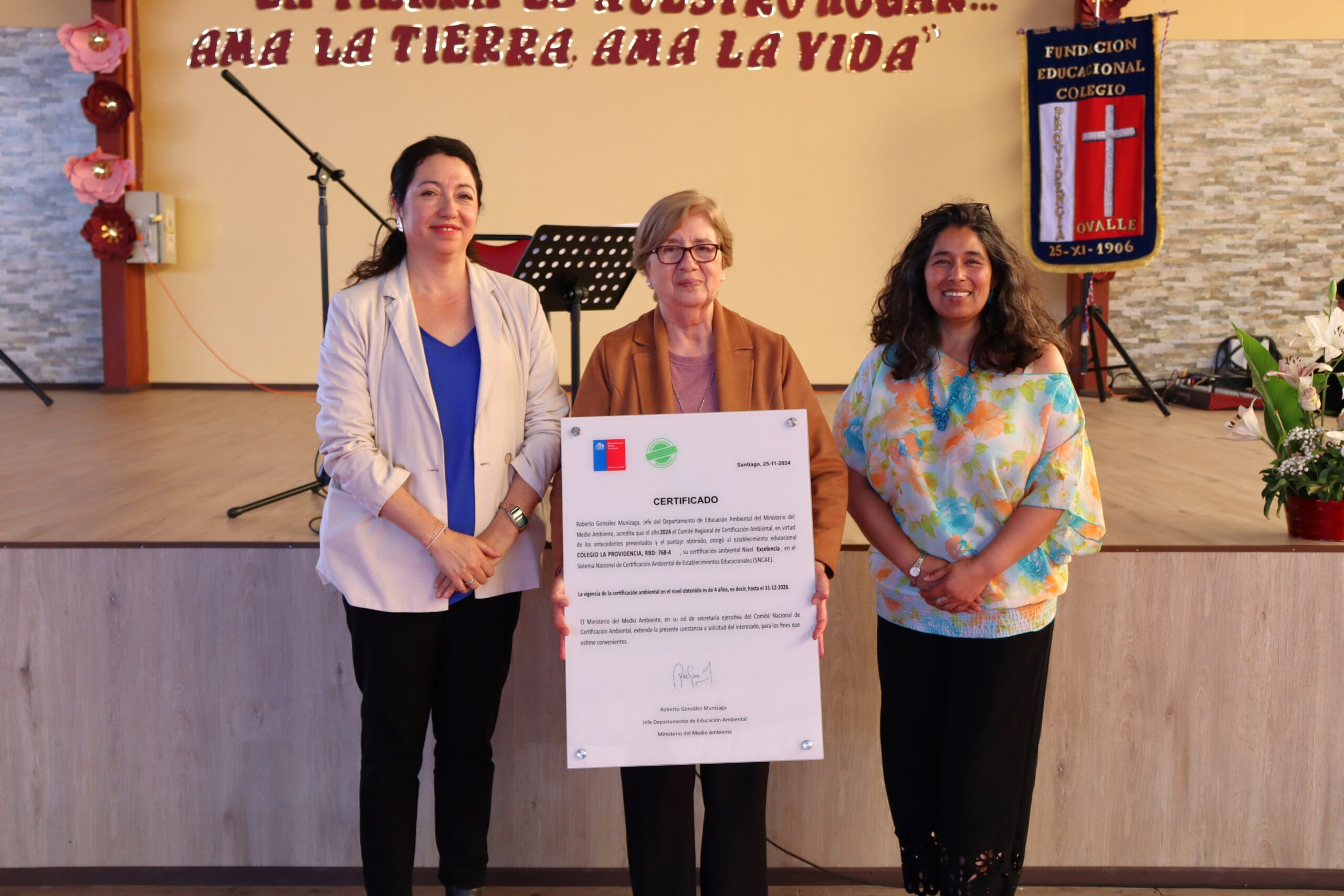 El Colegio La Providencia de Ovalle recibió la certificación medioambiental en nivel de Excelencia, lo que significa que ha implementado en forma destacada metodologías y estrategias que aportan en la mejora y conservación del medio ambiente.