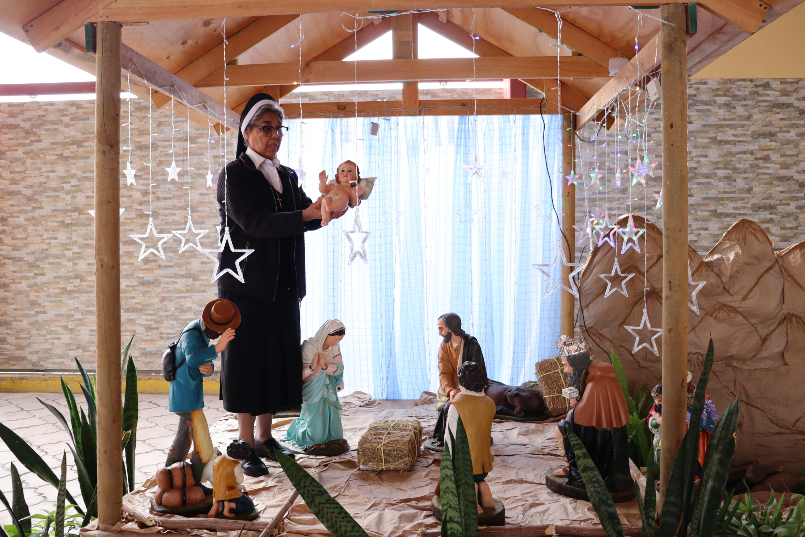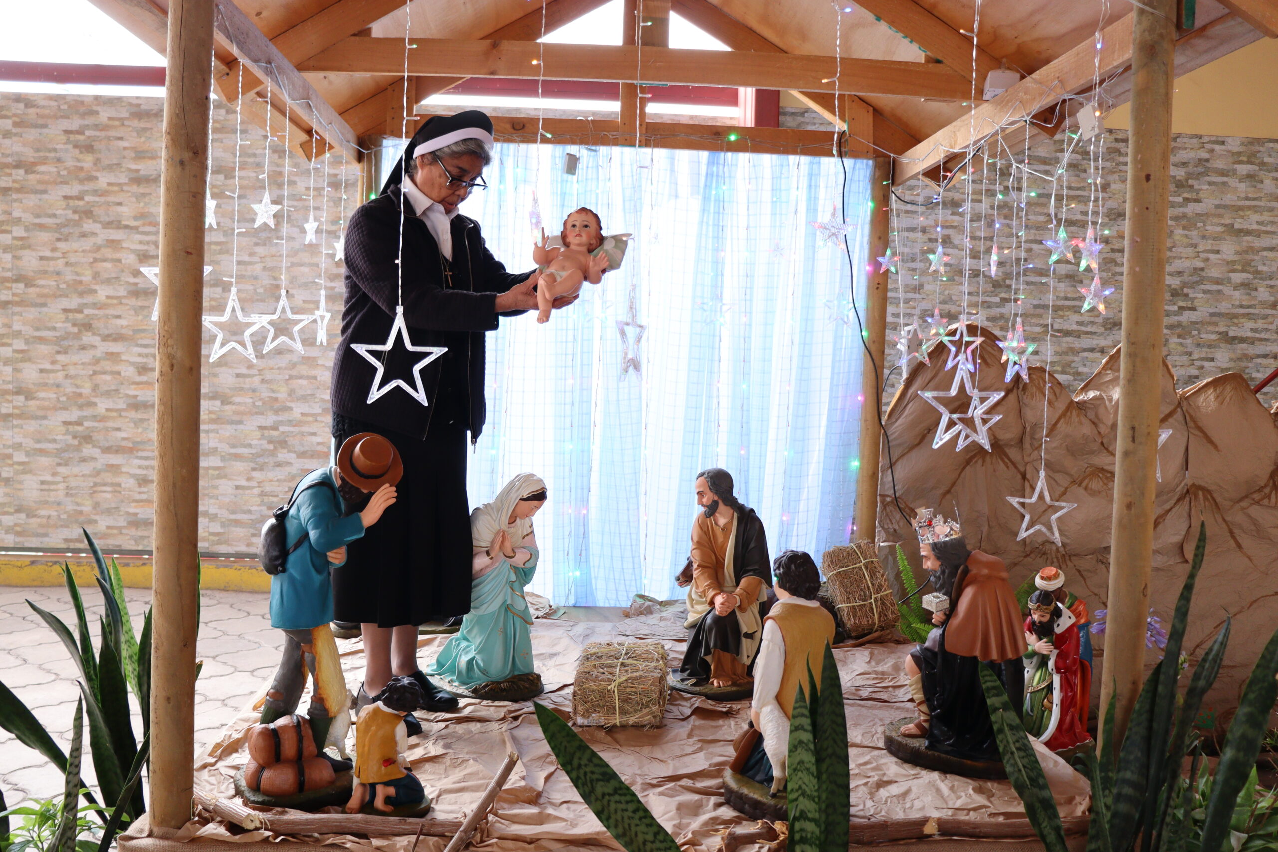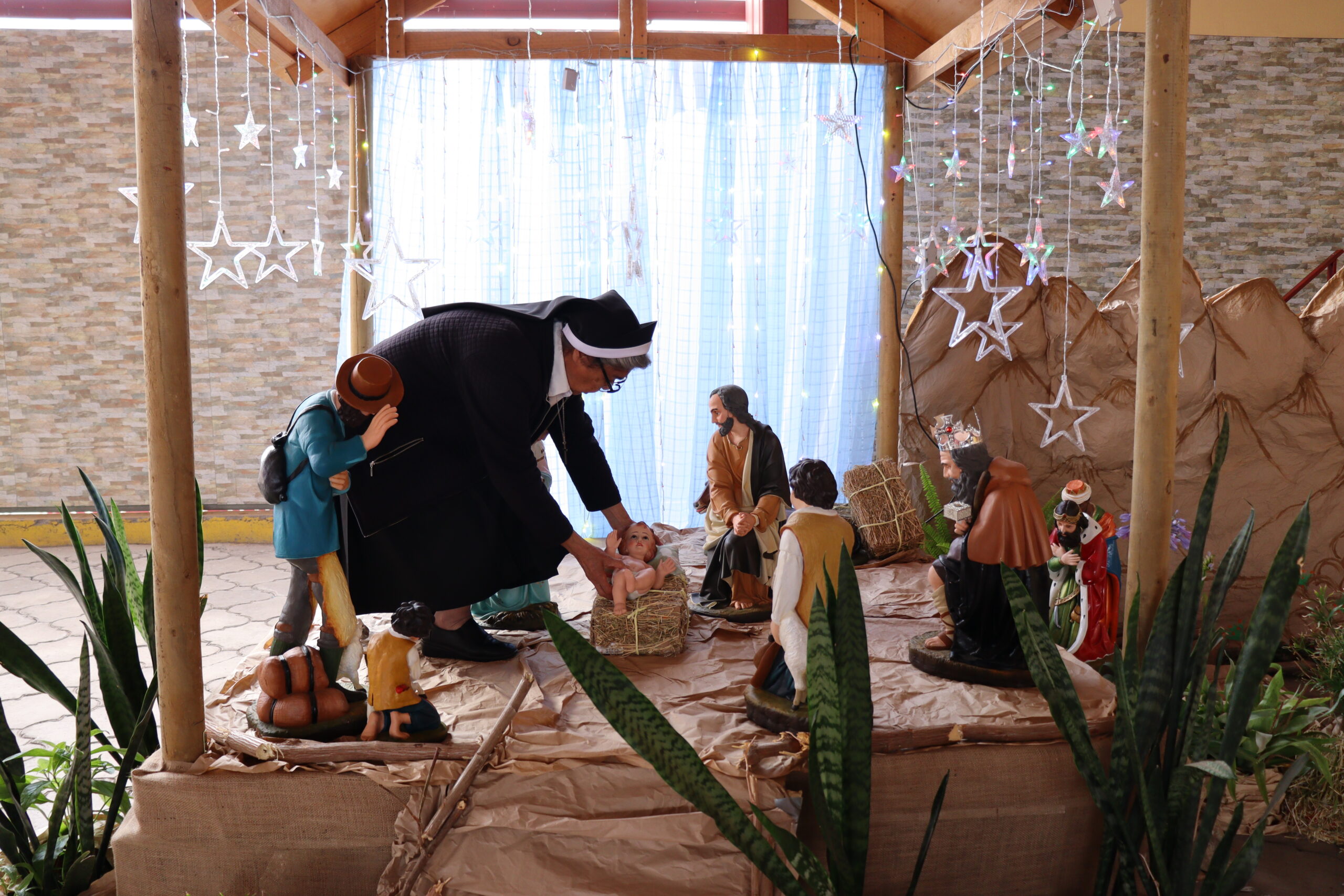 El miércoles 10 de diciembre nuestra comunidad educativa vivió un emocionante encuentro con espíritu navideño, invitando a esperar el nacimiento de Jesús con amor, perdón y fe en nuestros corazones. La jornada comenzó con el armado del pesebre, donde distintos estamentos fueron pasando uno a uno para aportar en su construcción. En el cierre de esta primera etapa, la Hna. Elvira Letelier colocó la estrella que guía hacia el nacimiento.