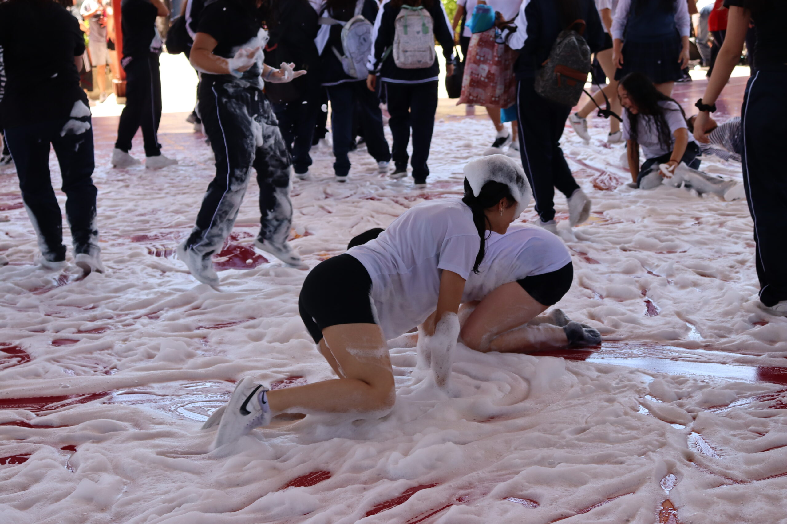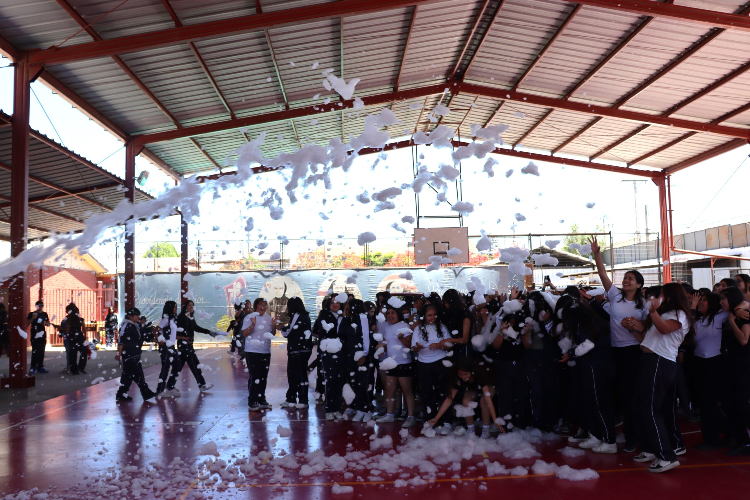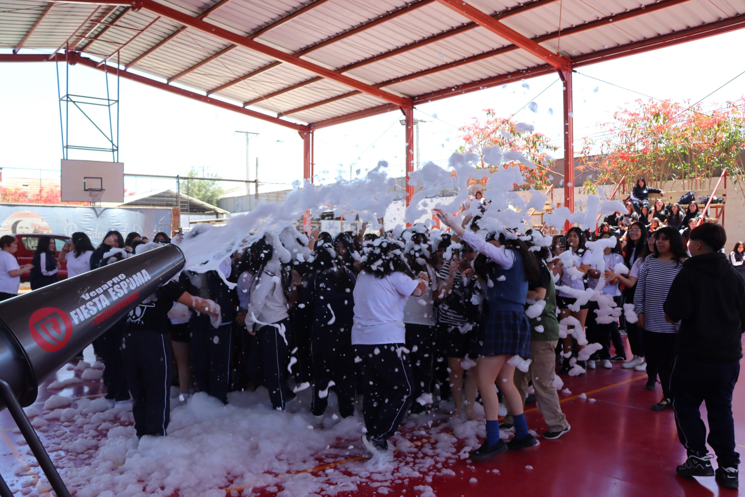El Centro de Padres y/o Apoderados en colaboración con la Oficina Municipal de la Juventud y la Administración del colegio, dieron espacio para finalizar el año de una manera diferente, positiva y llena de energía, instancia donde se mezclo el canto, baile, diversión y por sobre todo compañerismo. Un Fiesta de Espuma que dio felicidad no sólo a las estudiantes sino que también a docentes, asistentes de le Educación y apoderados que se encontraban disfrutando del momento.