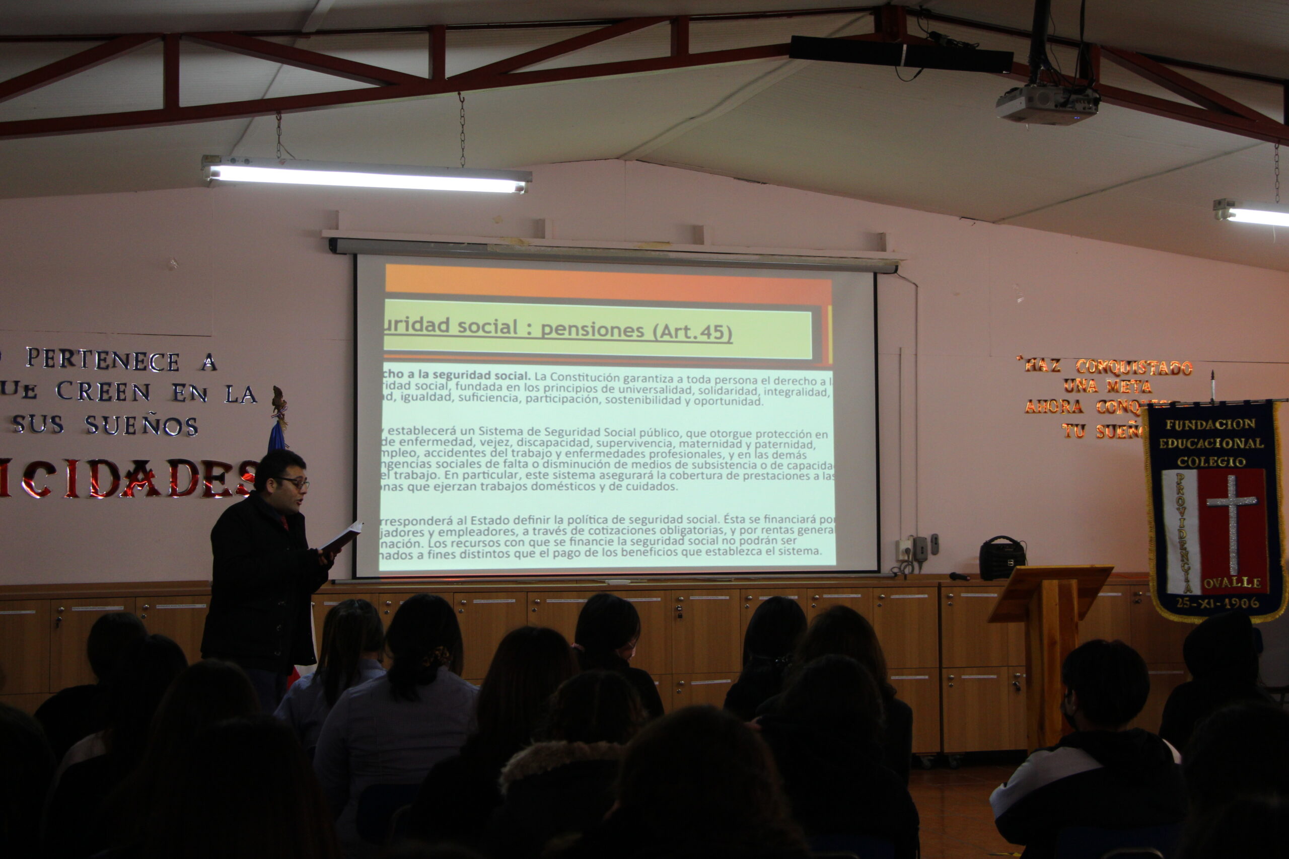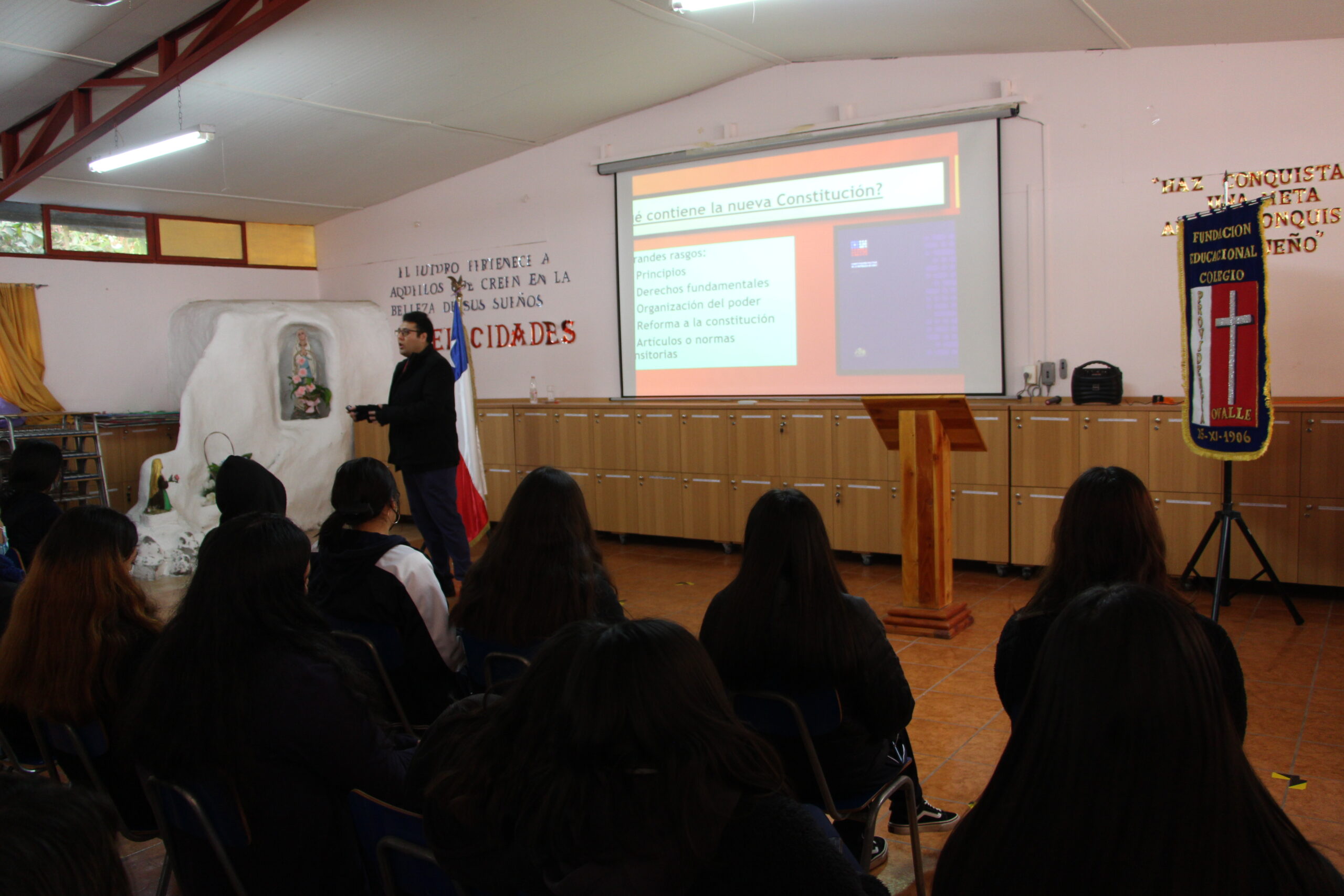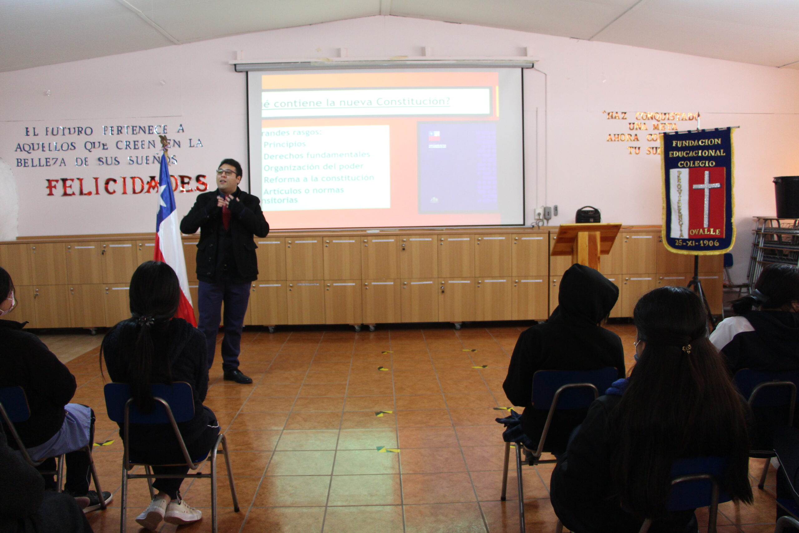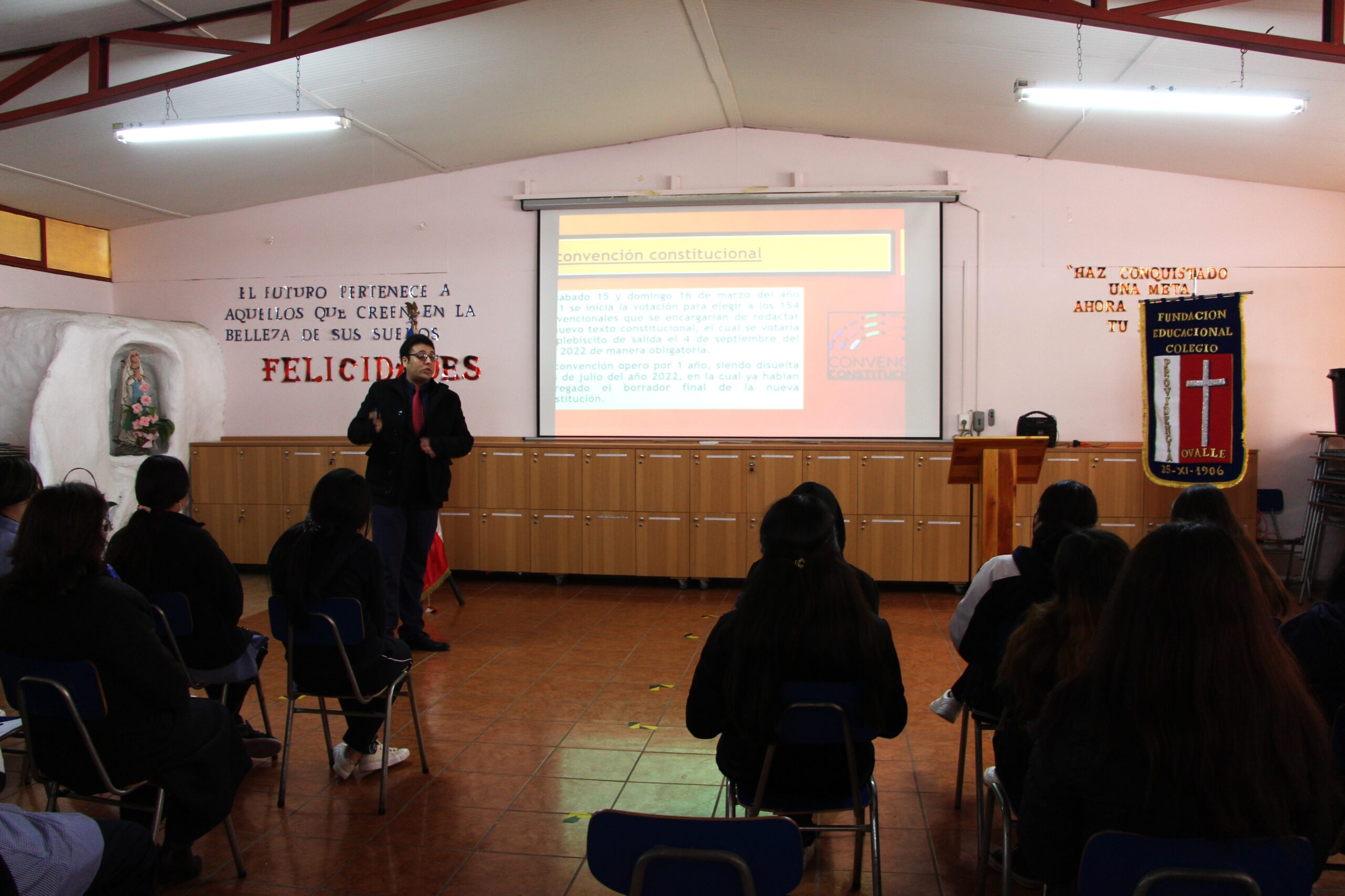 La actividad de carácter informativo trató temas como el origen del proceso constituyente y contenido del borrador de la nueva constitución, generando un espacio en que las estudiantes expresaron sus dudas, inquietudes y opiniones. El objetivo de estas instancias es que las estudiantes sean buenas ciudadanas y estén informadas a la hora hora de emitir opiniones y juicios que sean relevantes para su participación en la sociedad.
