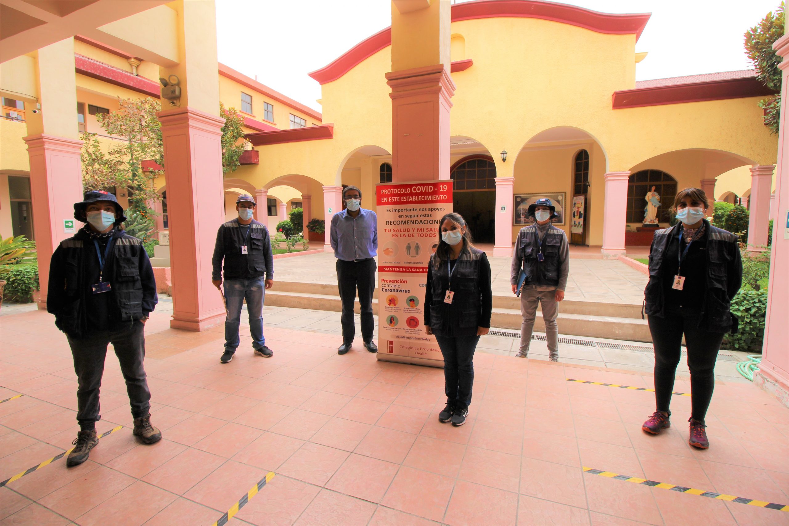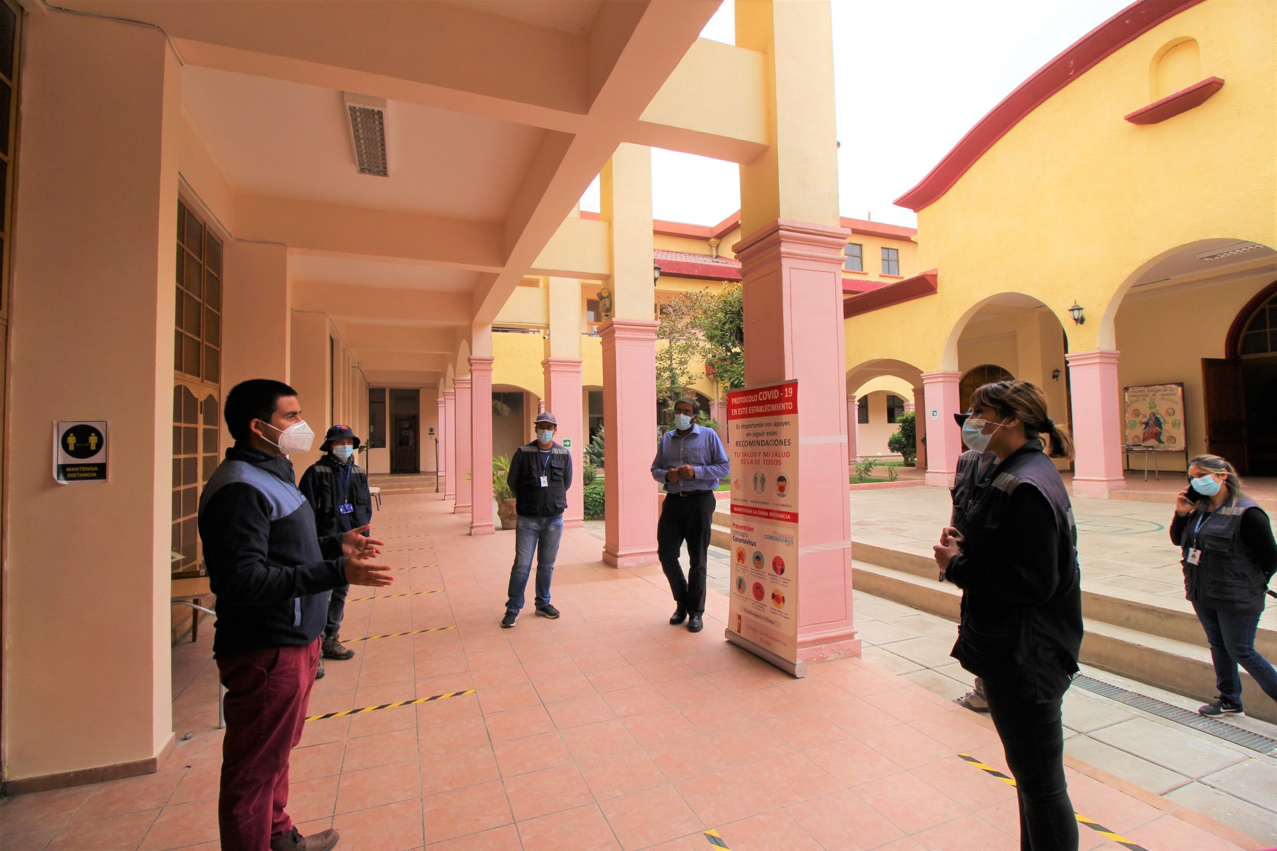 Hoy nos visitó la cuadrilla sanitaria de la cuidad de Ovalle, cuyo objetivo es la educación y promoción de esta nueva forma de vivir que es el modo Covid; las nuevas conductas, el uso de mascarilla, distanciamiento y lavado de manos. En la visita les pudo acompañar nuestro Director Jorge Goormaz Barrientos y el Prevencionista de Riesgos Héctor Villagran, quienes fueron los encargados de mostrar las instalaciones y cómo la comunidad educativa desempeña sus actividades con responsabilidad y cuidado.