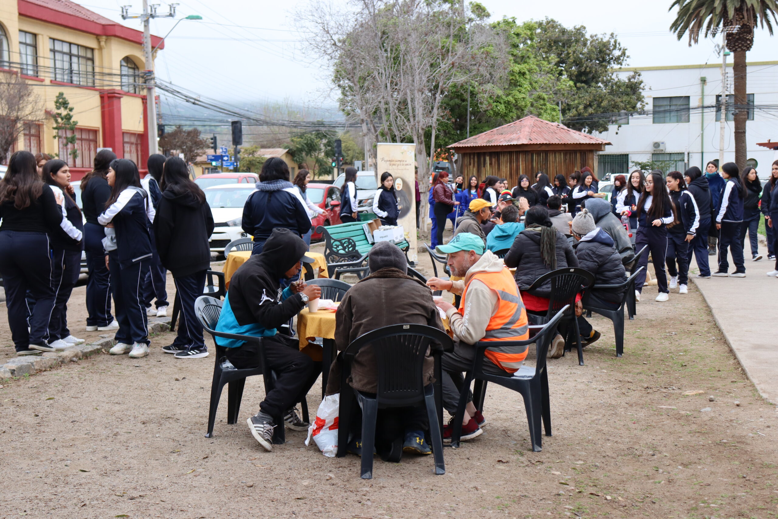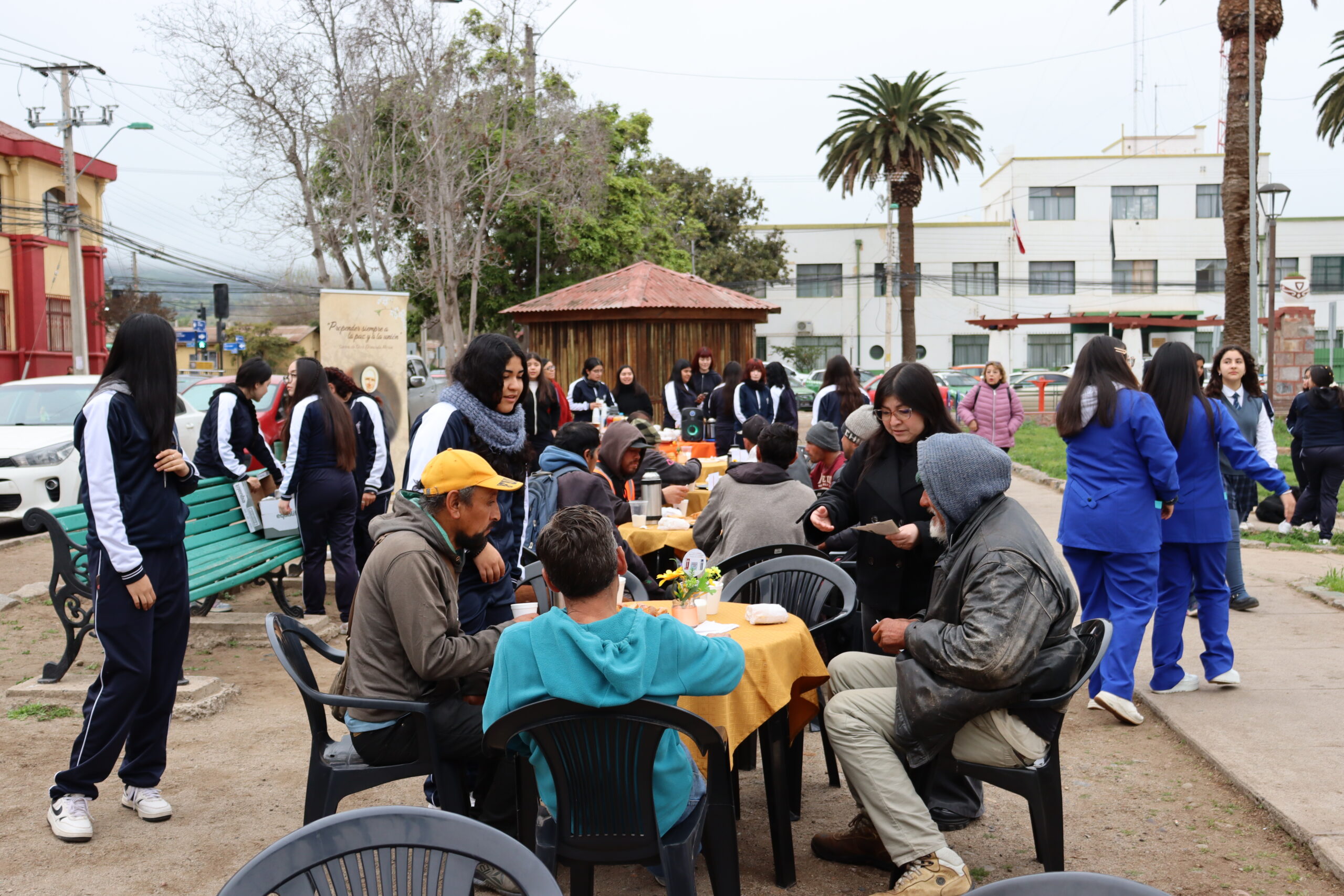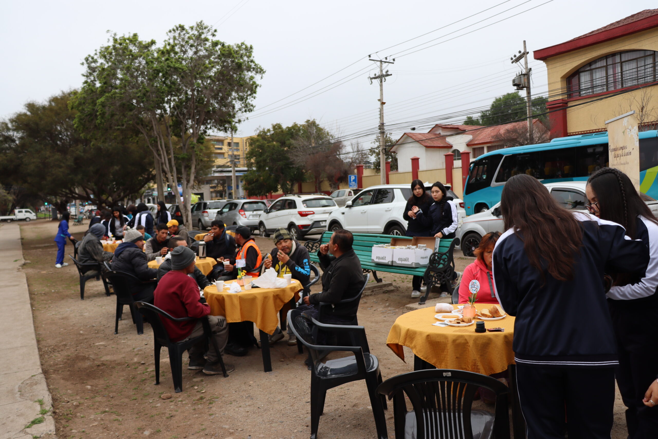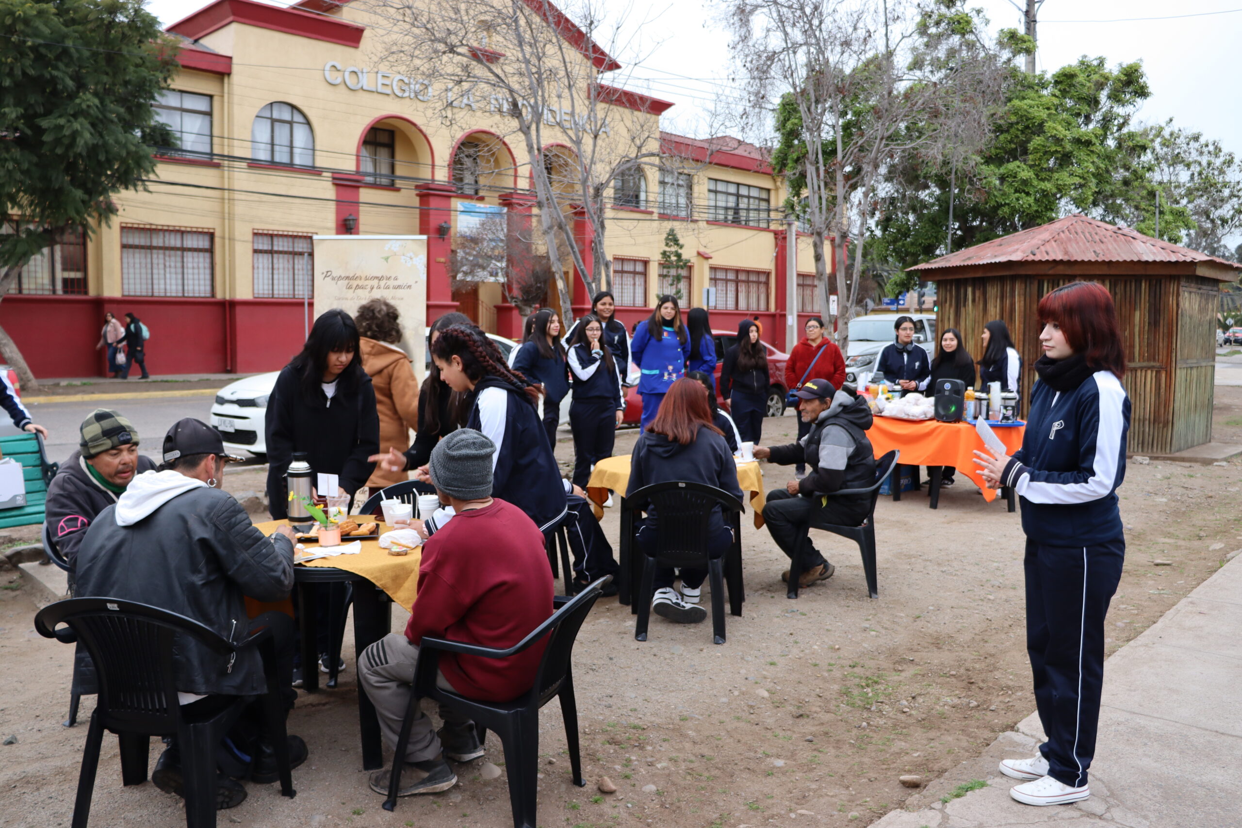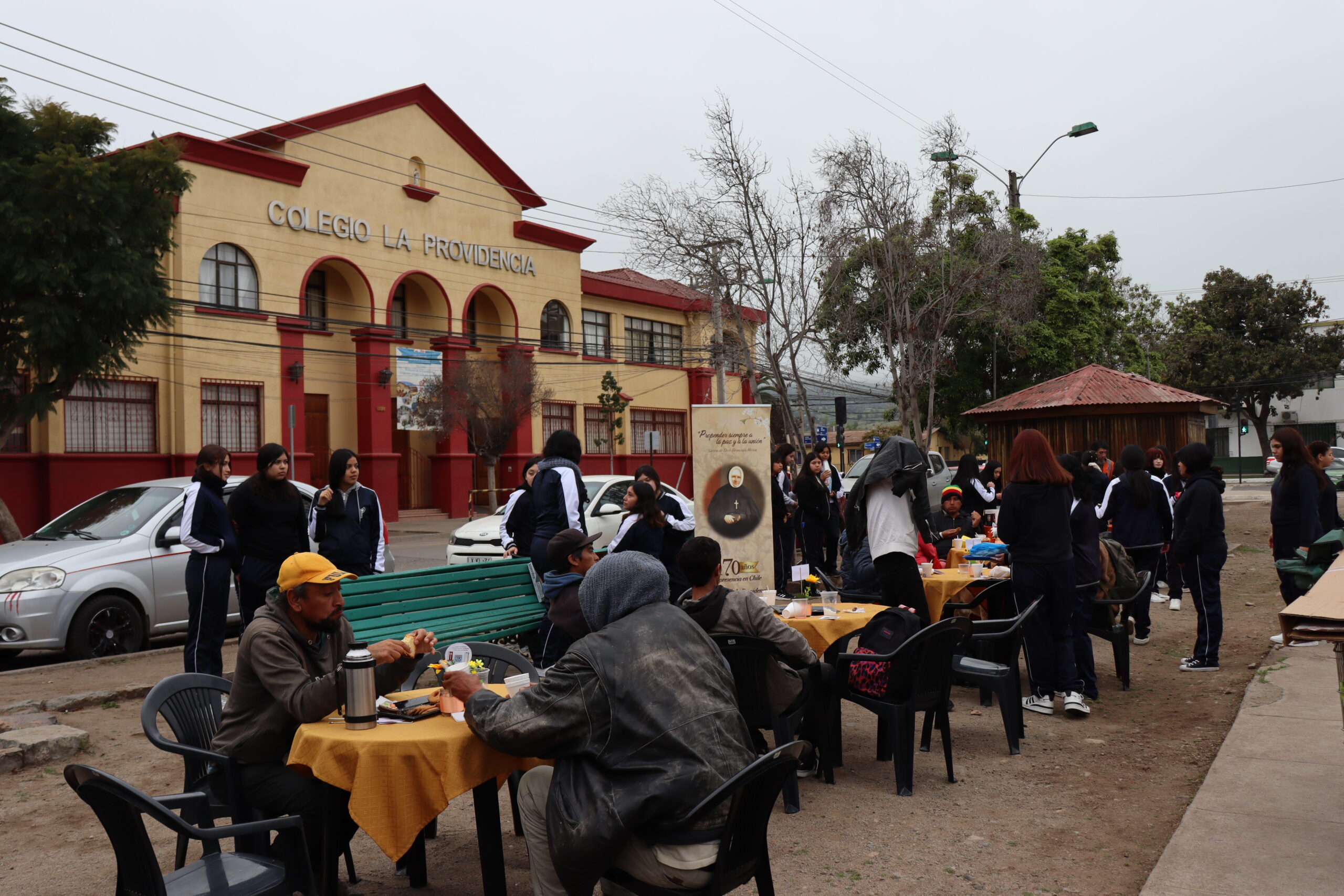Las estudiantes de la Pastoral Juvenil se organizaron e hicieron una campaña solidaria de manera interna, buscando en sus redes de apoyo la recolección de los insumos necesarios para preparar más de cincuenta desayunos a las personas en situación de calle, además de hacerles entrega de más de 150 calcetines de regalo, mensajes de esperanza escritos por las propias estudiantes y la oración de la Madre Bernarda entregada a las estudiantes por parte de la presidenta de los Asociados Providencia de Ovalle, Sra. Nelly García.