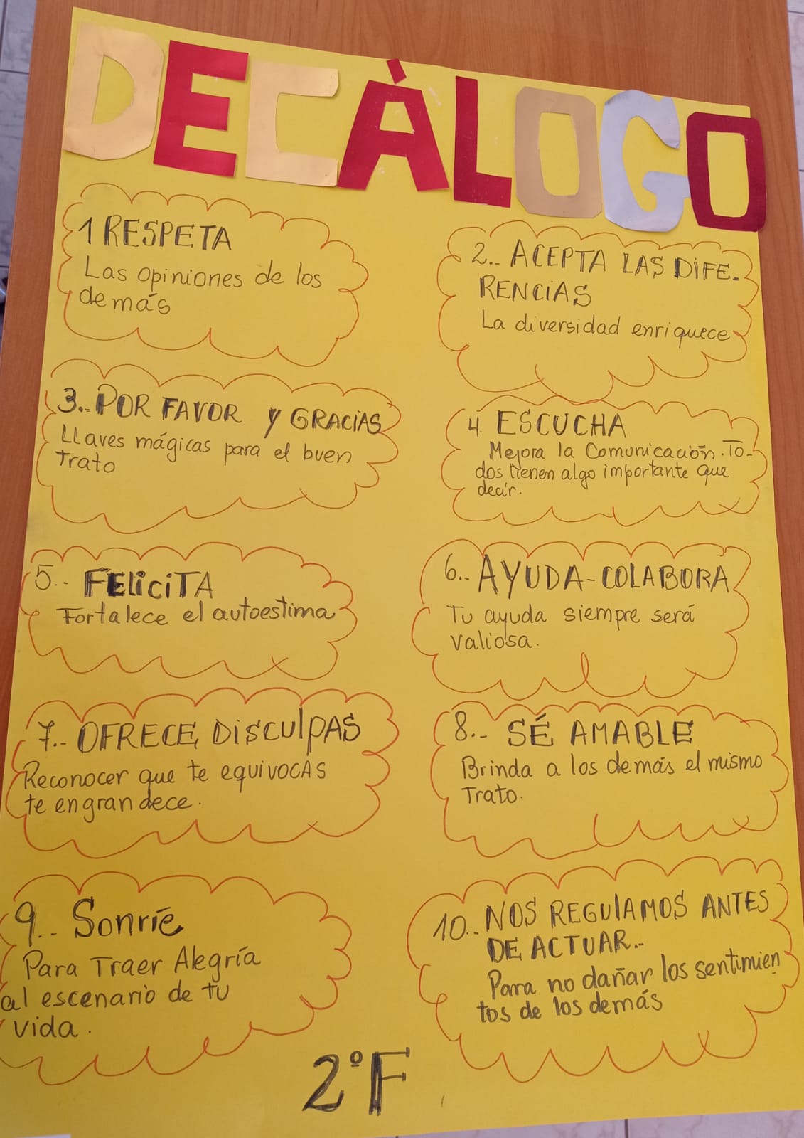 En la ocasión, los 24 cursos elaboraron un decálogo con normas para la sana convivencia, que fueron colgados en en sus diarios murales.