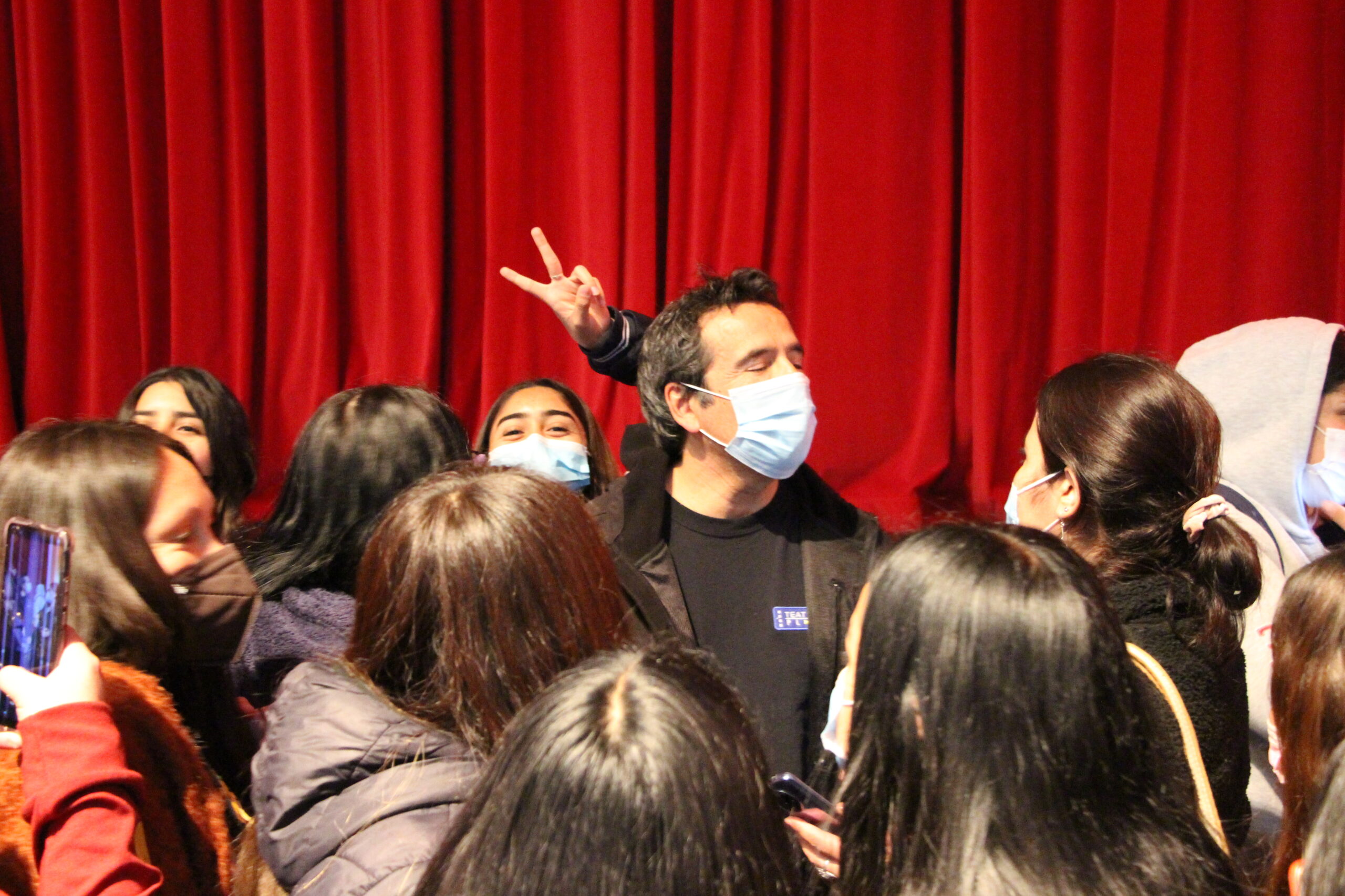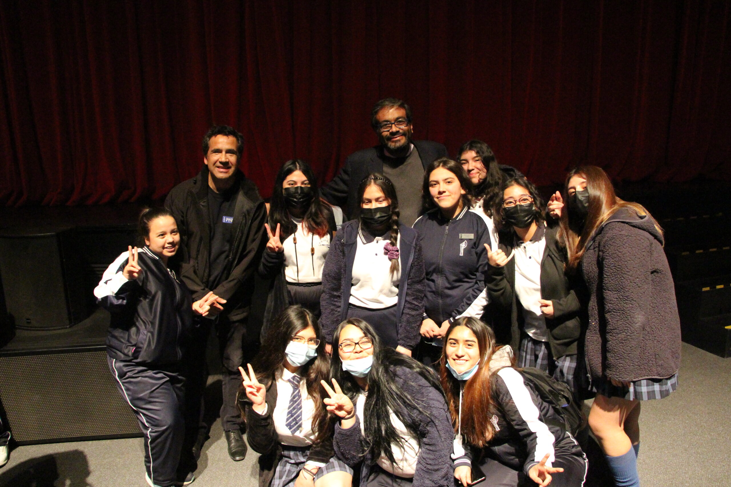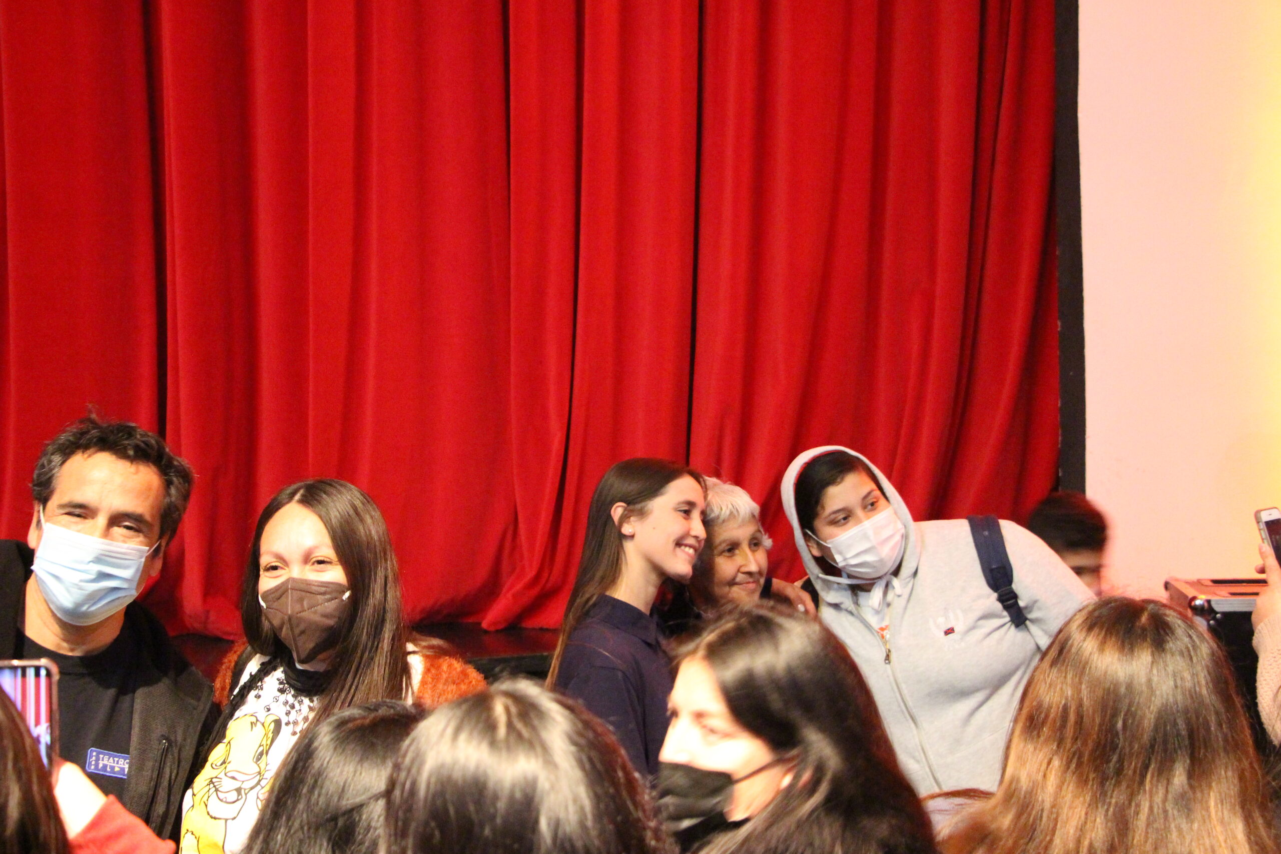 La comunidad educativa además pudo compartir con el grupo de actores en las dependencias de nuestro colegio, permitiendo interactuar y fotografiarse con los protagonistas de esta emotiva obra, que retrataba las vivencias de una estudiante llamada Paola y el Bullying ejercido por sus compañeros de curso, quienes a través de diversas acciones generan violencia sobre ella. Y a su vez cómo estas acciones repercuten en toda la comunidad escolar del establecimiento.