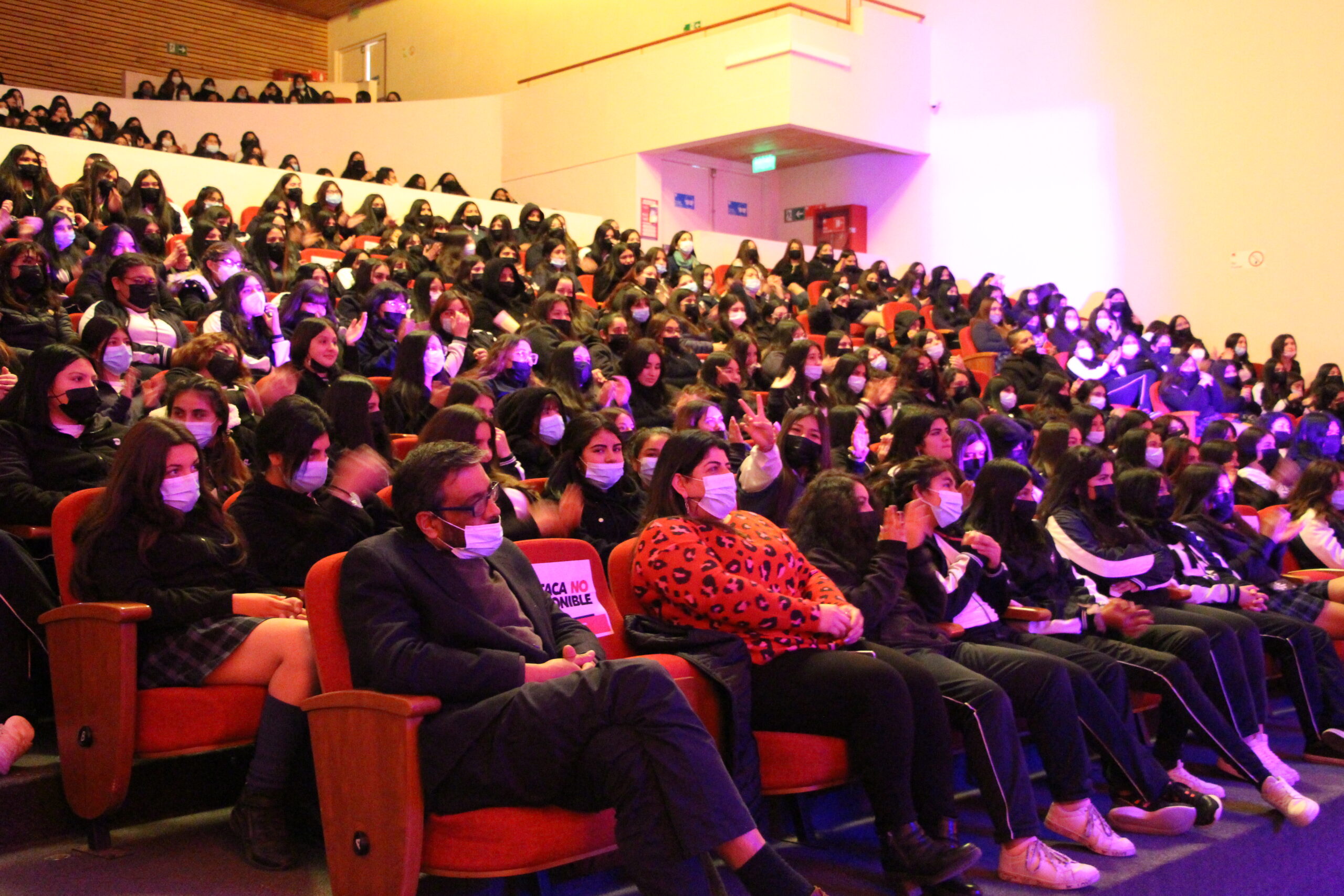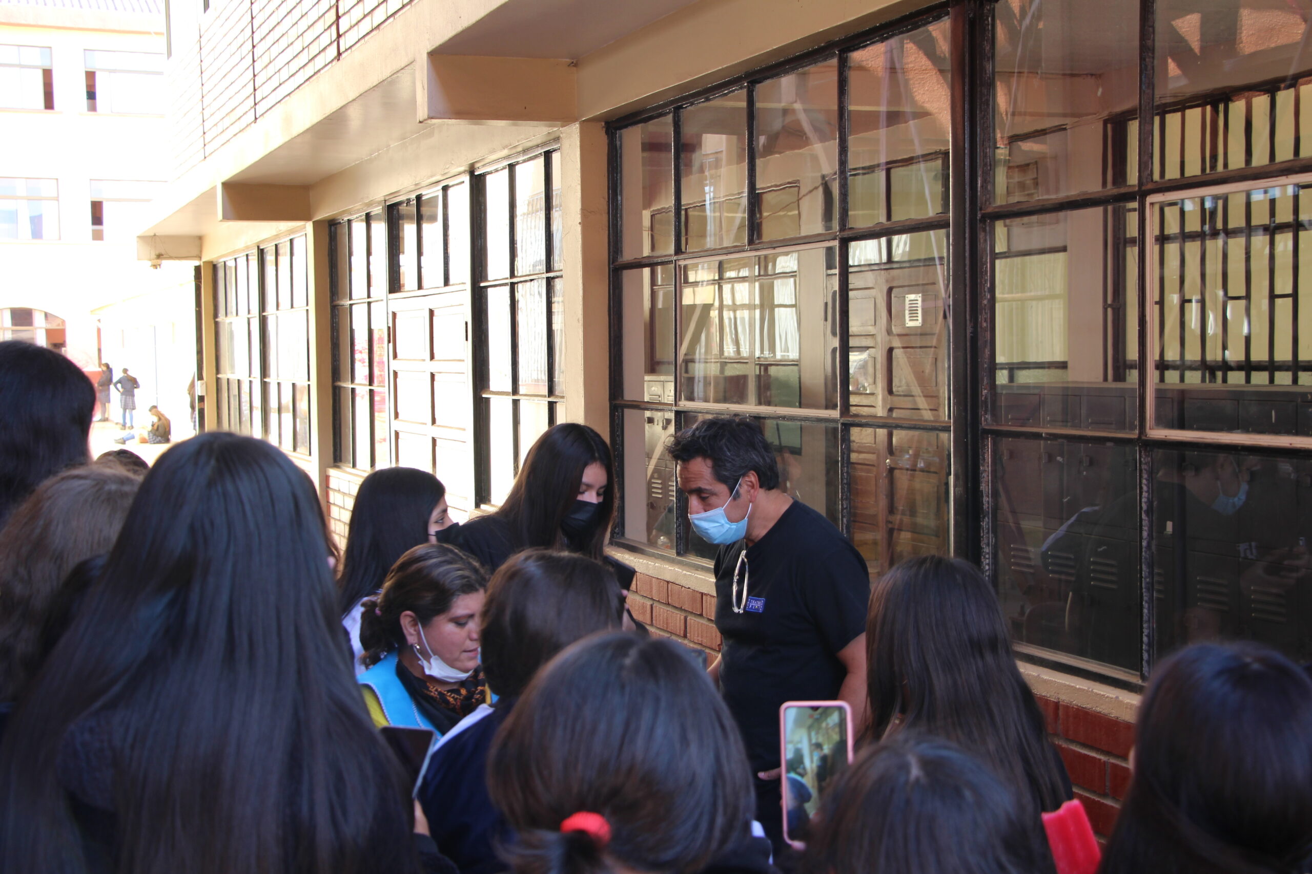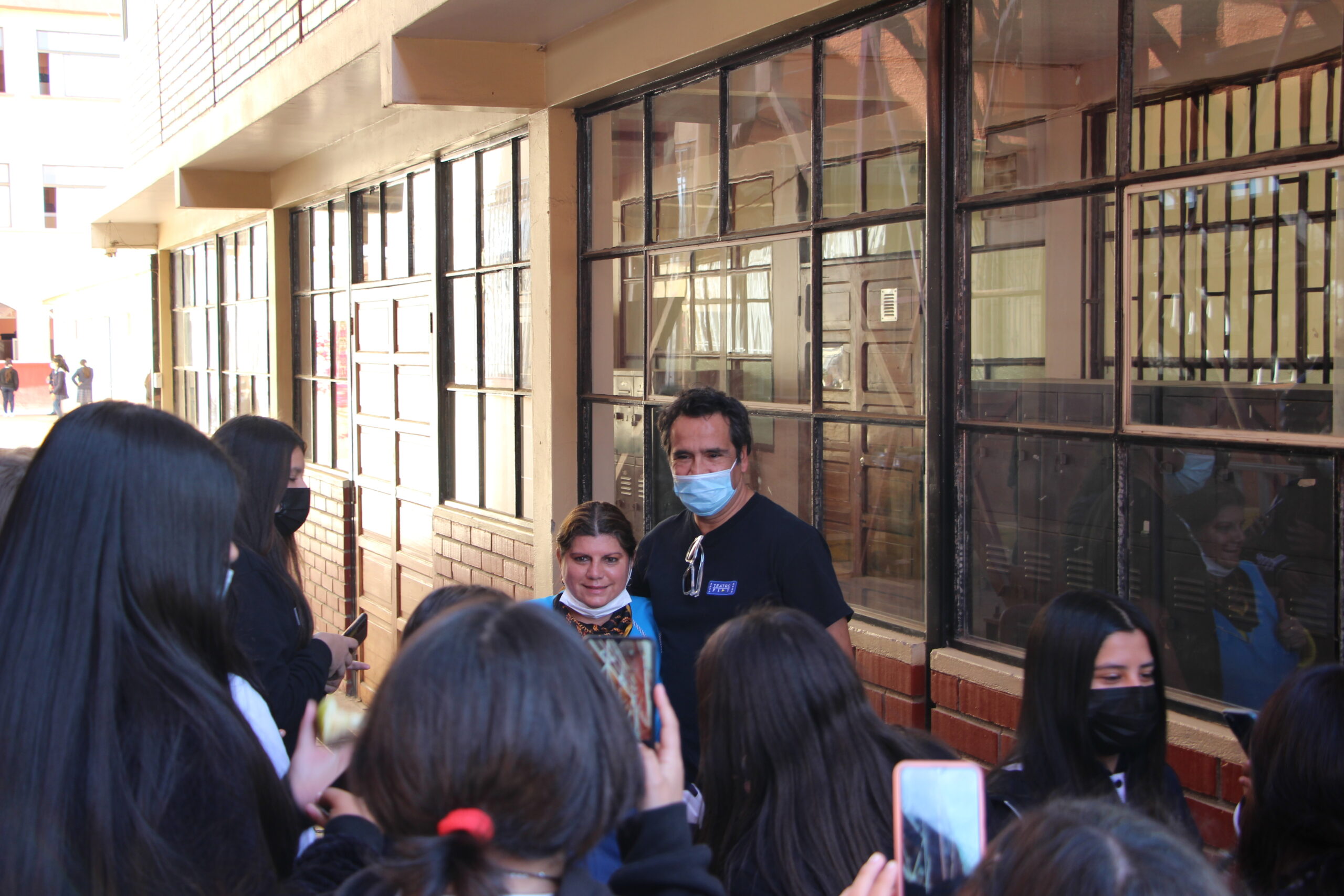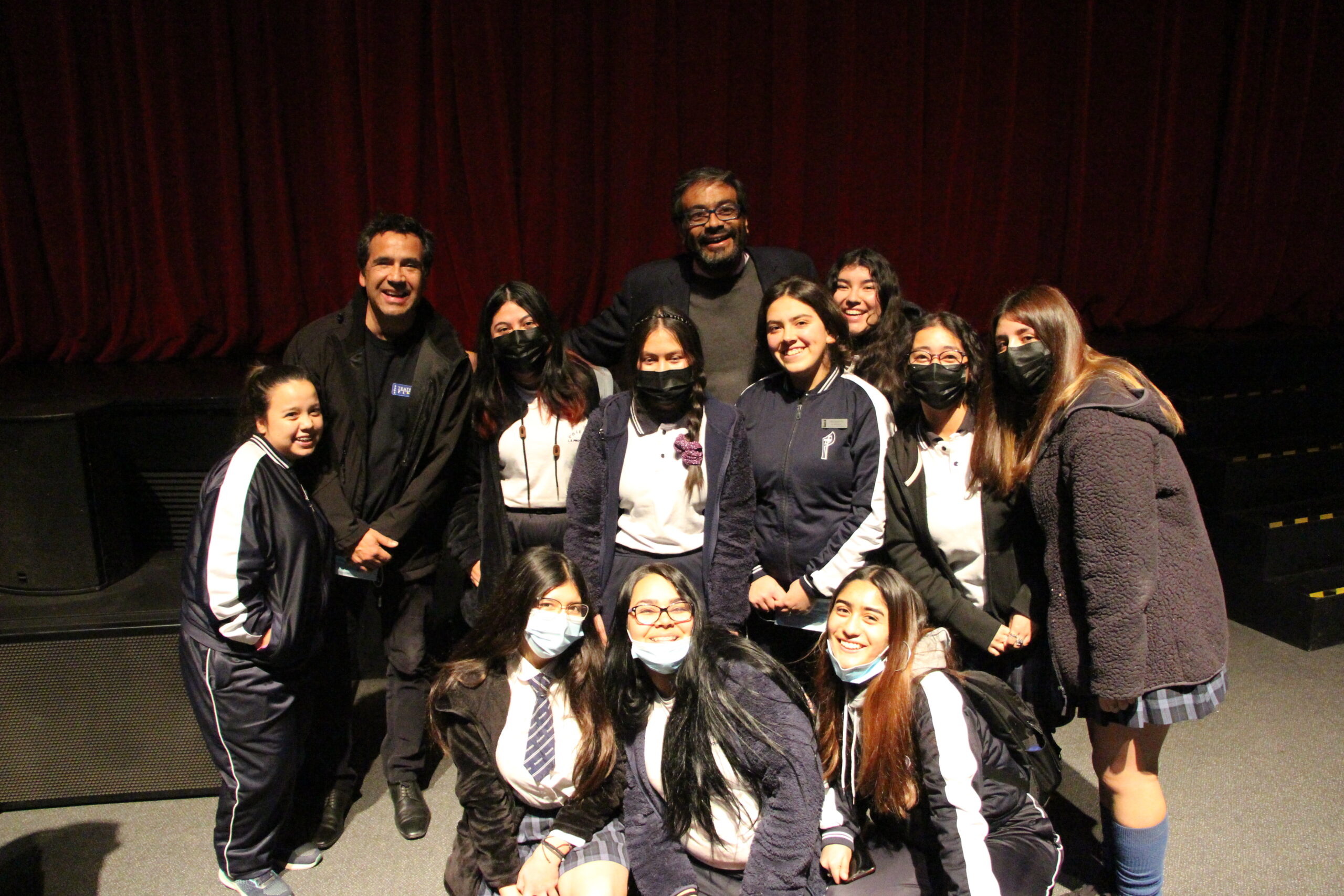 La comunidad educativa además pudo compartir con el grupo de actores en las dependencias de nuestro colegio, permitiendo interactuar y fotografiarse con los protagonistas de esta emotiva obra, que retrataba las vivencias de una estudiante llamada Paola y el Bullying ejercido por sus compañeros de curso, quienes a través de diversas acciones generan violencia sobre ella. Y a su vez cómo estas acciones repercuten en toda la comunidad escolar del establecimiento.