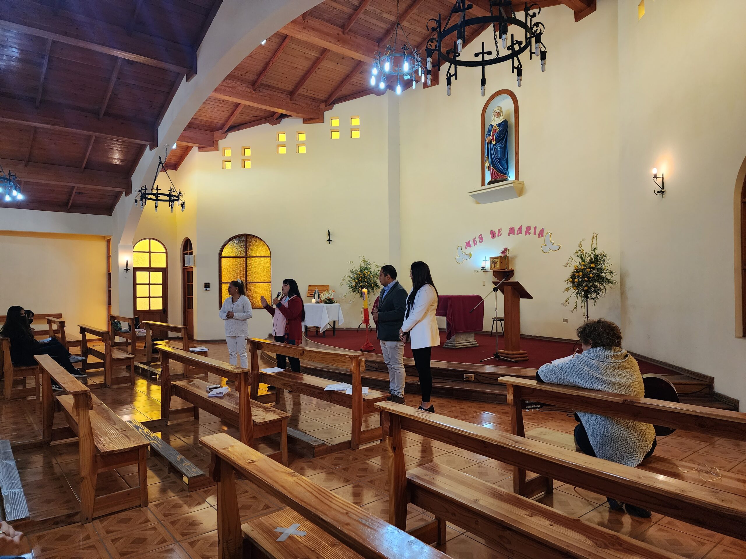 Una vez terminada esta primera etapa, las estudiantes y funcionarias que realizarán su primera comunión pasaron a la Capilla para realizar la reflexión final acompañadas de cantos que propiciaron un ambiente de paz entre los asistentes. La actividad fue organizada por la Encargada de Pastoral Pilar Rojas, los catequistas Cindy Esquivel y Claudio Huichacura junto a la Hna. María Antonieta Trimpay.