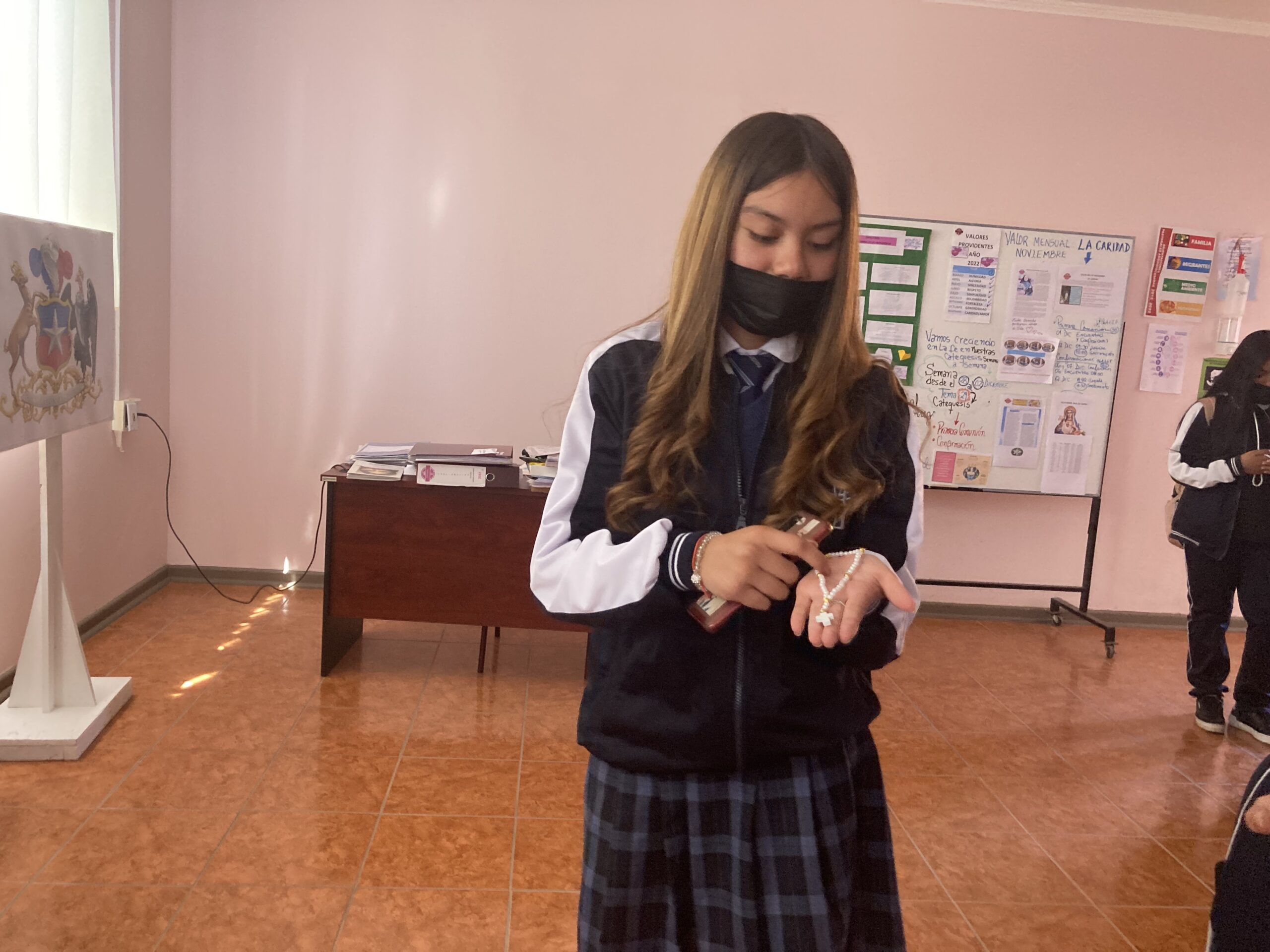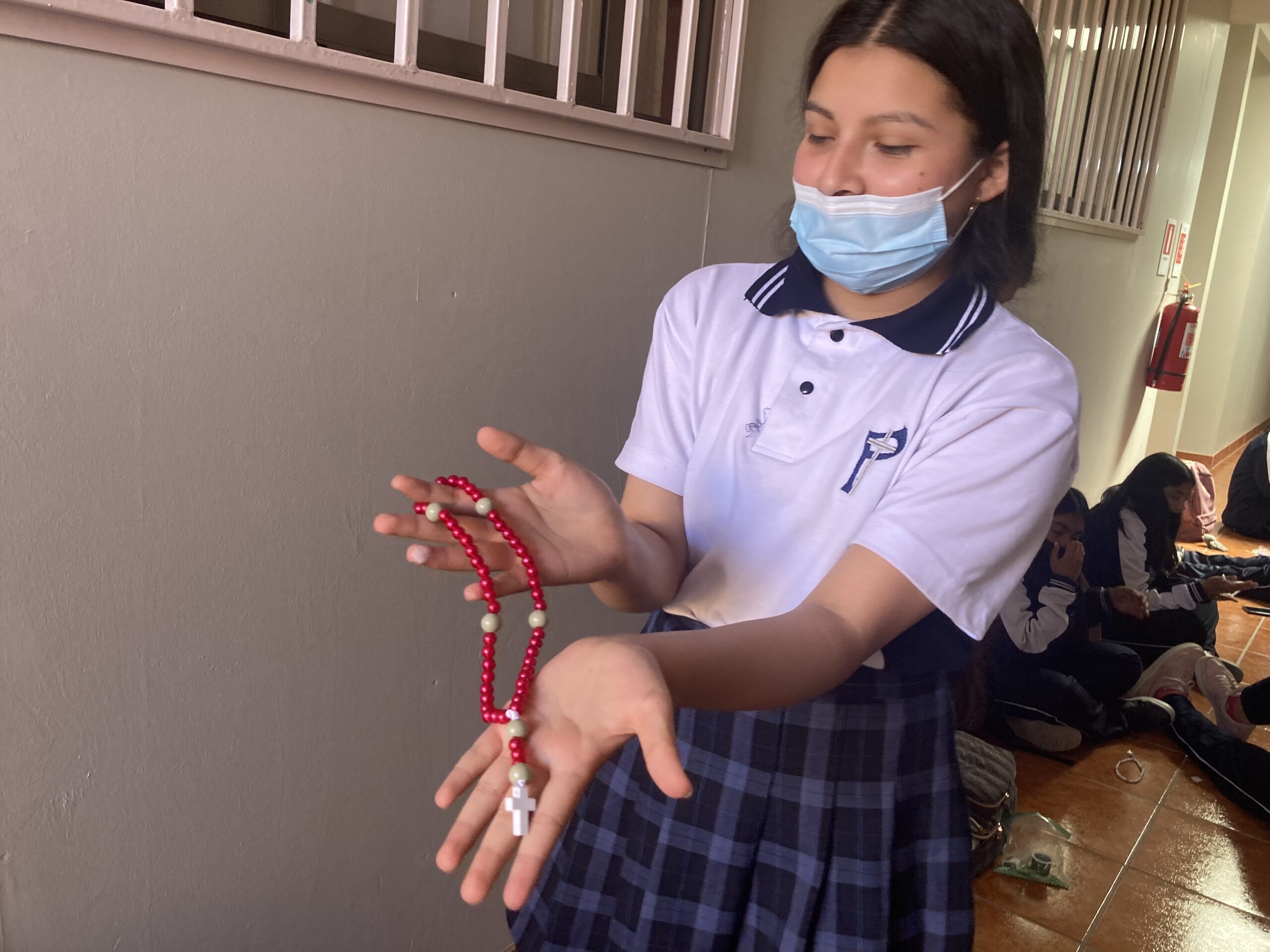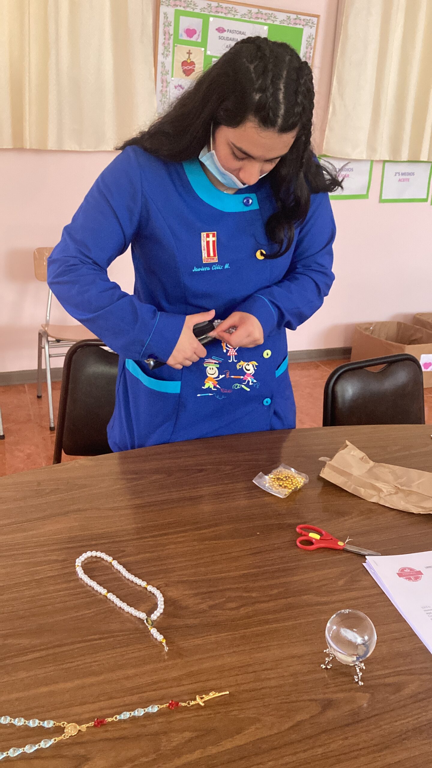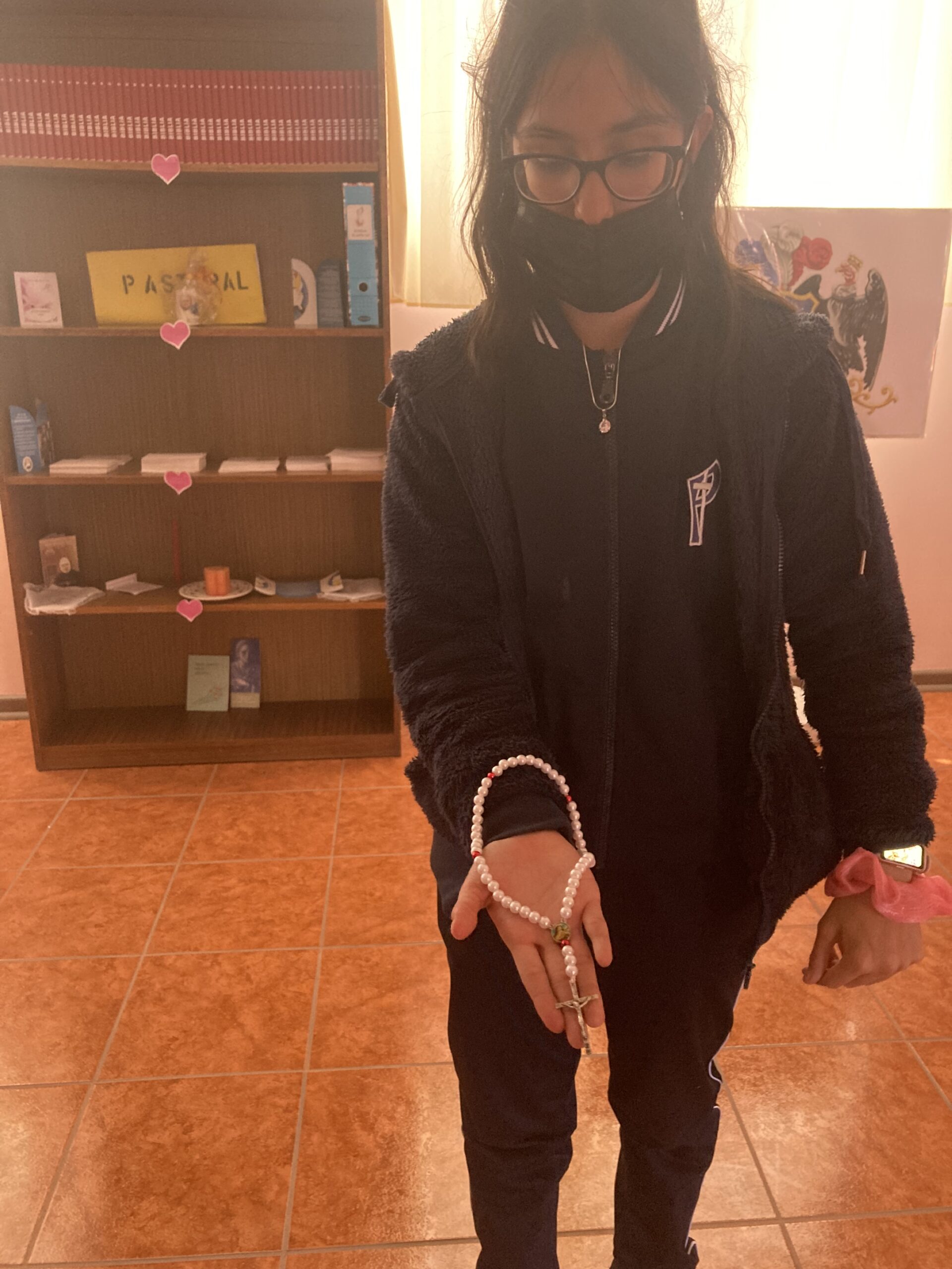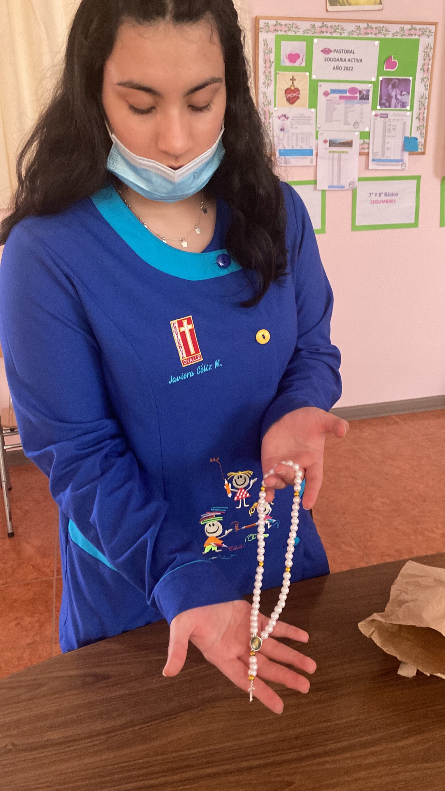 Anteriormente y como parte del término del temario anual de Catequesis, las estudiantes y funcionarias elaboraron con creatividad y cariño sus Santos Rosario, considerando como la oración perfecta porque junto a el está aunada la majestuosa historia de nuestra salvación.