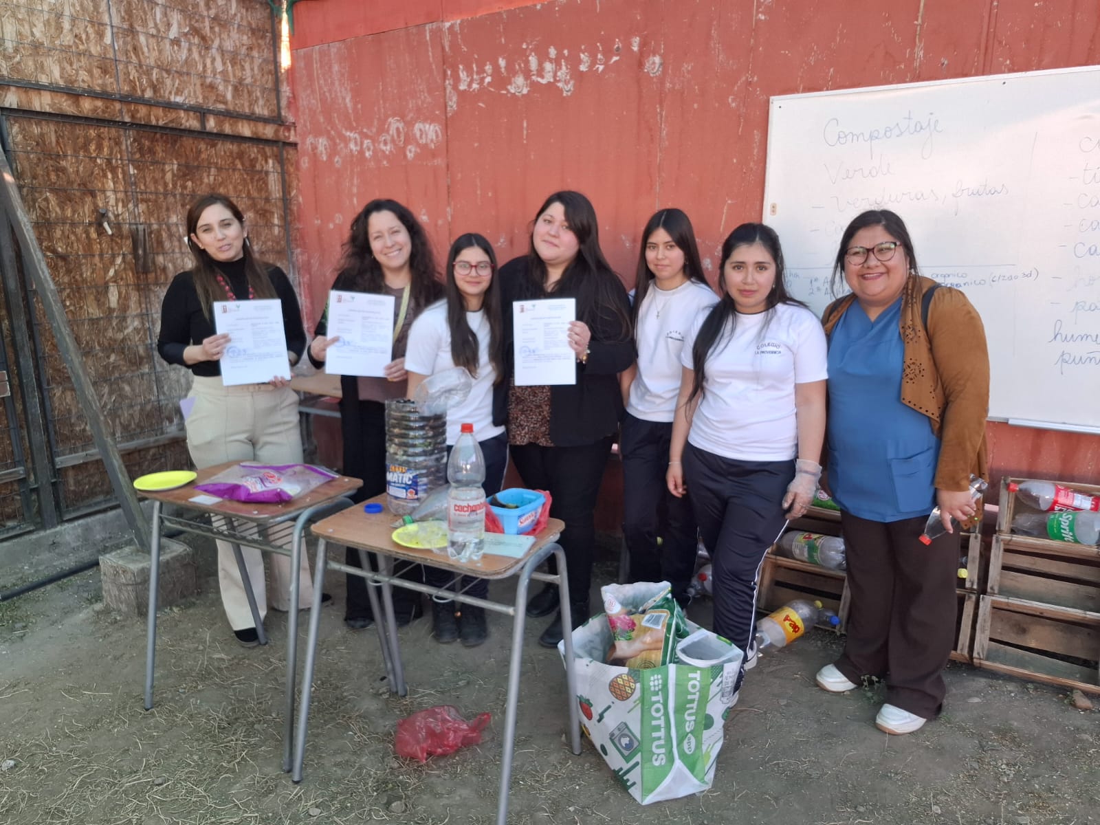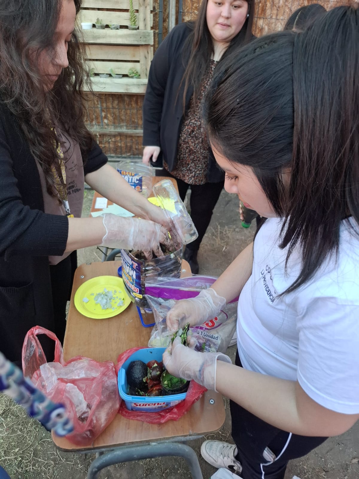 El pasado martes 30 de septiembre, las estudiantes del 4°E de la especialidad de Administración realizaron un taller teórico-práctico de compostaje dirigido a 15 funcionarios de nuestro establecimiento, como parte del Proyecto de Compostaje impulsado por las docentes Paola Olivares (Departamento de Ciencias) y Rossana Guzmán (Especialidad de Administración), junto a las estudiantes participantes.