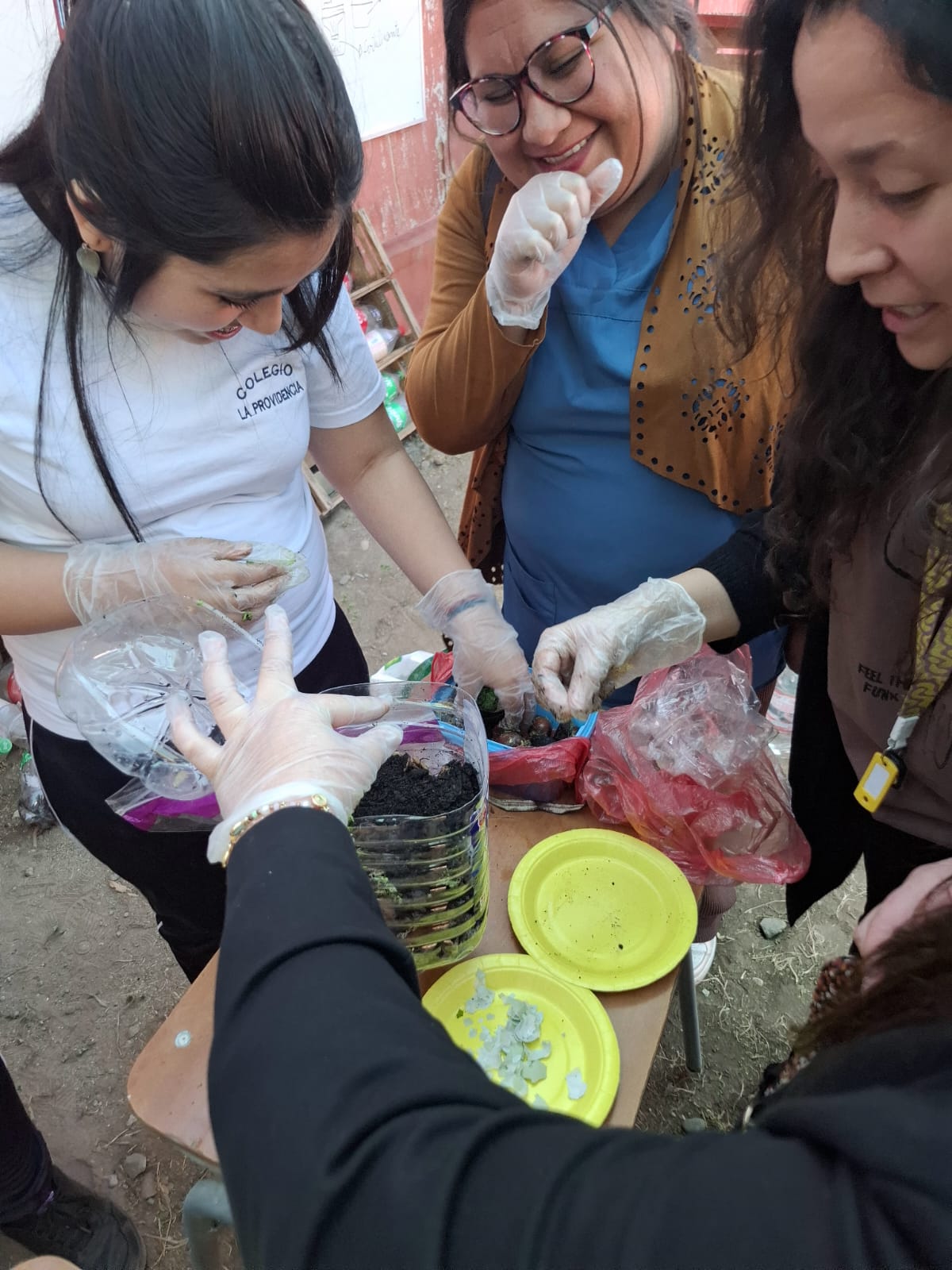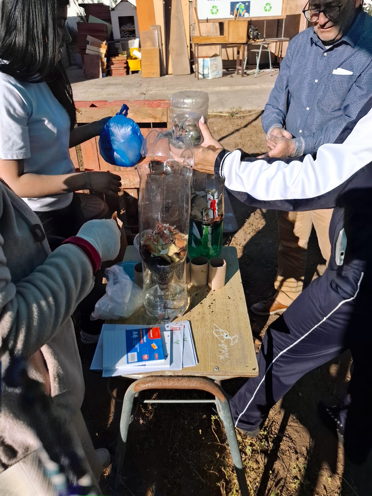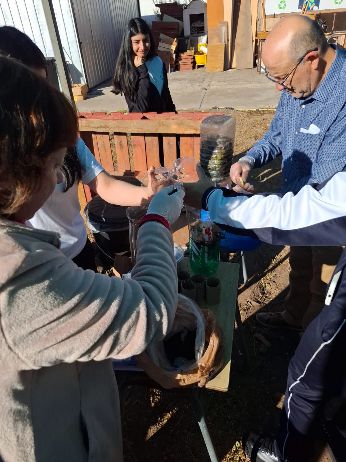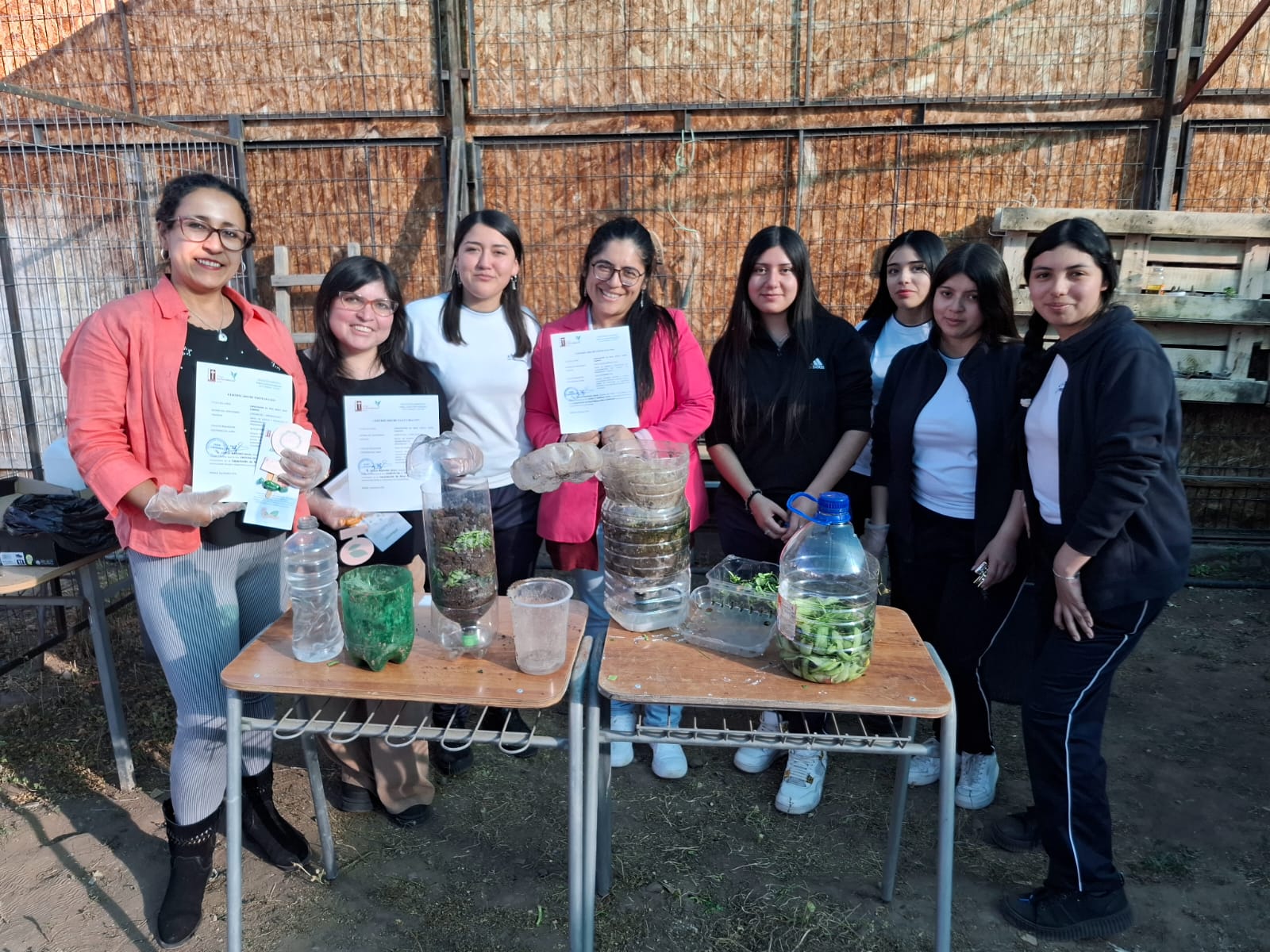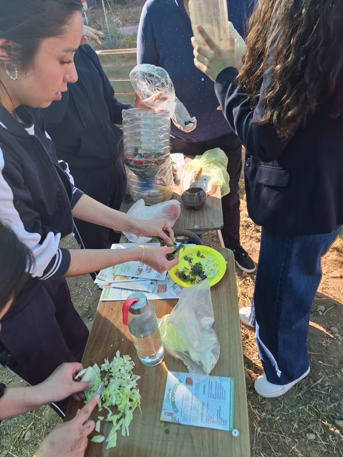 Durante las etapas iniciales, las estudiantes participaron en clases de separación de residuos, observando el entorno para distinguir entre materiales orgánicos, reciclables y no reciclables. Esta base permitió iniciar el proceso de compostaje, que actualmente se desarrolla en el espacio “Aula Verde” (Huerto Escolar) mediante prácticas con botellas reutilizadas.