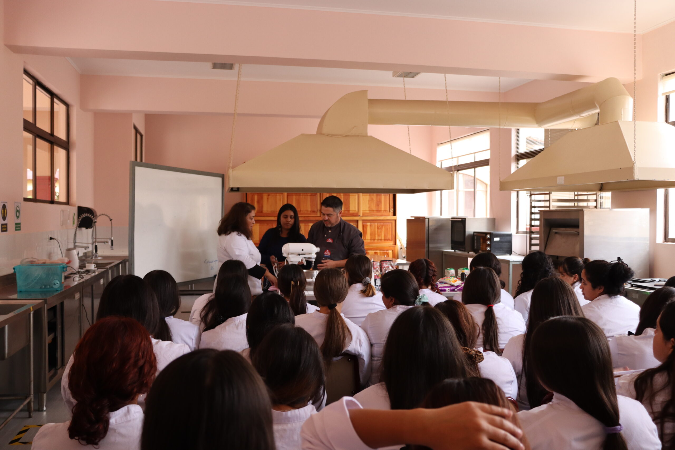 Desde hace años que la empresa visita nuestro colegio con la finalidad de dar una capacitación o clase maestra a las estudiantes de la especialidad de gastronomía junto al Chef Pastelero Marco Reyes al 4°año C.