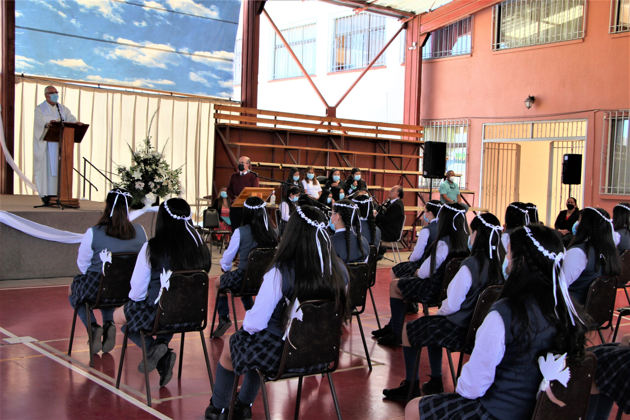 Durante la ceremonia litúrgica, celebrada por el capellán, Padre Juan Carlos Godoy y organizada por el equipo Pastoral, en el techado de nuestro establecimiento, las estudiantes (44) estuvieron acompañadas por sus padres, representantes de la Comunidad Educativa y de la Congregación de las Hermanas de la Providencia, contando además con la visita de la Hna. Silvia Troncoso, Hna. Emma Maureira y Hna. Lucila Barrantes, desde Santiago.
