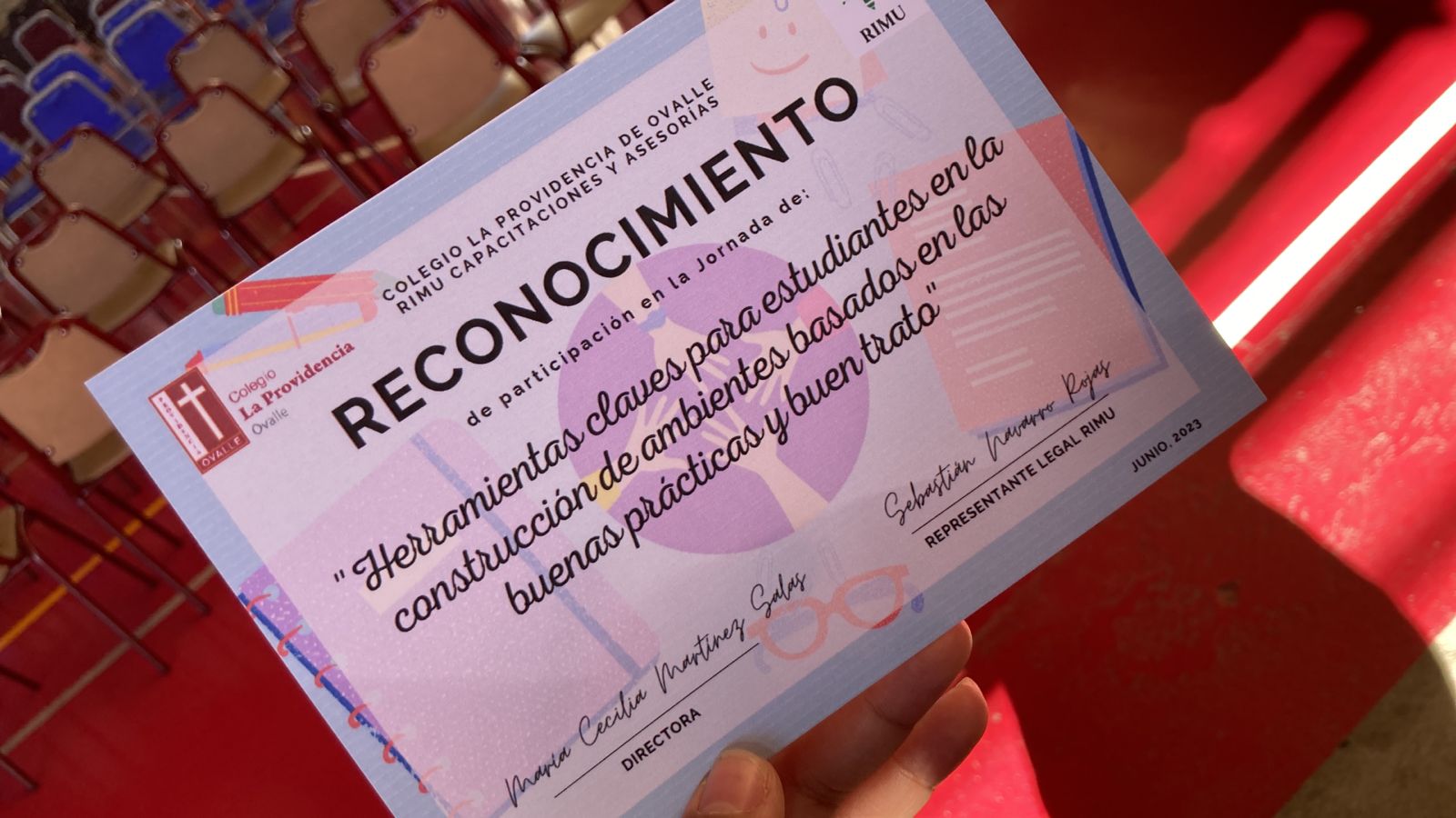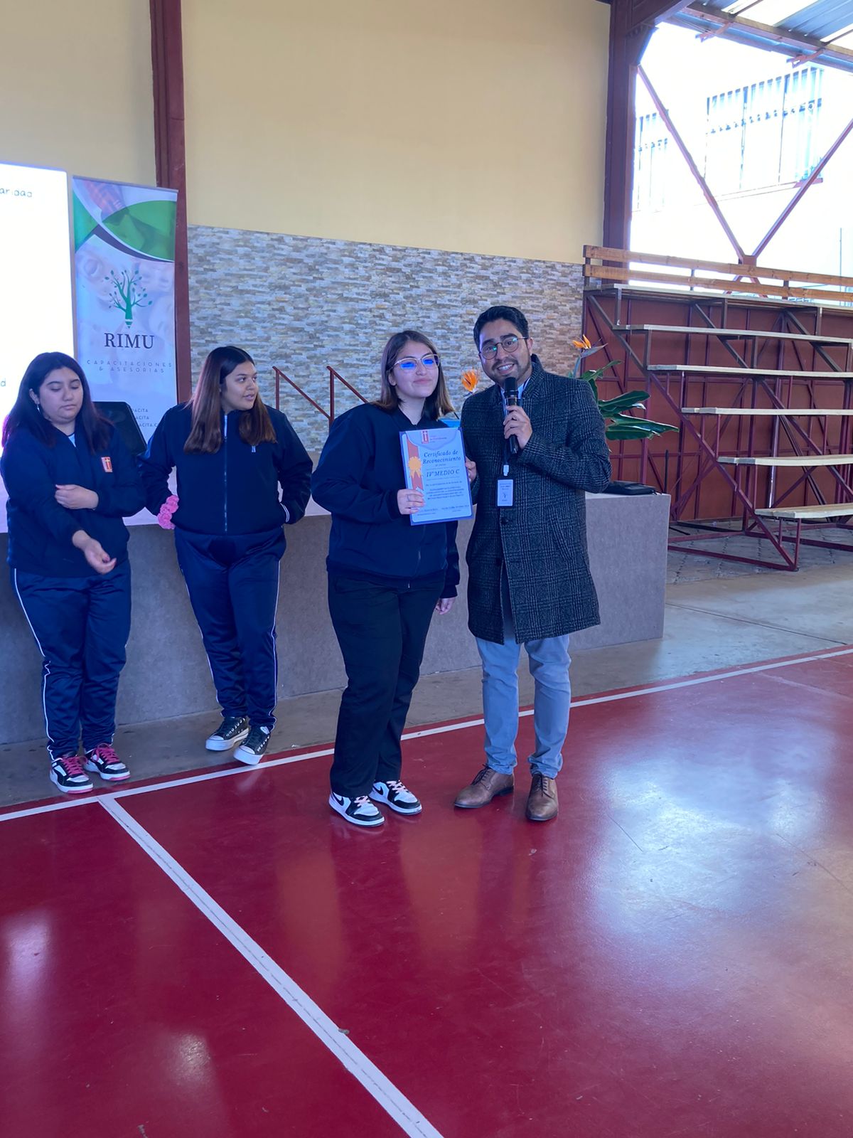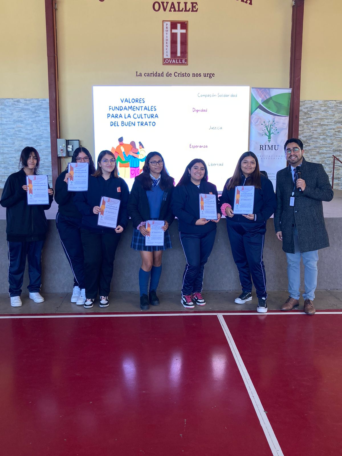 Rimu Capacita fueron los encargados de realizar un taller a las estudiantes desde 7° a 4° medio, el día viernes 2 de junio en el techado de nuestro establecimiento, el taller denominado “Herramientas claves para estudiantes enfocadas a la construcción de ambientes basados en las buenas prácticas y buen trato”, contó con la participación entusiasta de las estudiantes para luego hacerles entrega a las presidentas de curso y estudiantes de cuartos medios un reconocimiento por la participación.