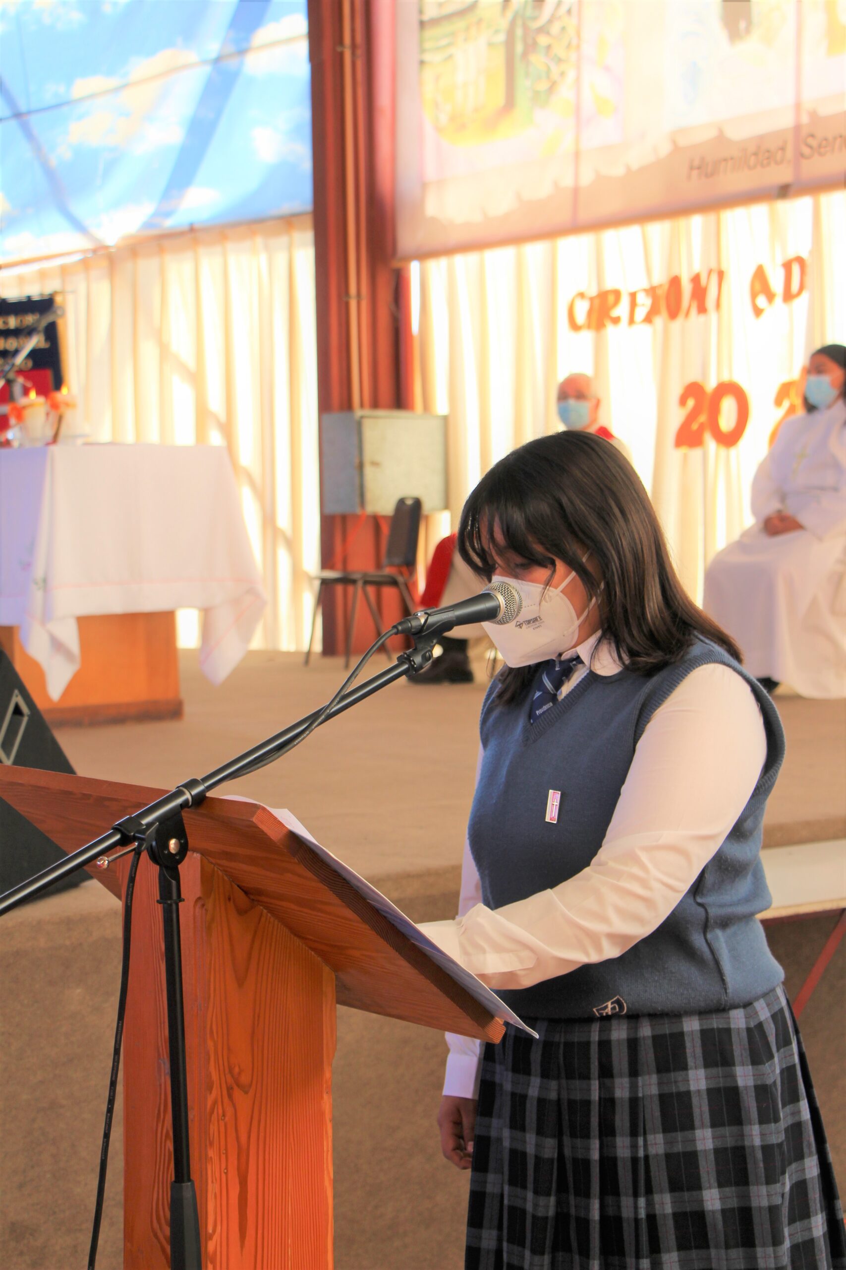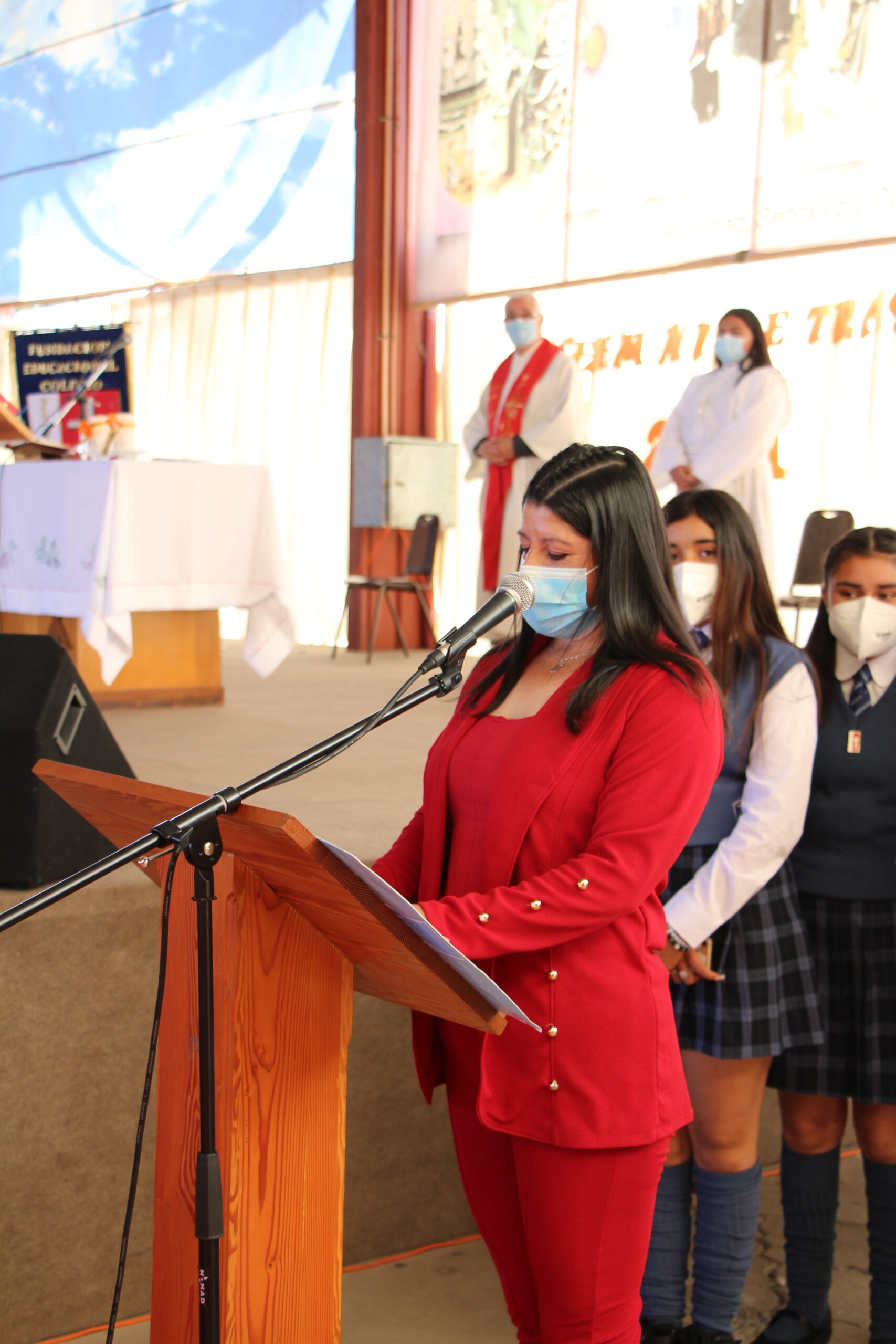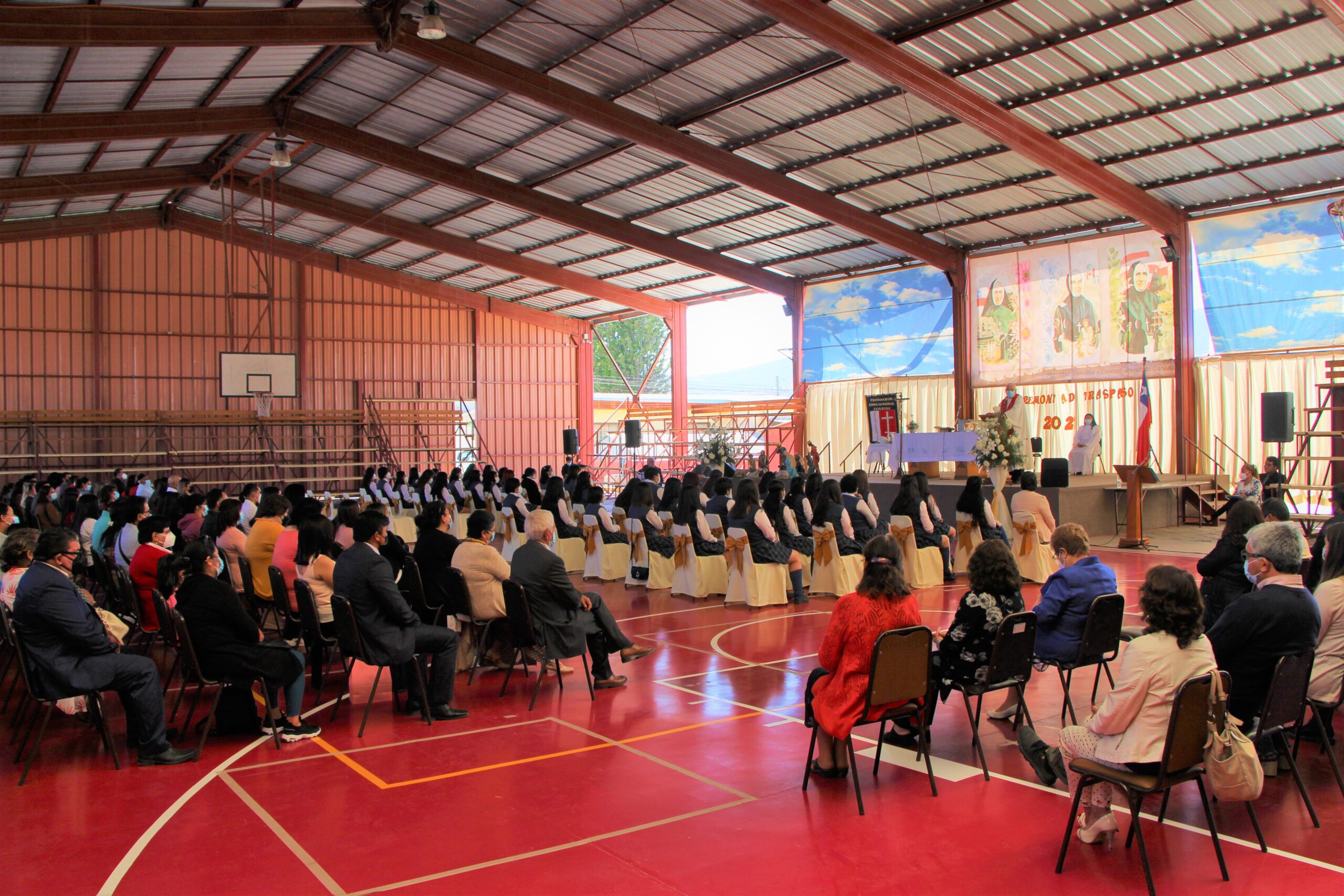 La ceremonia fue presidida por el Padre Juan Carlos Godoy y contó con la presencia de nuestro Director, señor Jorge Gormaz Barrientos, además de profesores, asistentes de la educación, padres y apoderados de las estudiantes de octavo. La jefatura estuvo a cargo de la Profesora Graciela Moreno, quien con profunda entrega logró guiar y transmitir el cariño a pesar de la distancia debido a la Pandemia.
